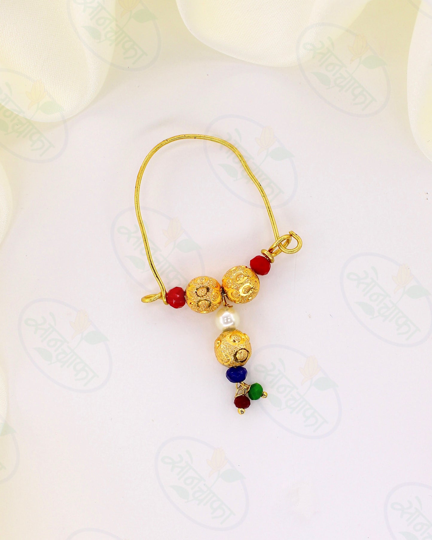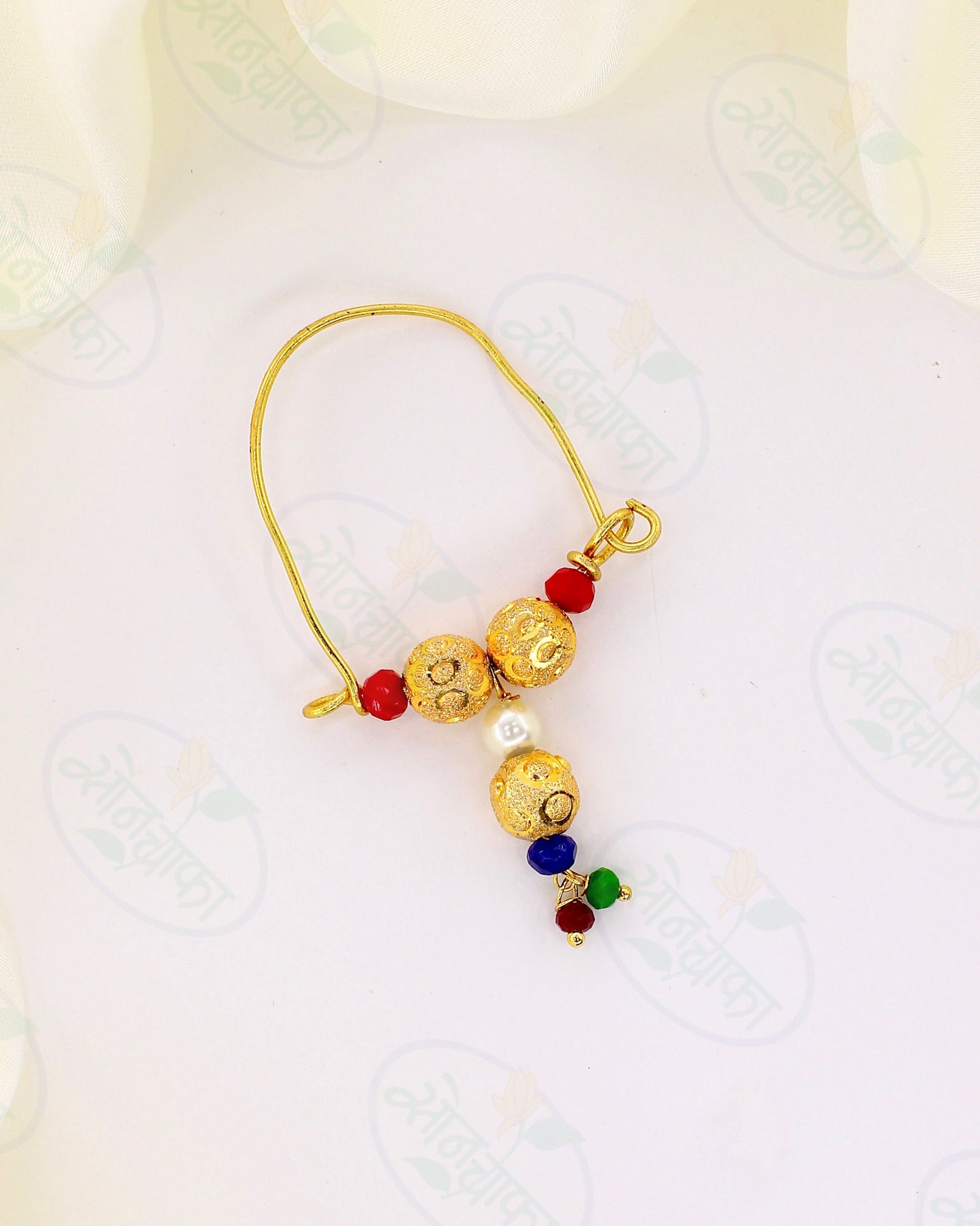Sonchafa Jewellery brings to you this pearl beaded bali for decorate your Ganesha. This Ganpati Bali is woven with pearl beads in tar. It is made from superior quality golden finish metal. It is style with dangling beads for more attraction.