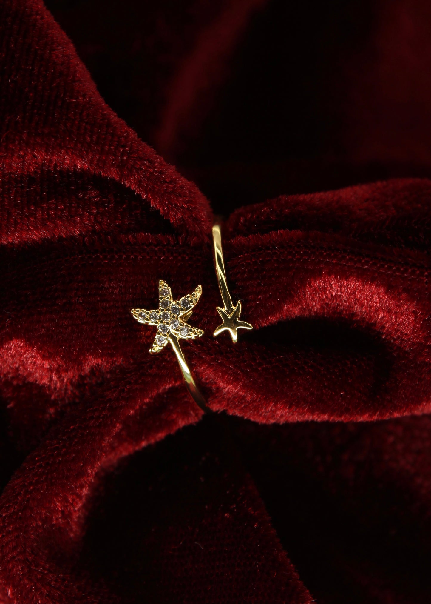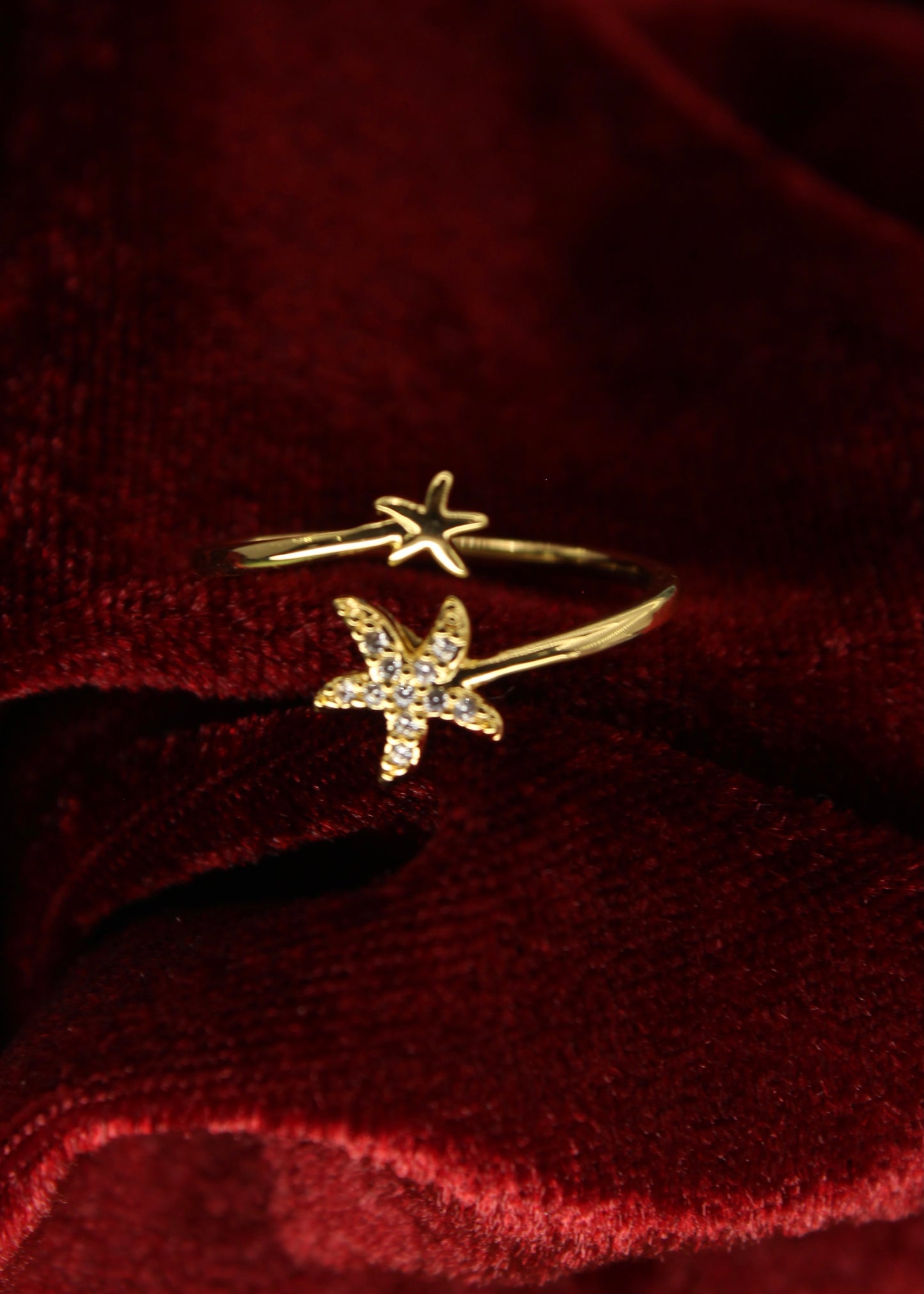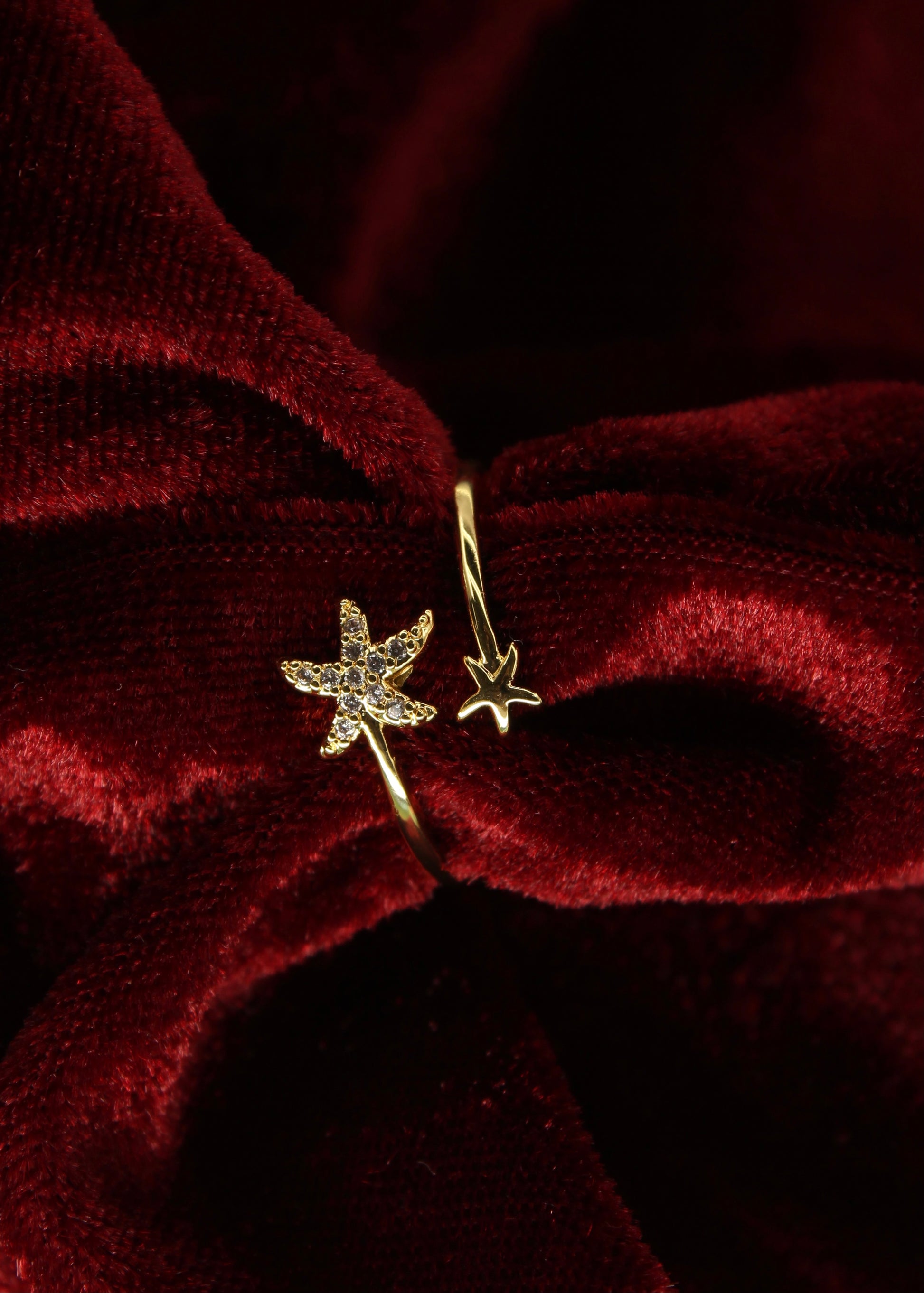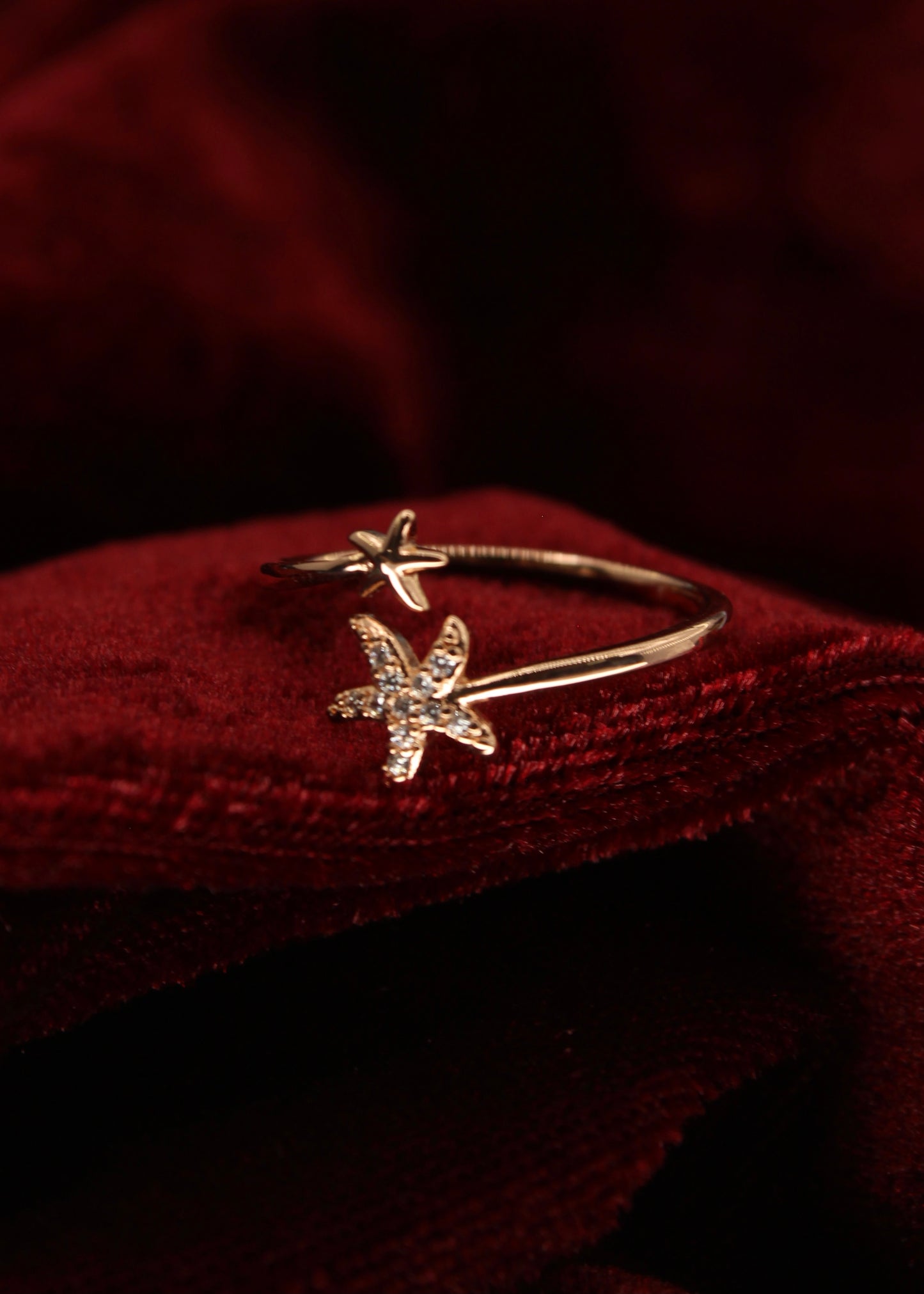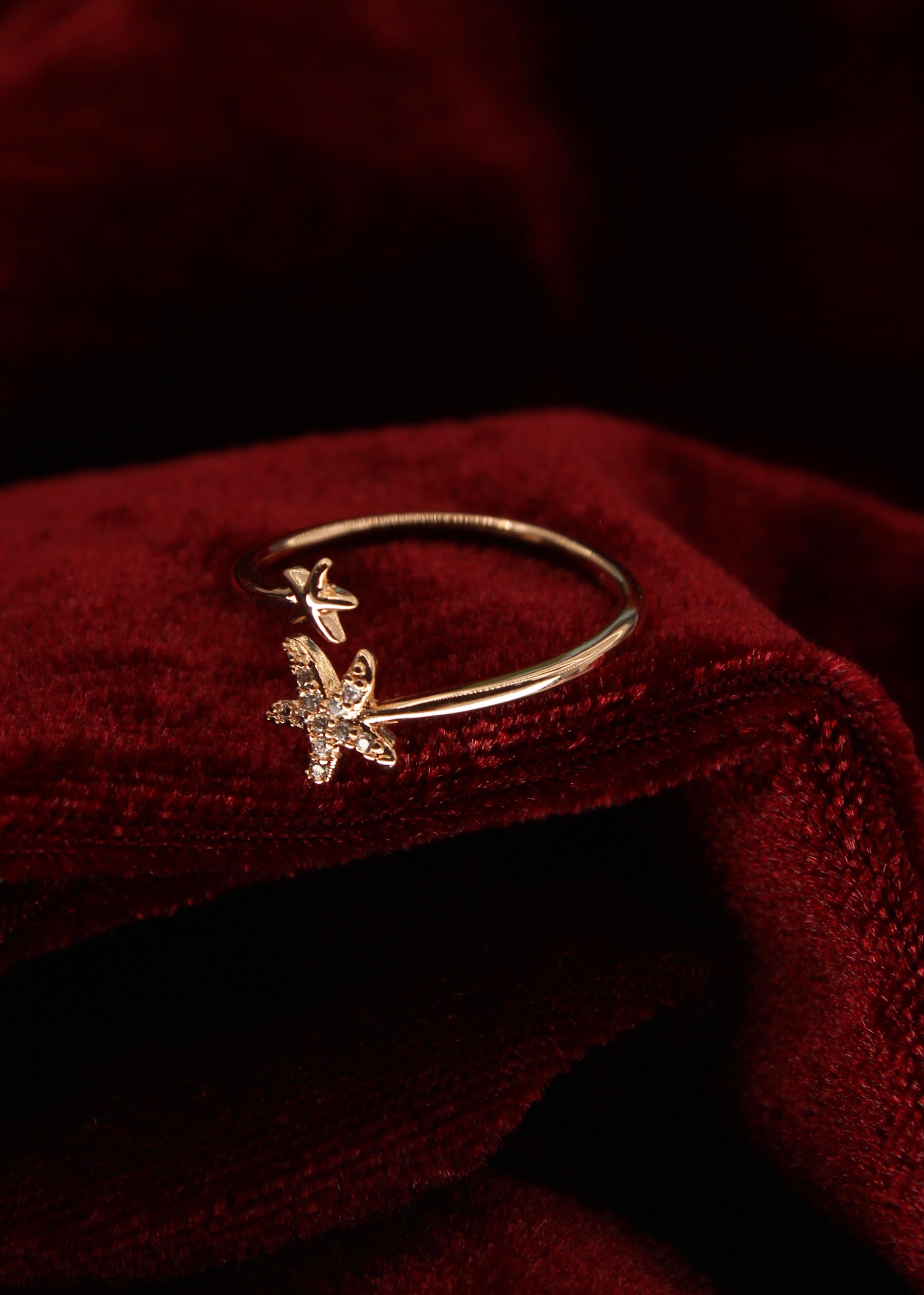 Bring the beauty of dazzling stars designer finger ring from sonchafa jewellery. This finger ring will compliment most of your ethnic attires and it is crafted from golden finish metal.