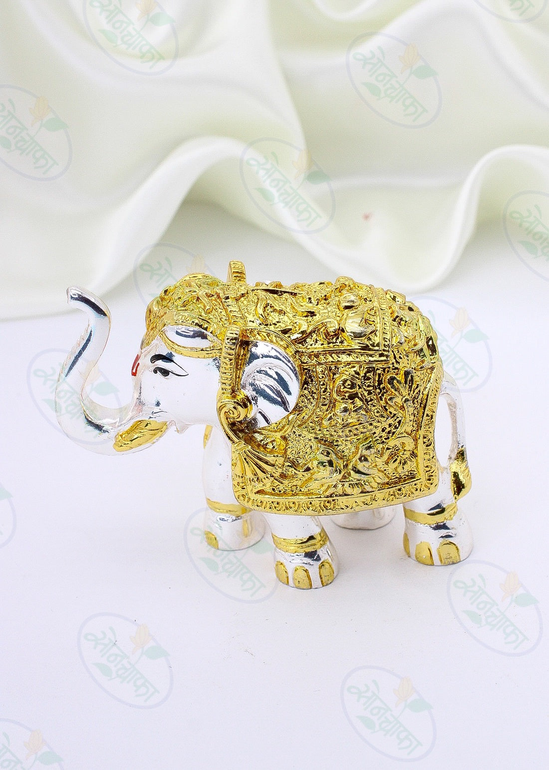 Have a look at this Gajantlaxmi for decorate your Ganesha from Sonchafa Jewellery. It features intricate carving design on golden metal surface. This gajantlaxmi is made from golden finish metal.