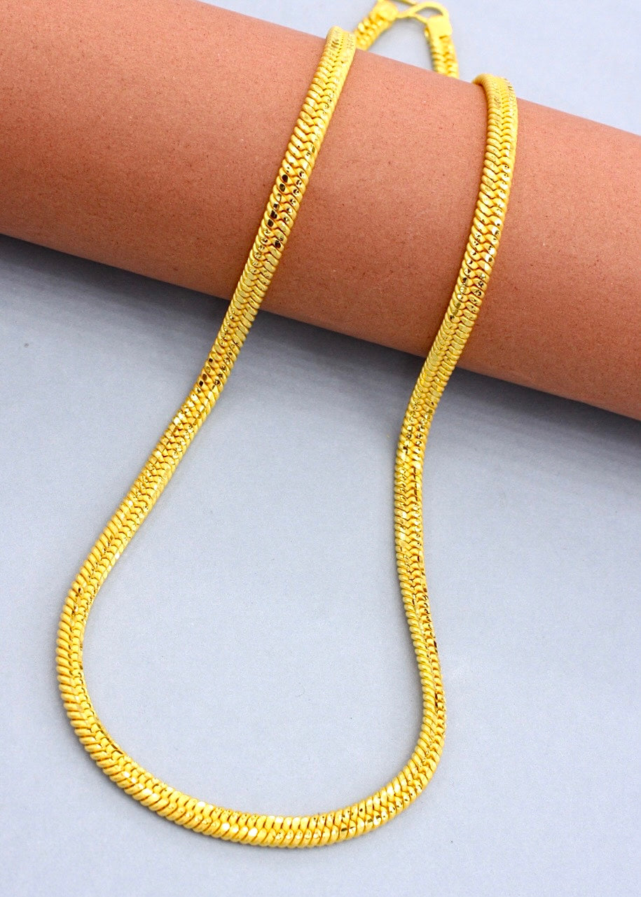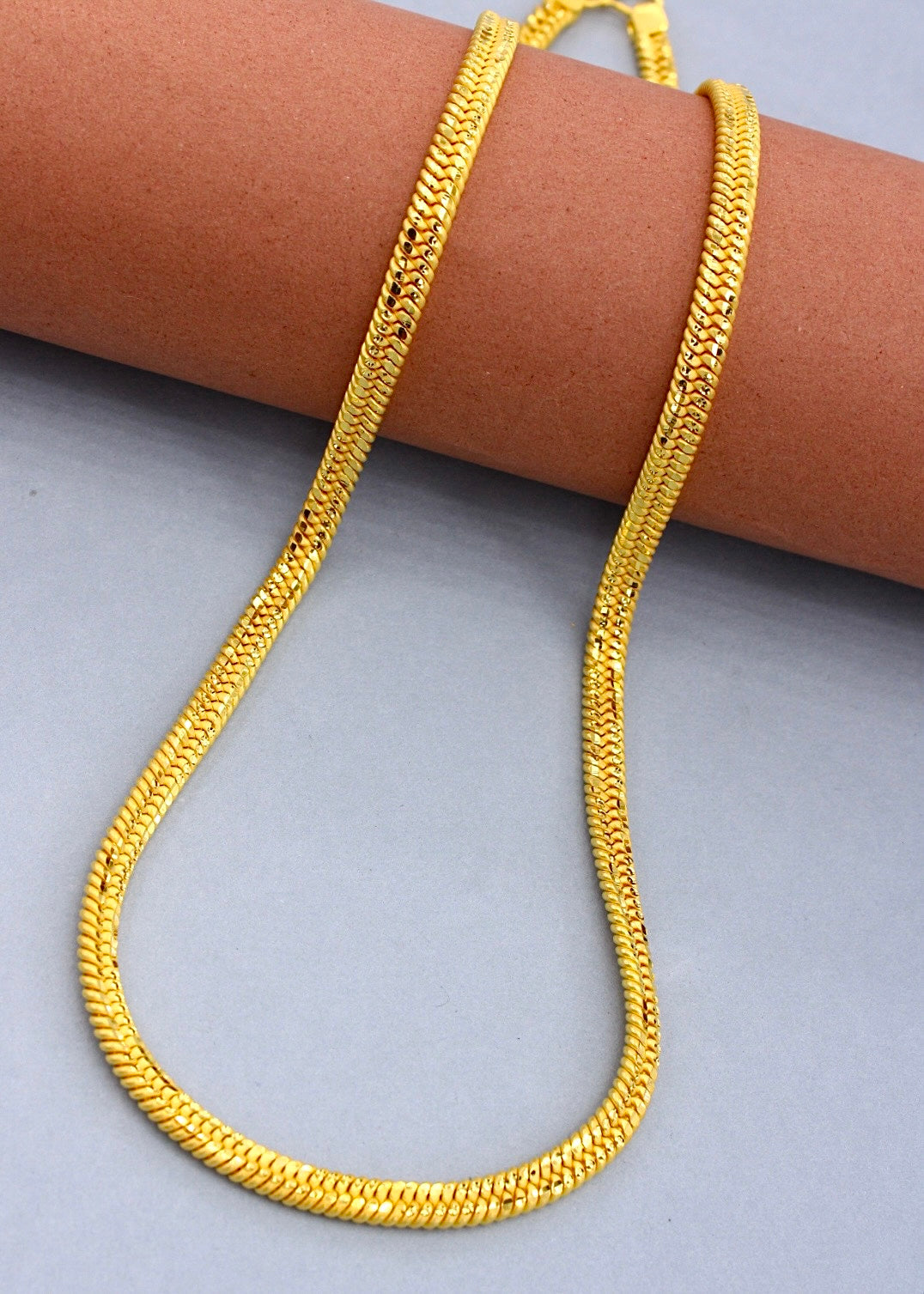 Upgrade your jewellery drawer by adding this 1 Gram gold plated chain from the stock of Sonchafa Jewellery. It is made from metal and ensures high durability. This chain is easy to use and comfortable to hold all day long.