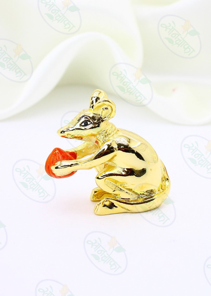 This ganpati festival sonchafa jewellery offers attractive range of Gauri- Ganpati decoration articles. this Mushak will enhance your Ganesha decoration. this mouse is made from golden finish metal and it is rust-resistant.