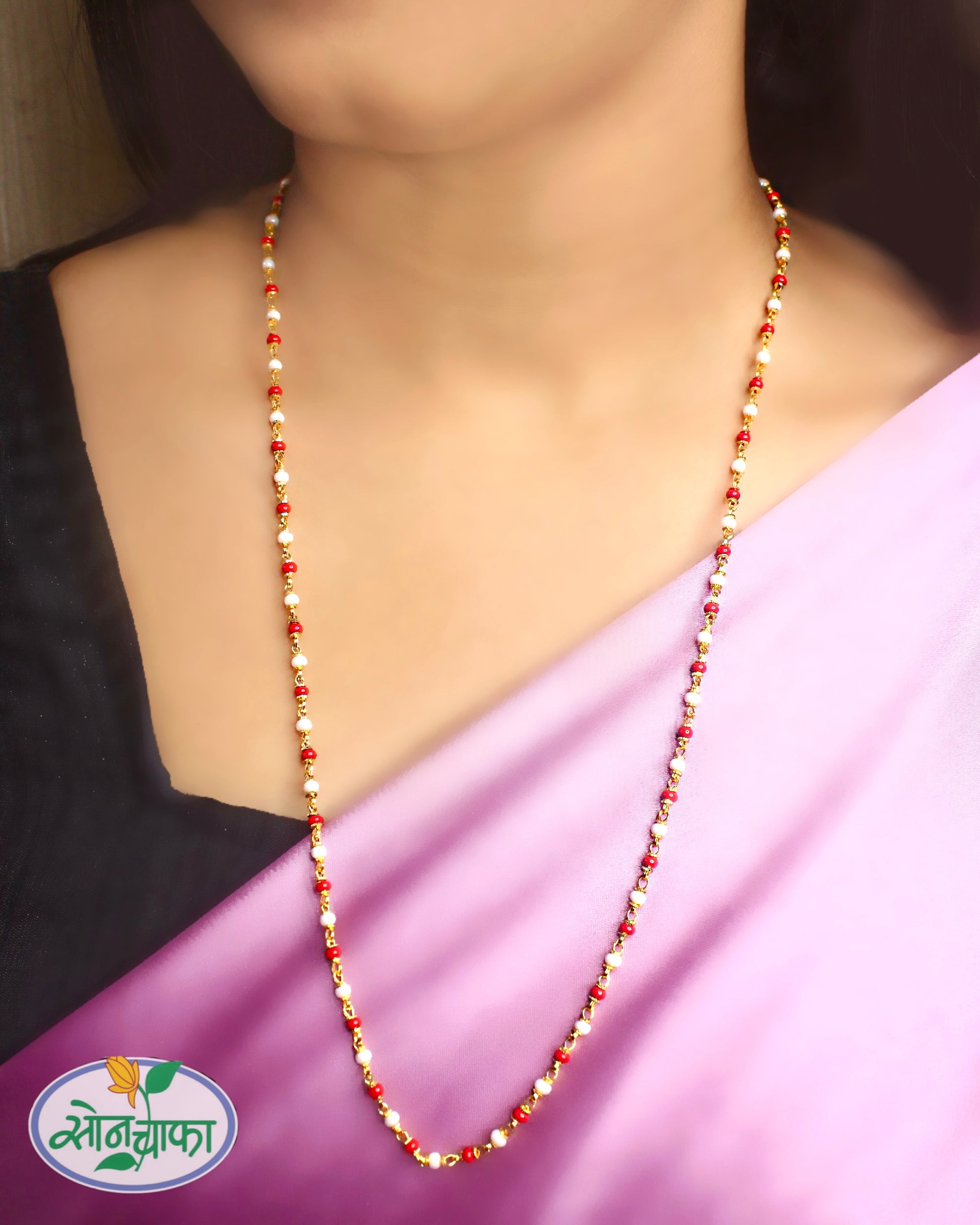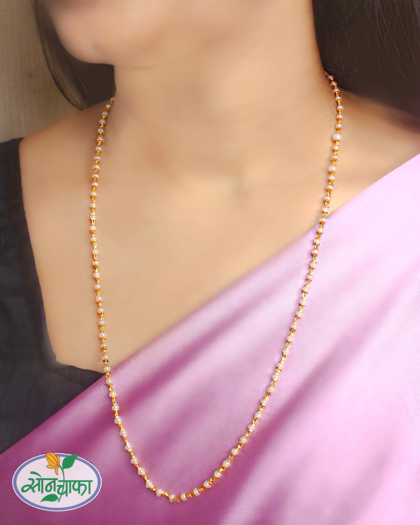 Adorn yourself with this alluring stylish necklace set and create your different style statement. It is woven with attractive pearl beads in an unbreakable thread. This beautiful set is crafted from golden finish metal and good in quality.