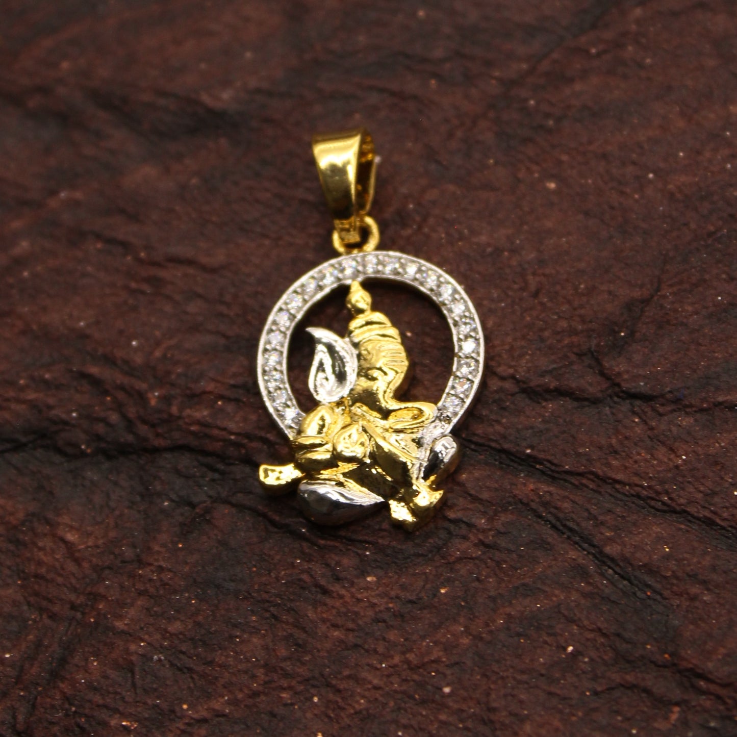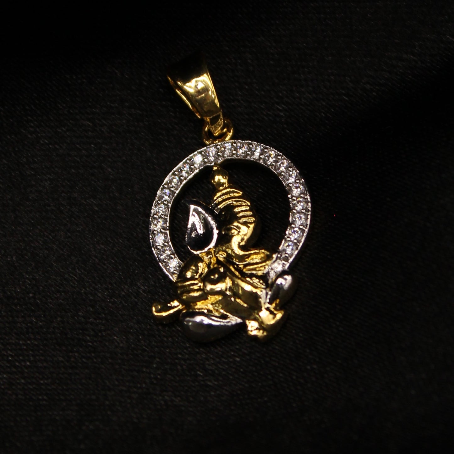 Golden Silver finish Bal Ganesha pendant from Sonchafa Jewellery has been designed in classic look. It is encrusted with Dia diamonds along with white colour sparkling stones and feature wonderful design. This pendant is made from golden silver finish metal