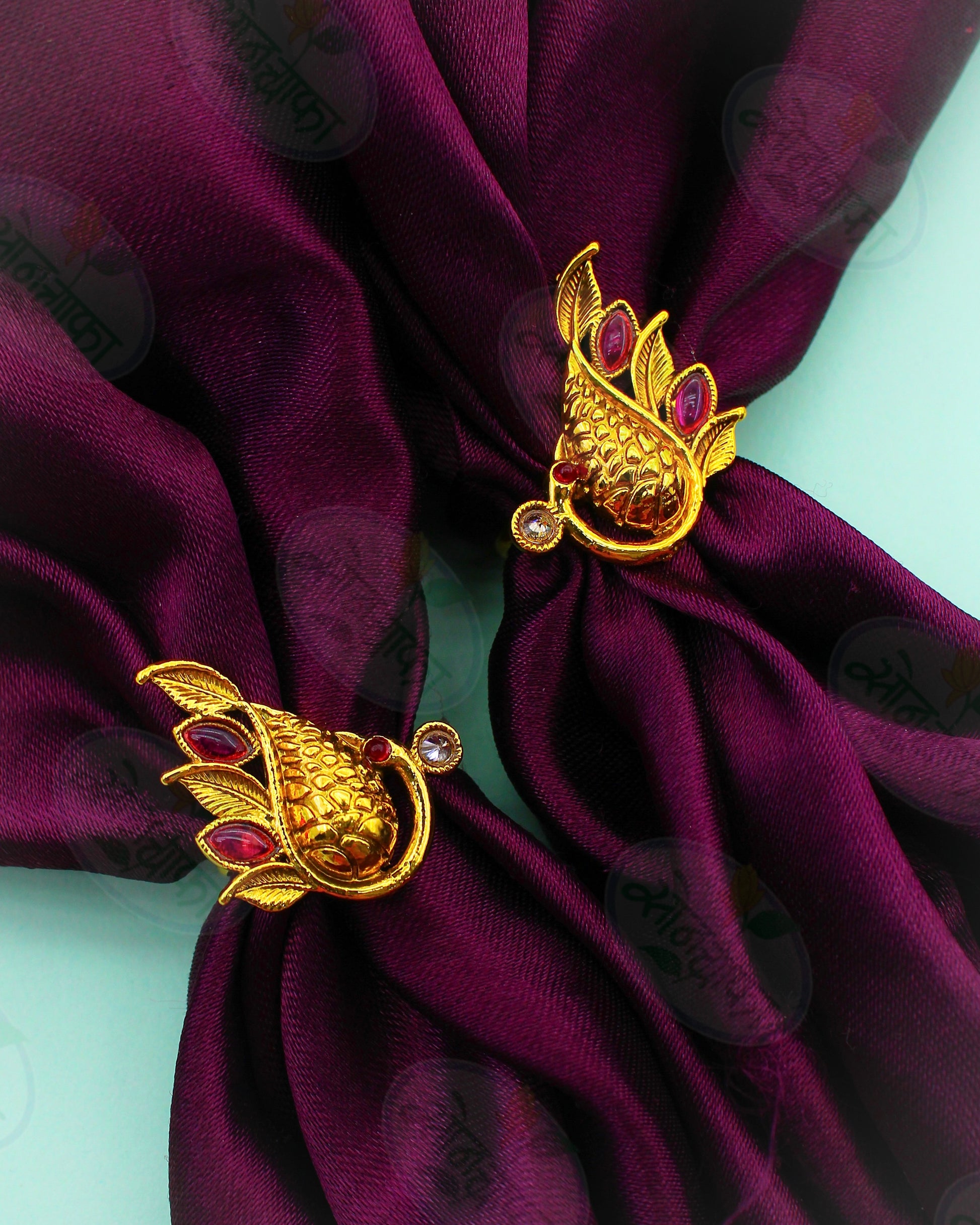 Peacock designer delicate bichave are best pick for married women from Sonchafa Jewellers. These are encrusted with pink colour stone and made from antique golden finish metal. These bichave are superior in quality and long lasting.