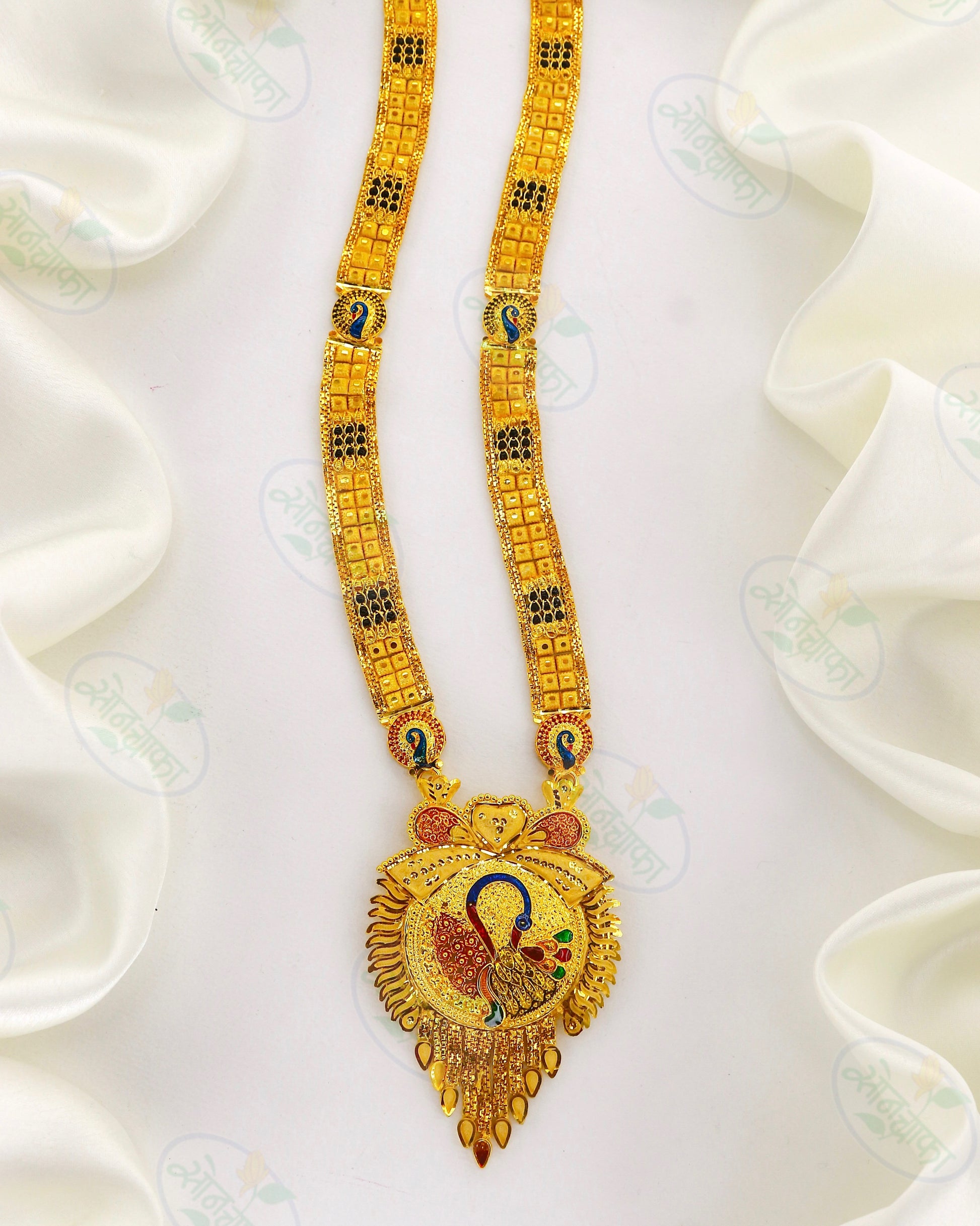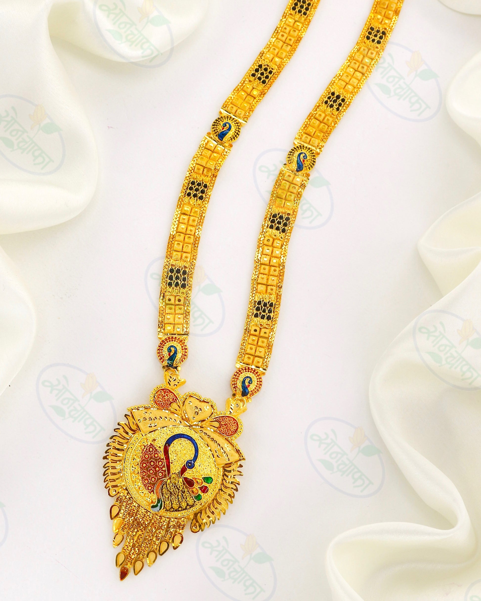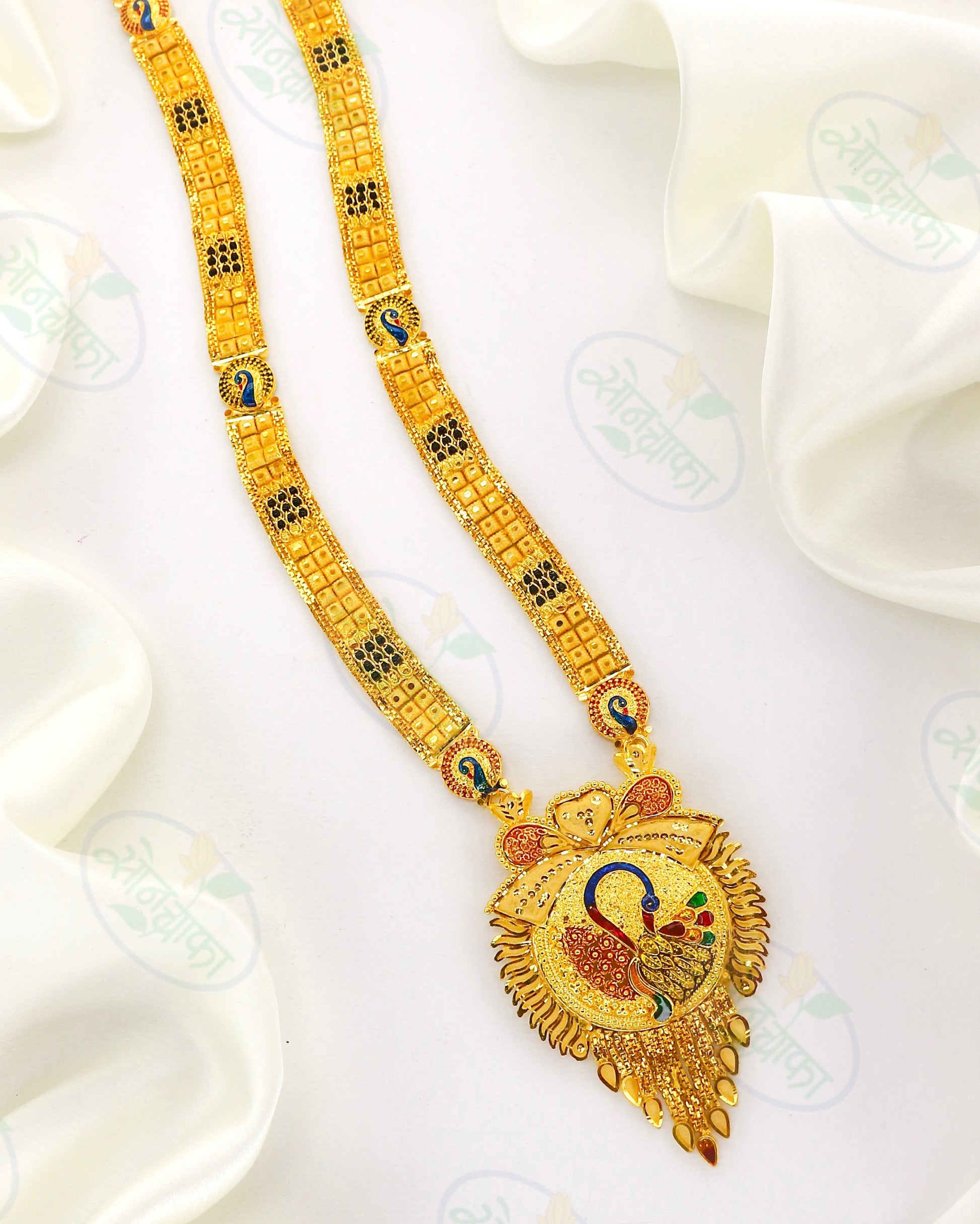 Sonchafa Jewellery presenting this very classy graceful Peacock designer mangalsutra for your pretty look. It is wonderfully crafted with 1 gram gold plated metal. You can wear this mangalsutra on daily basis as it is light in weight.
