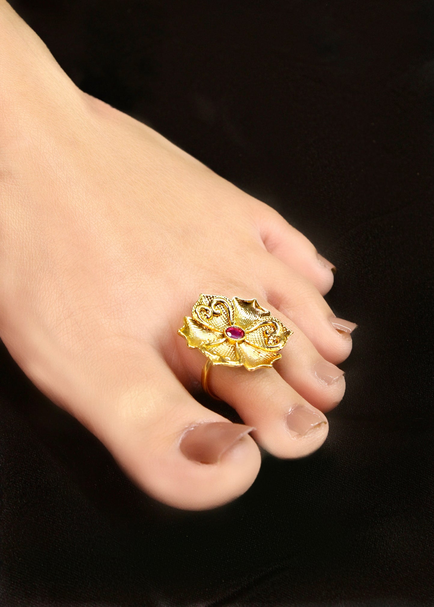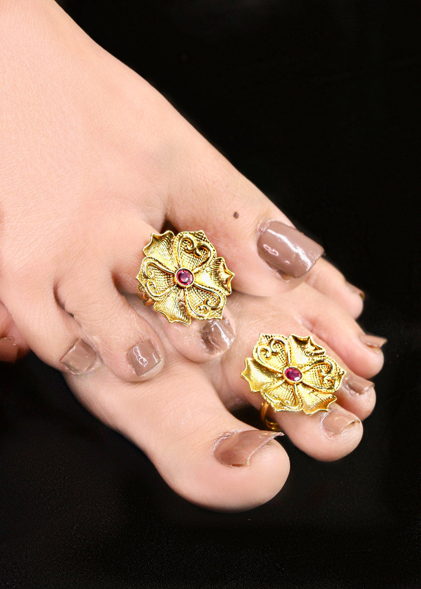 This season Sonchafa Jewellery brings to you this pair of stylish bichave for your pretty look. They are studded with pink stone and feature appealing design. These bichave are made from antique golden finish metal and ensure high durability. Easy to wear as adjustable.