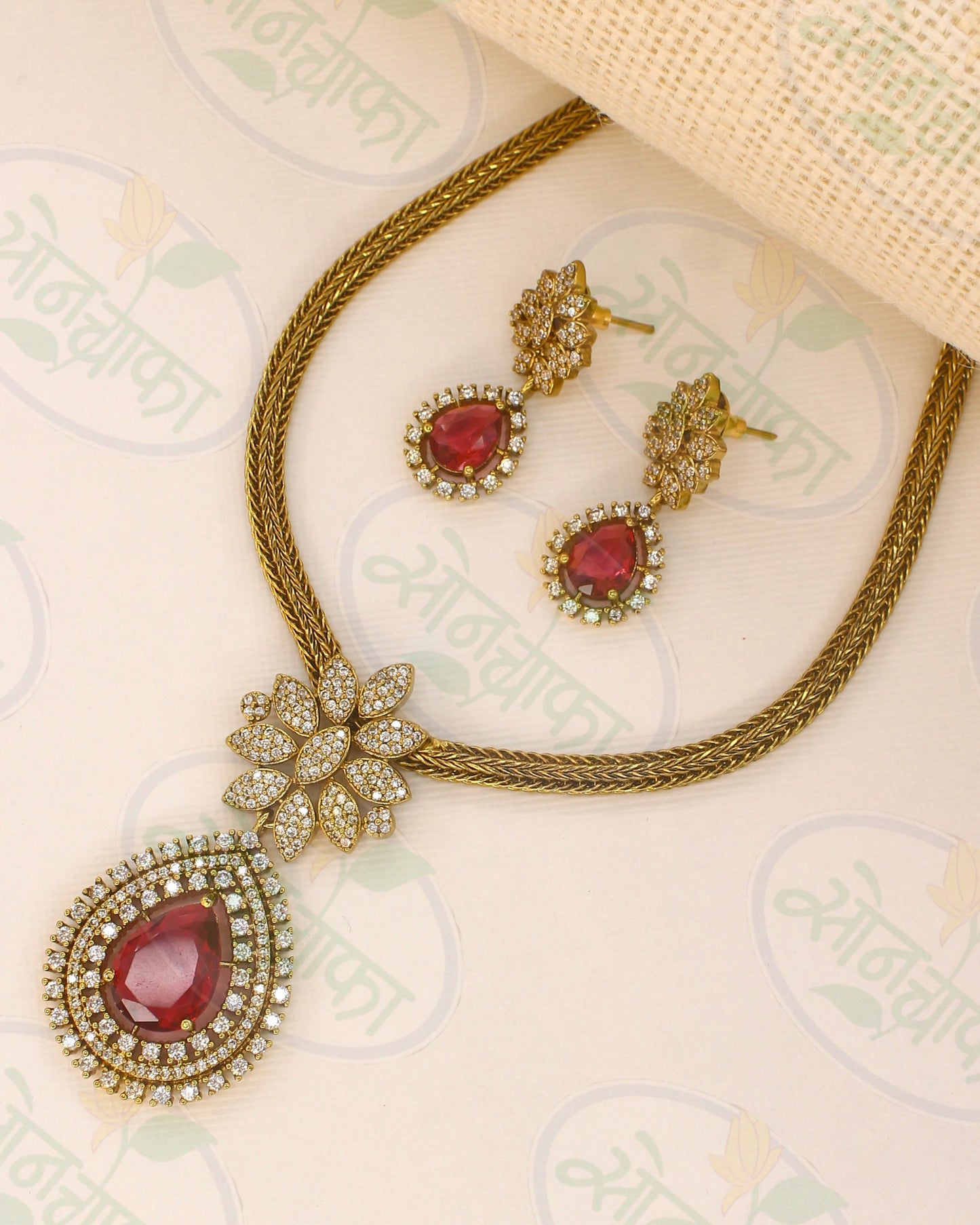 Sonchafa Jewellery presents this golden finish rajasi necklace for stylish women lie you. It is embedded with sea green and crafted from golden finish metal.