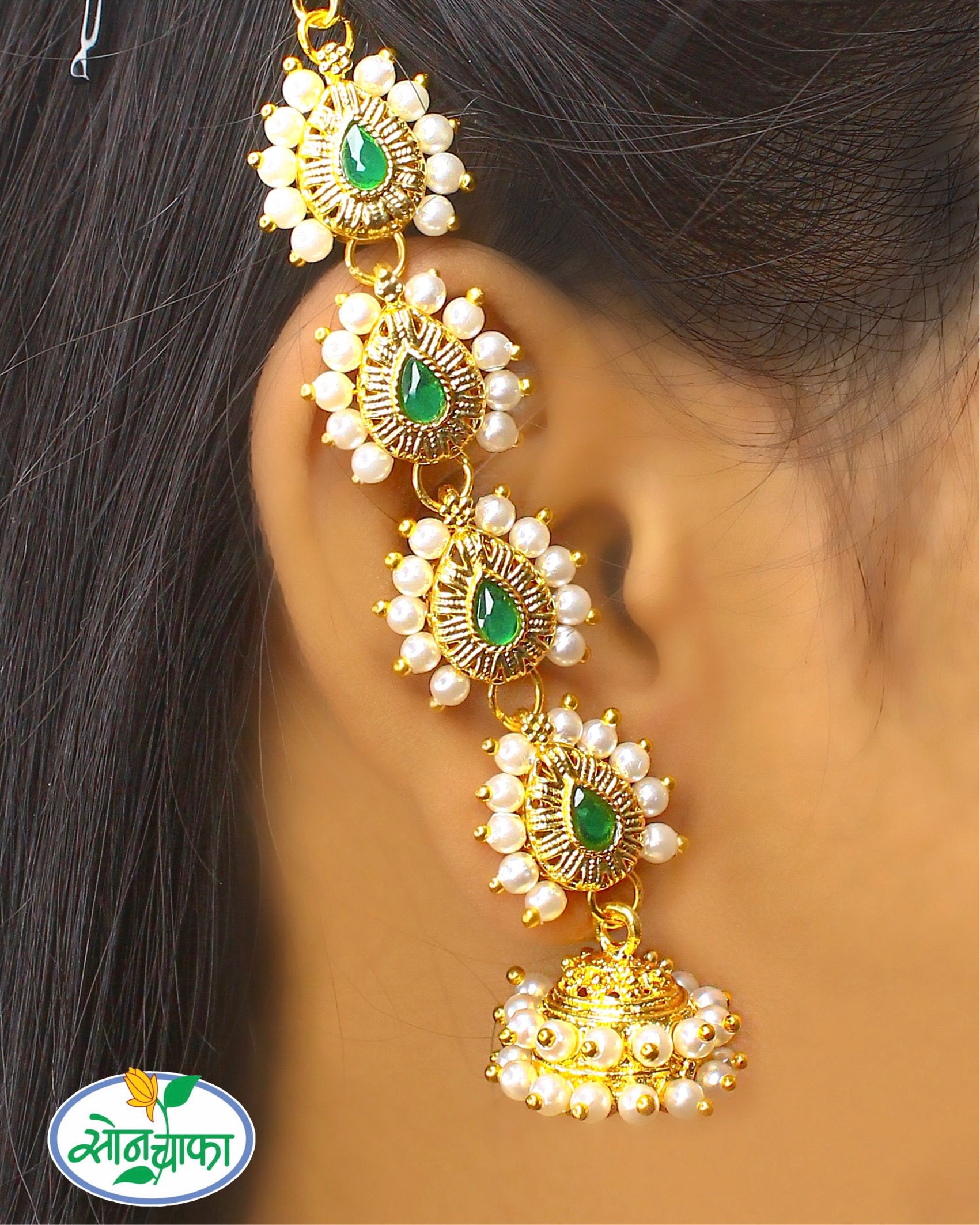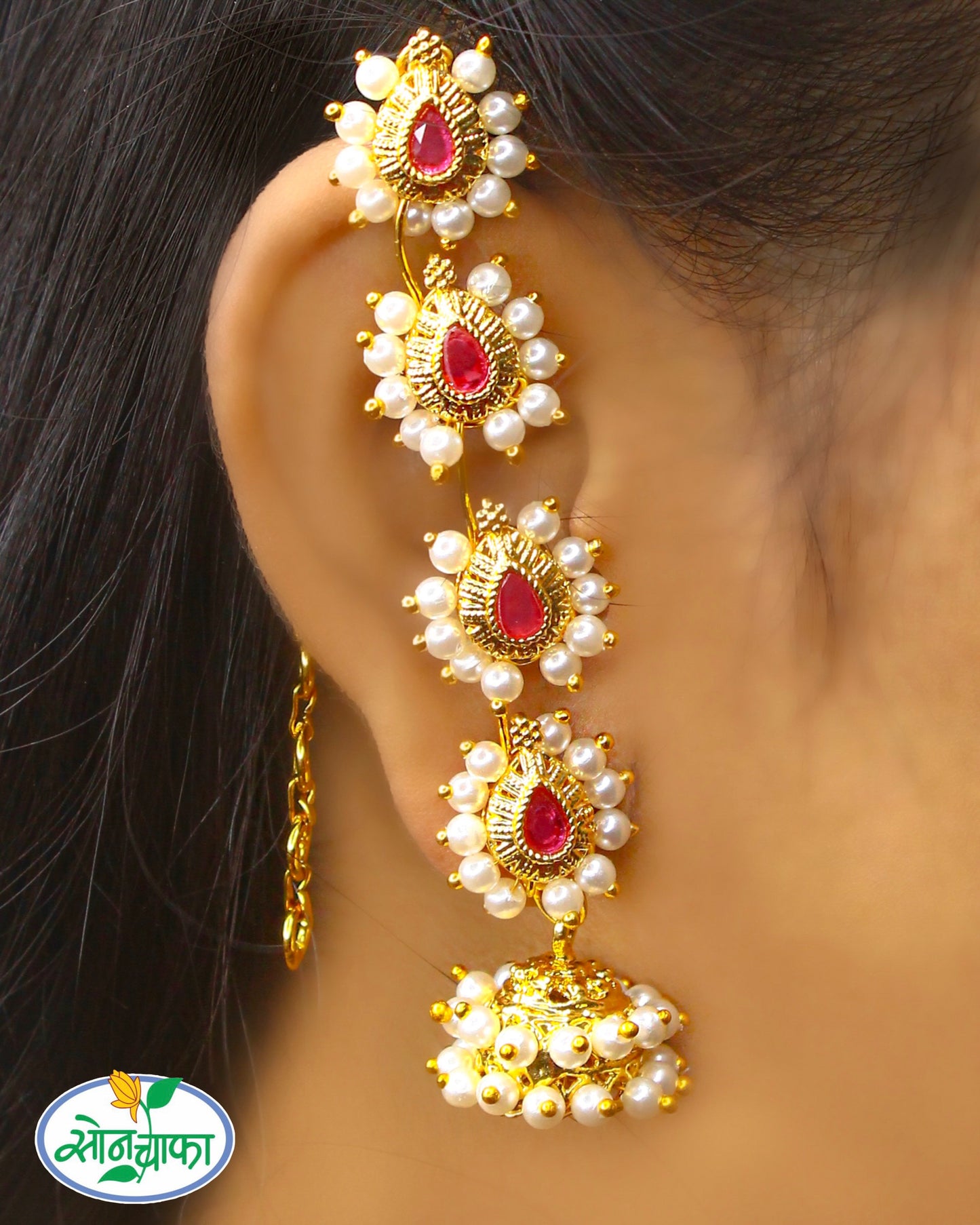 Look absolutely graceful by clubbing this pair of beautiful kanchain earrings with your costume. These feature wonderful kuyri design and woven with alluring pearls along with crafted from golden finish metal. These stylish kanchain are good in quality and will be your fashion companion for many years.