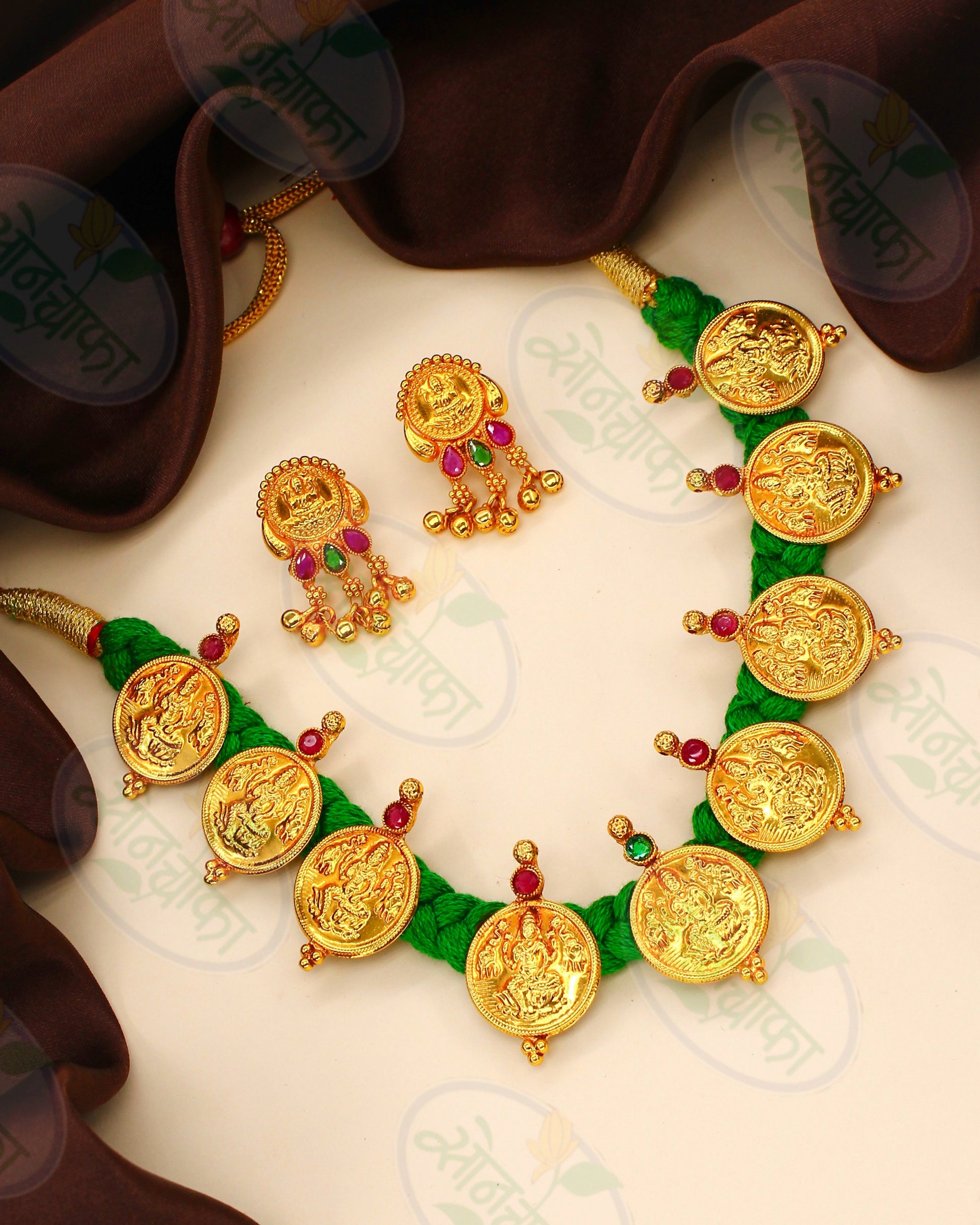 Sonchafa Jewellery offer this pink green stone combination designer royal look necklace set .