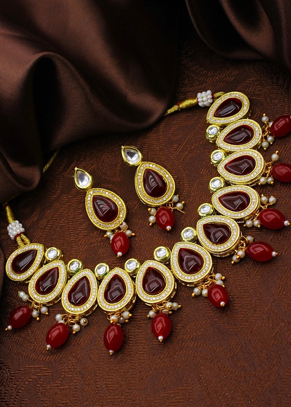 If you are fond of holding designer accessory then you must pick this golden finish appealing choker set from Sonchafa Jewellery. It is embedded with sparkling kundan set. This necklace set is fashioned from metal and ensures high durability.