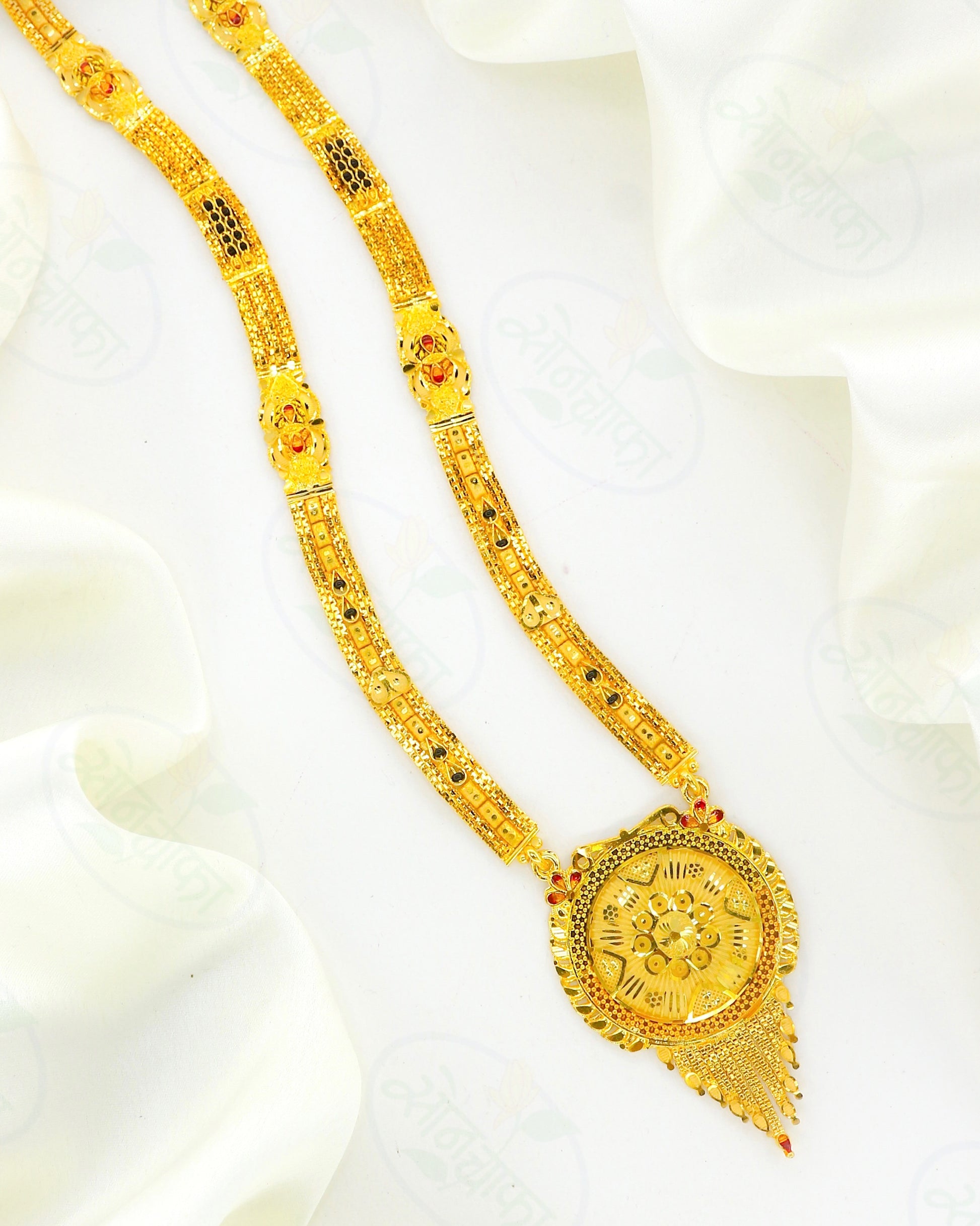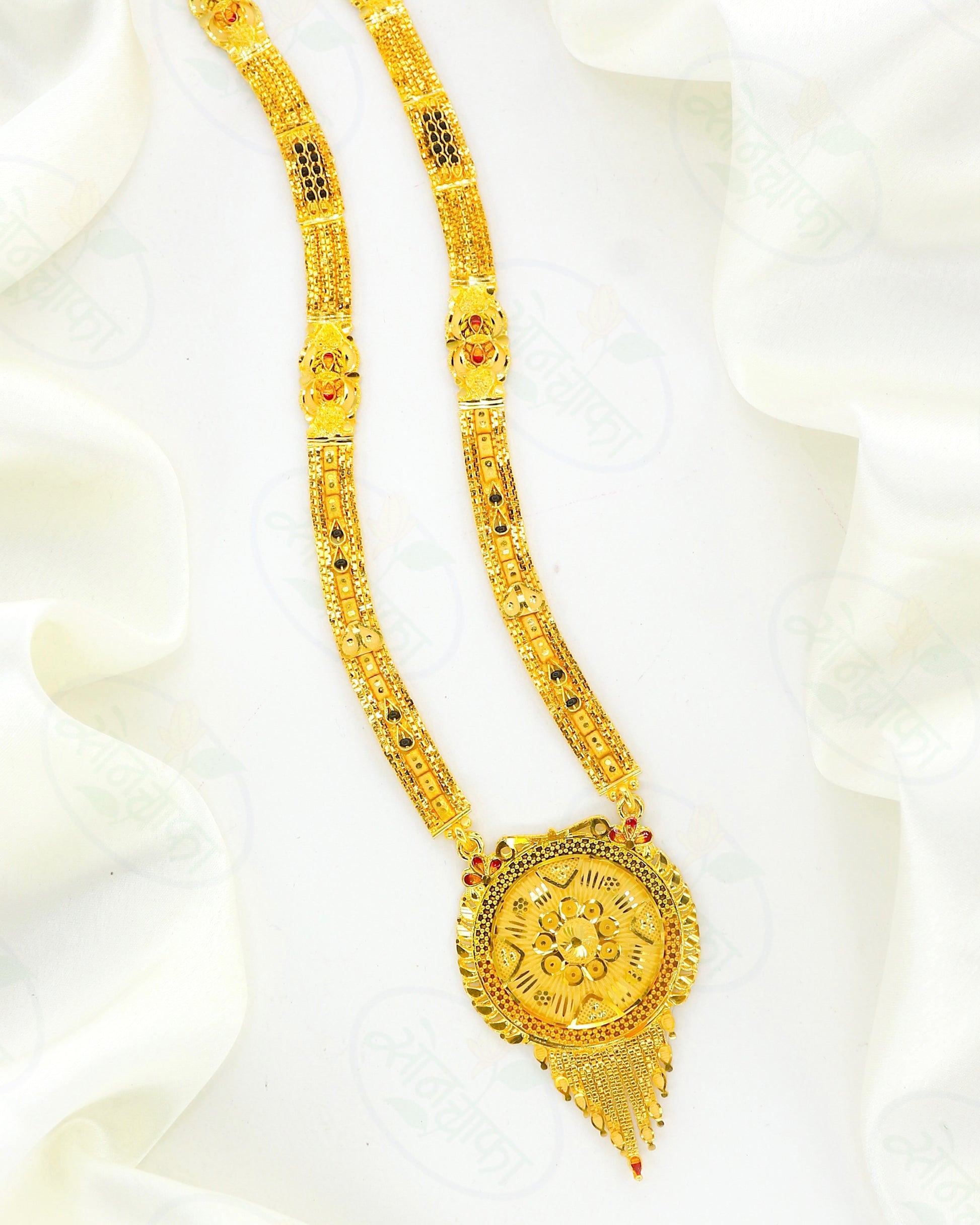 This festive season make an exclusive addition to your jewellery drawer by adding this 1 gram gold adorable mangalsutra. It is styled with wonderful pendant with wonderful gold plated chain & feature eye-pleasing.