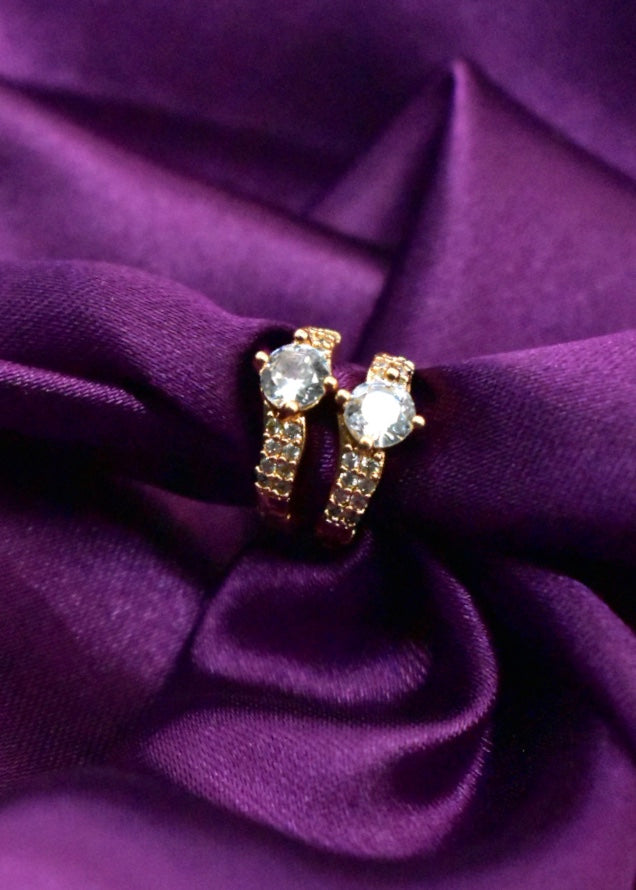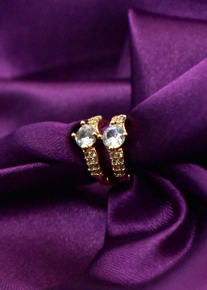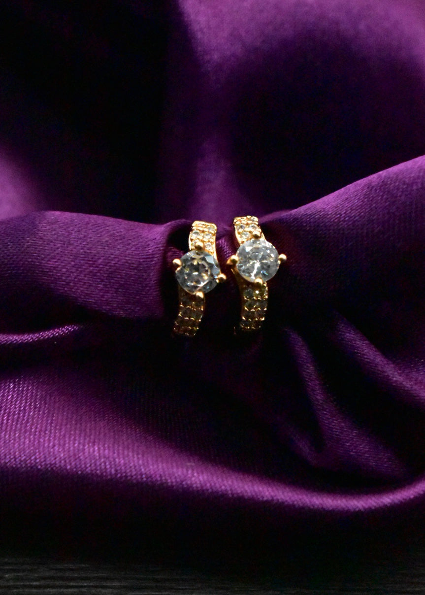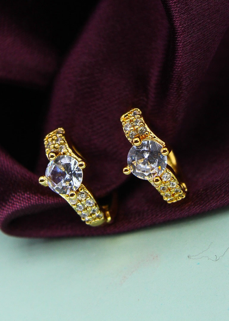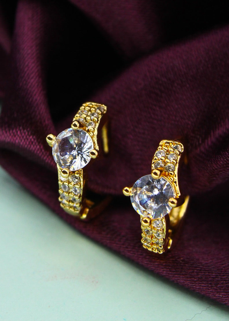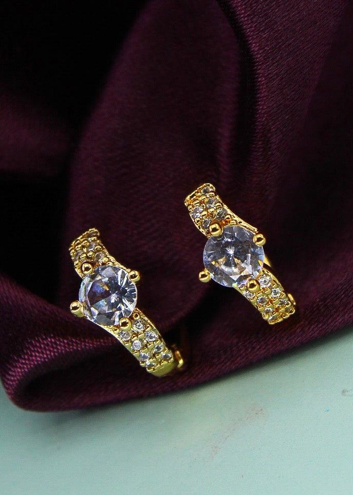 Sonchafa Jewellery brings to you this charming pair of earrings . It is encrusted with precious white Dia diamonds and crafted from golden finished metal. These ear studs are good in quality and rust resistant.