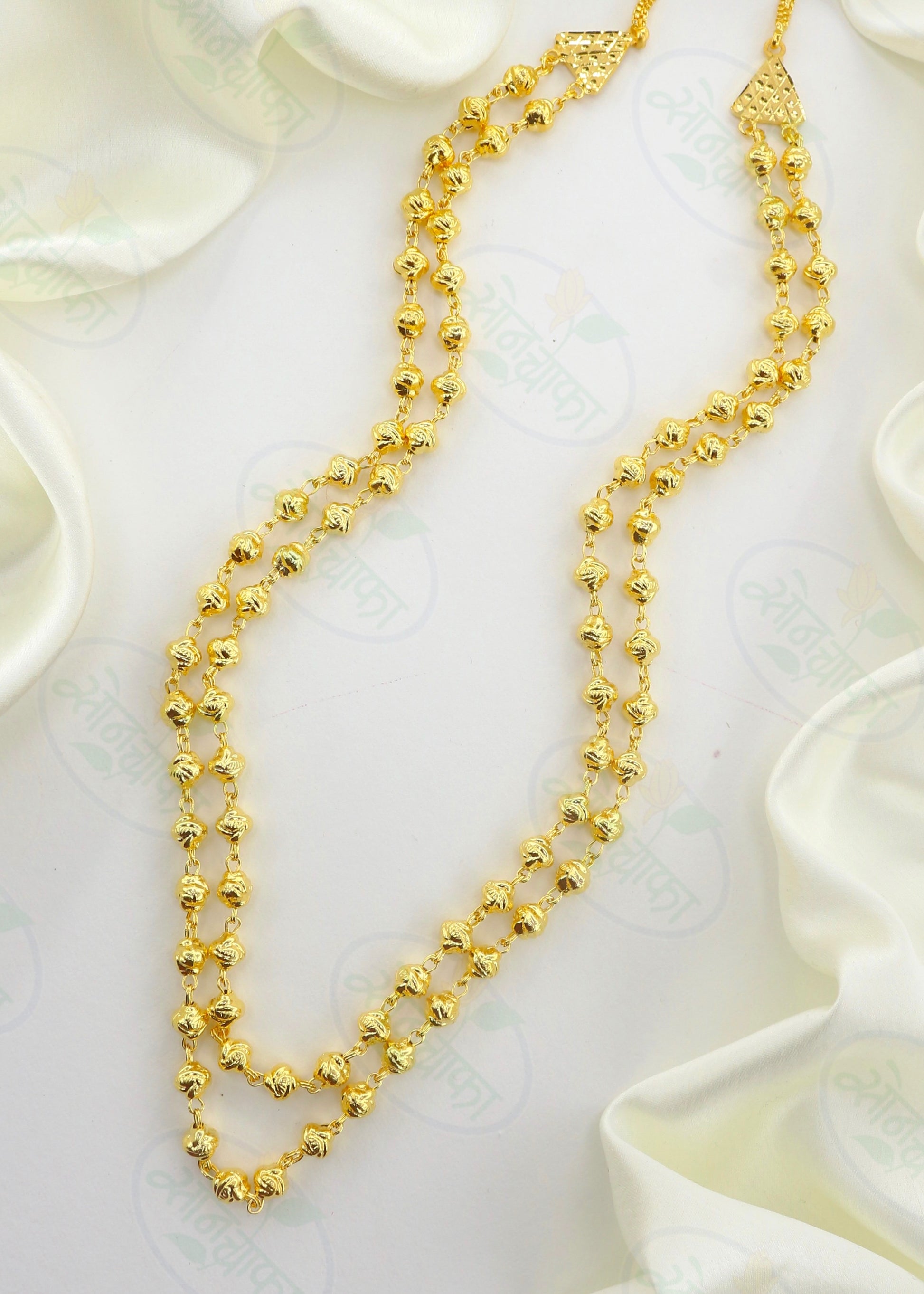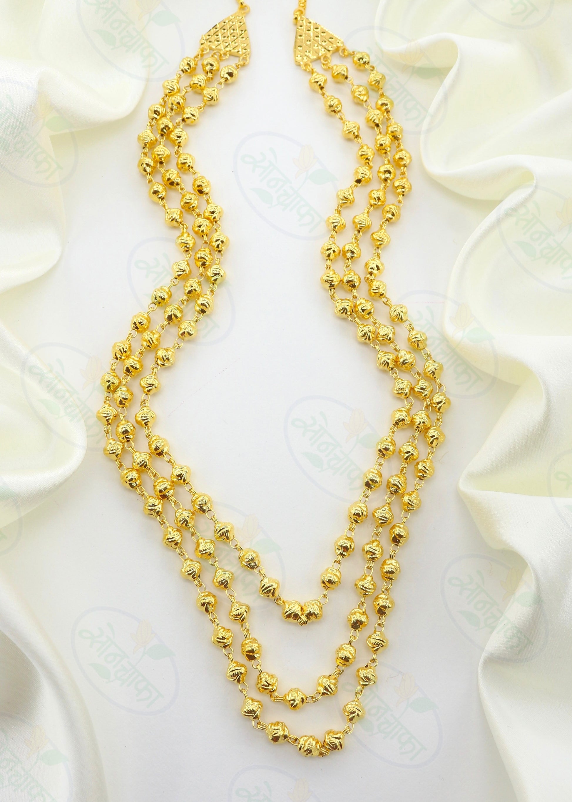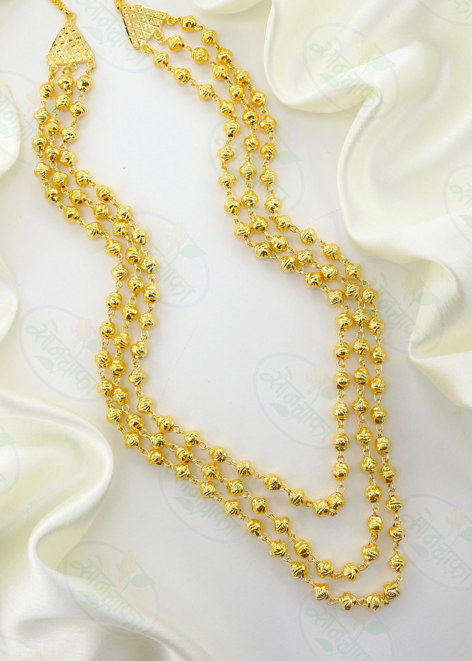 If you are married then you must hold this 1 gram gold plated triple layer Mohan Mala designer necklace from Sonchafa Jewellery. It is woven with designer golden beads in triple layer chain. The design of this mohan mala give you gorgeous look. It is long lasting and skin-friendly as well.