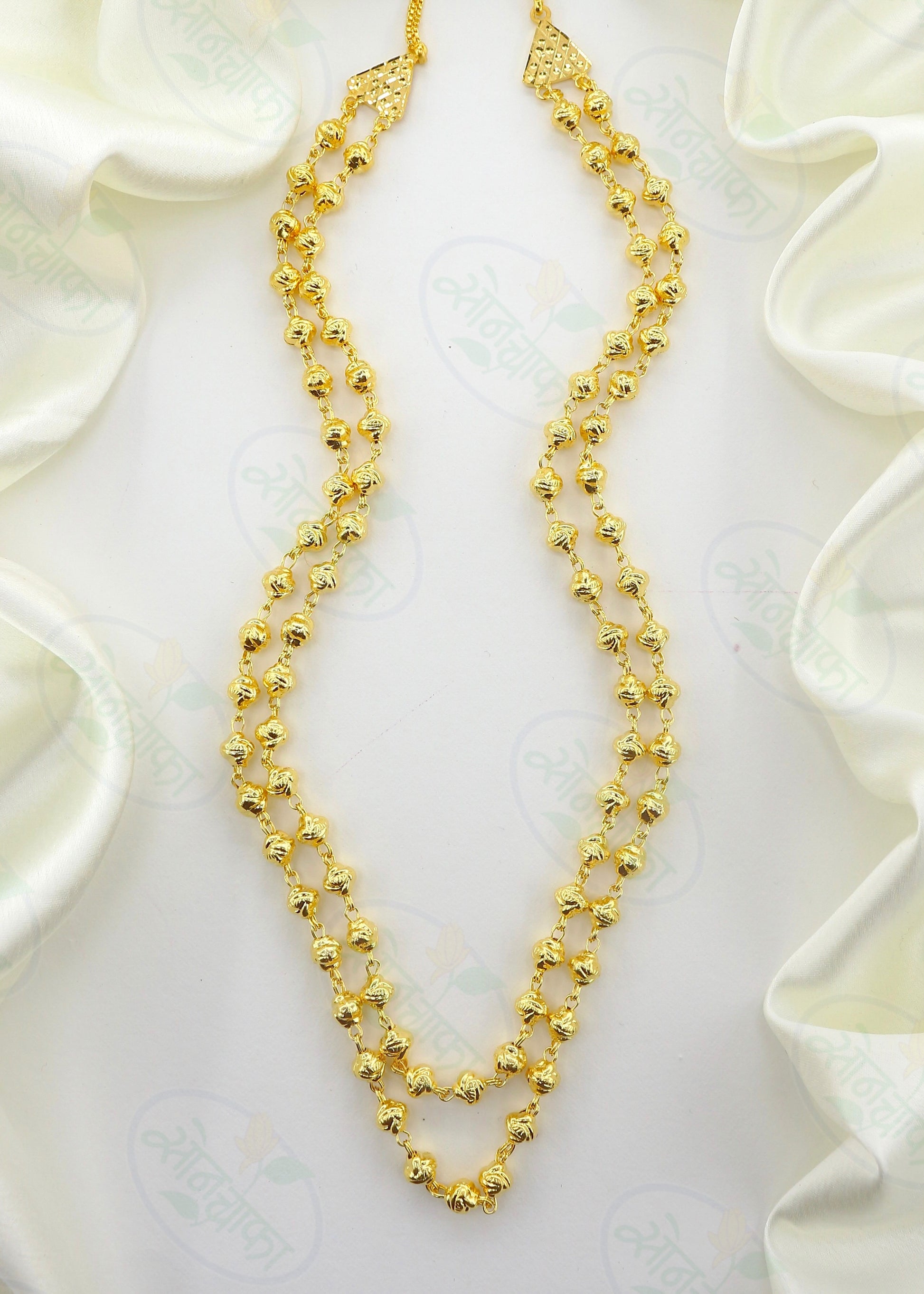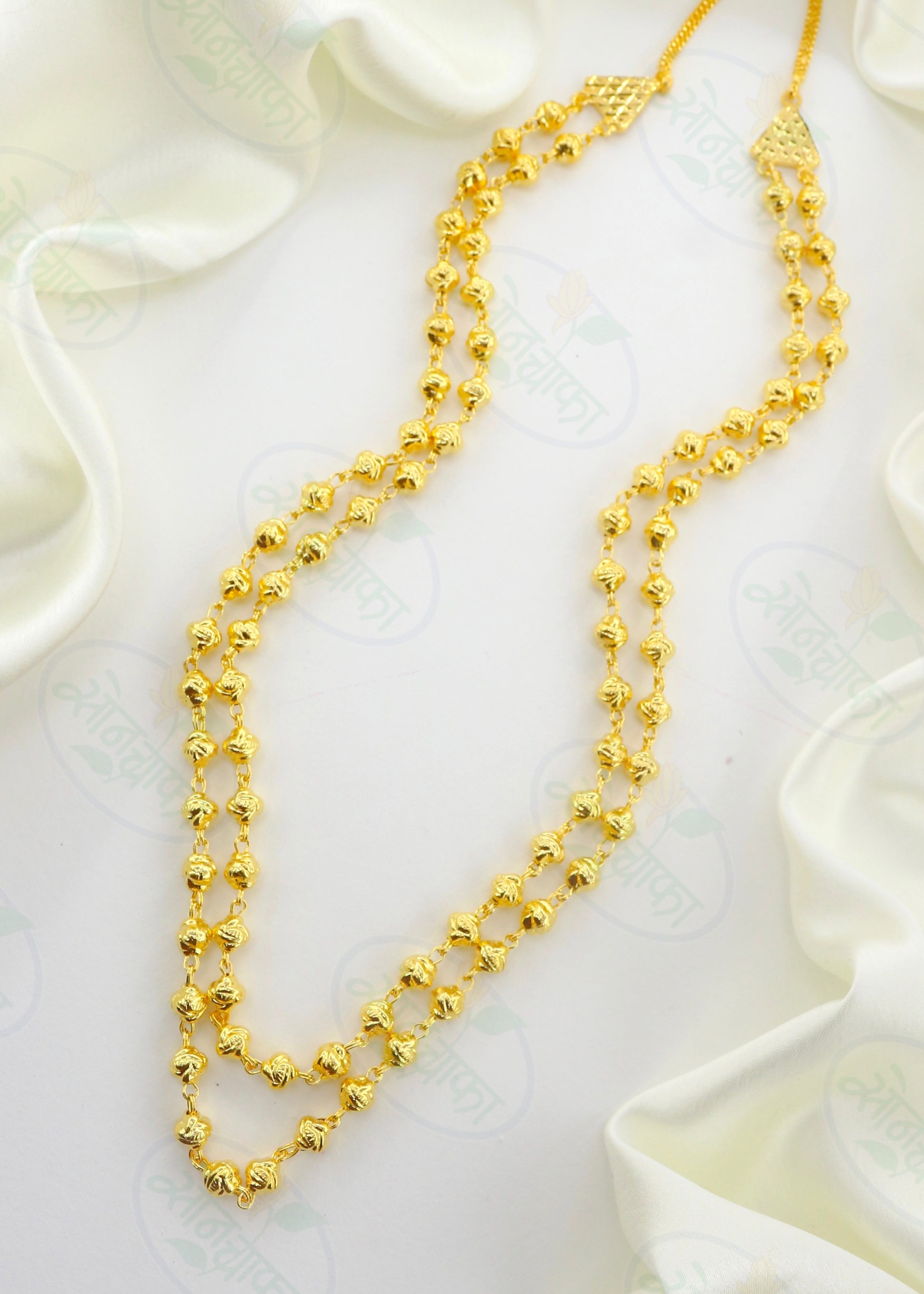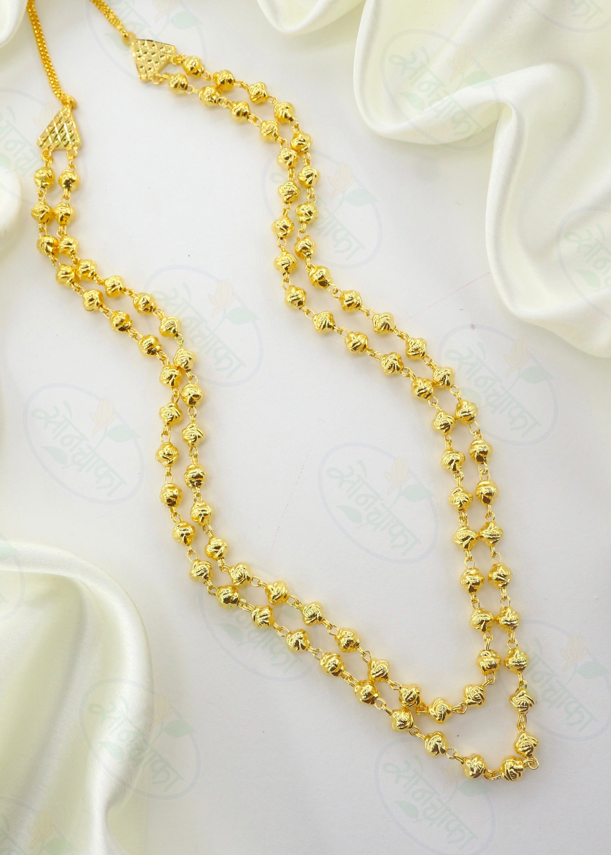 If you are married then you must hold this 1 gram gold plated triple layer Mohan Mala designer necklace from Sonchafa Jewellery. It is woven with designer golden beads in triple layer chain. The design of this mohan mala give you gorgeous look. It is long lasting and skin-friendly as well.