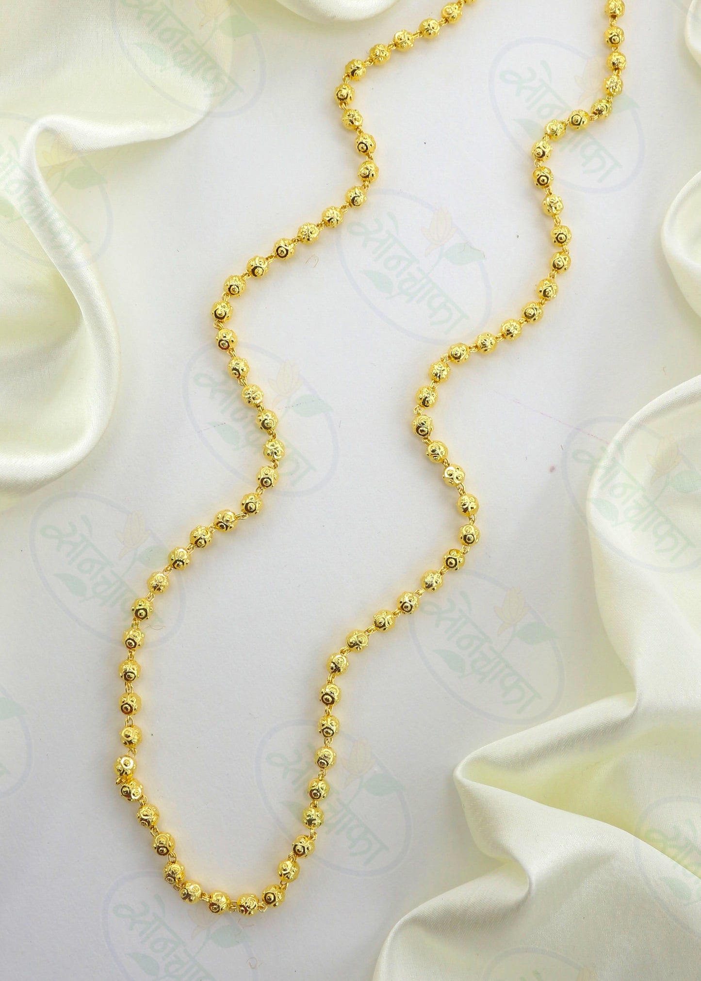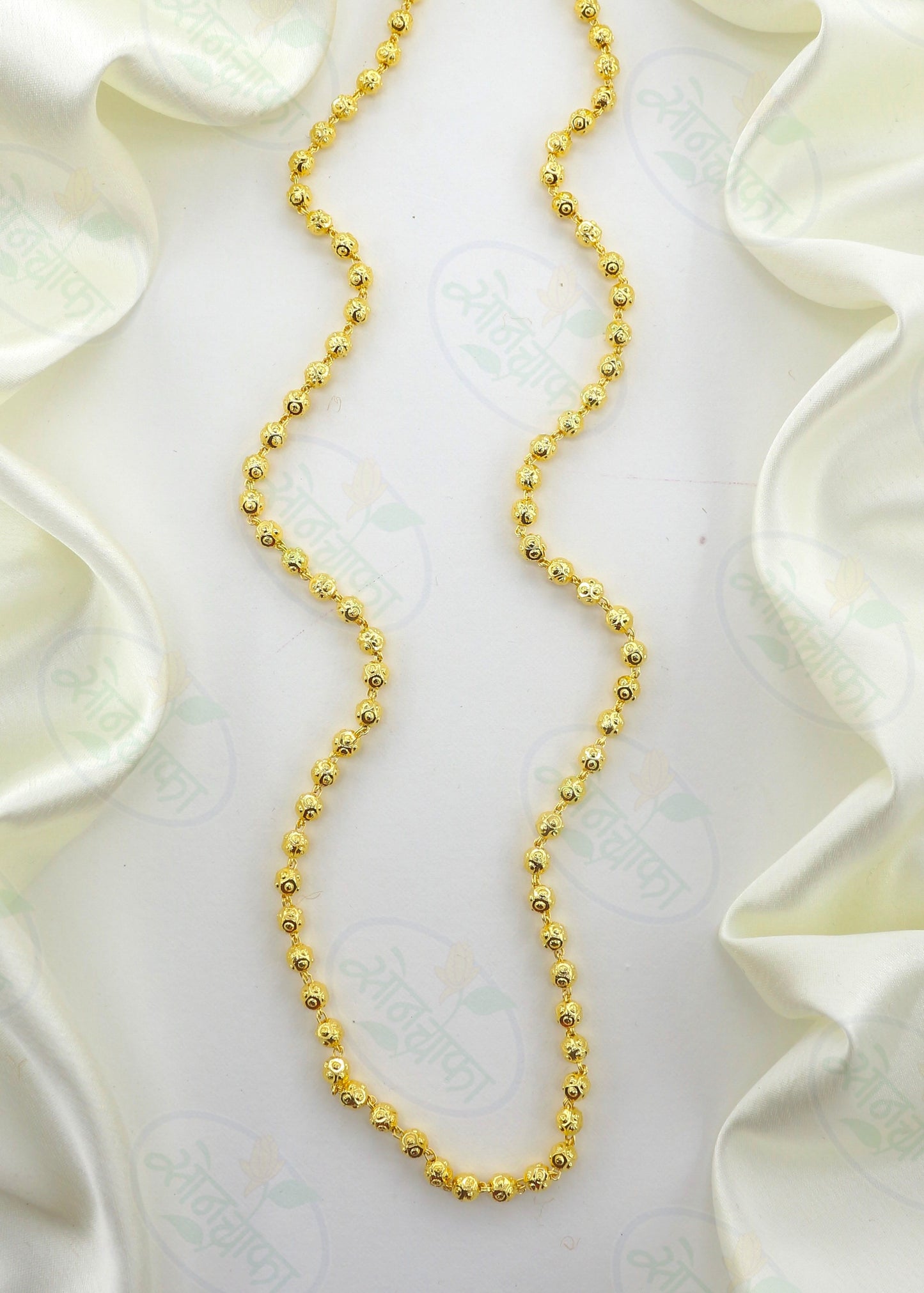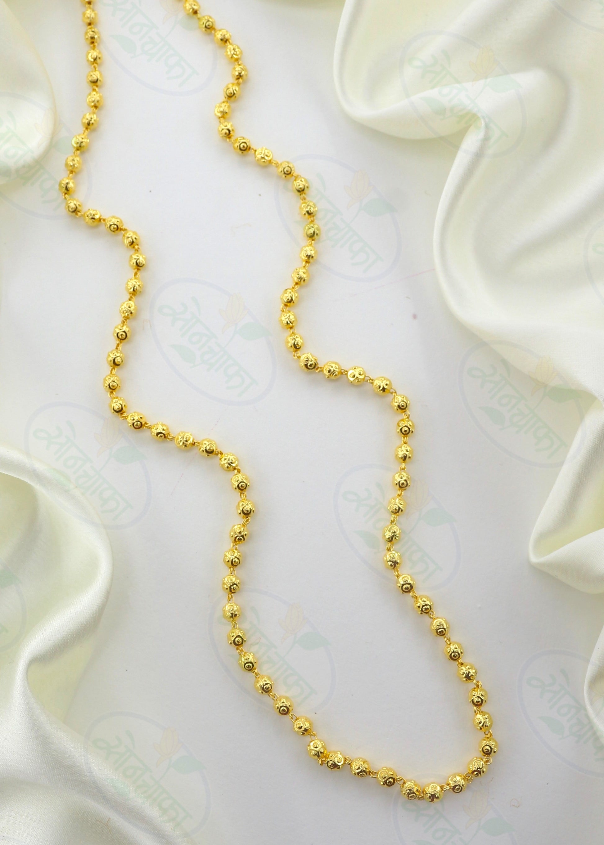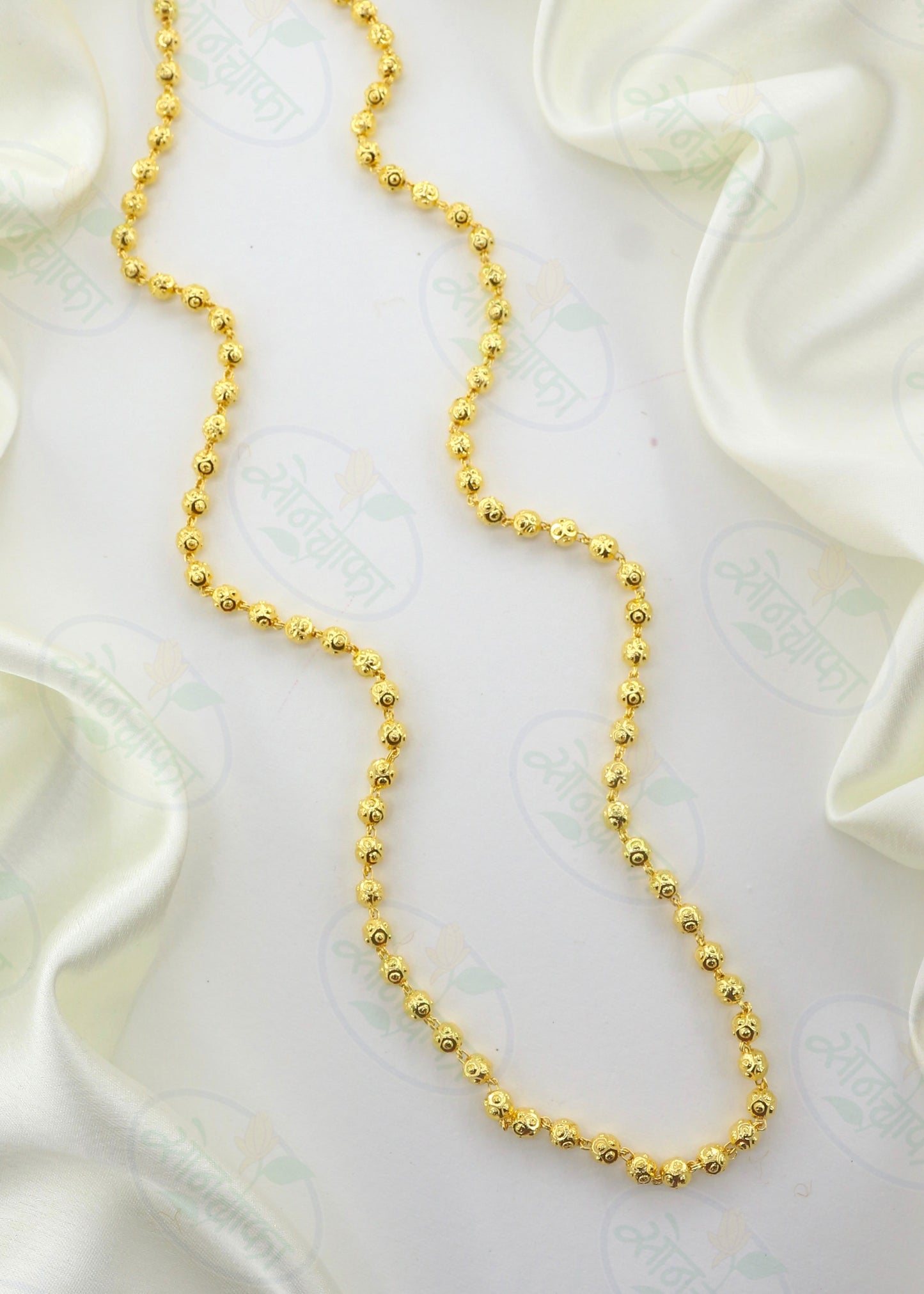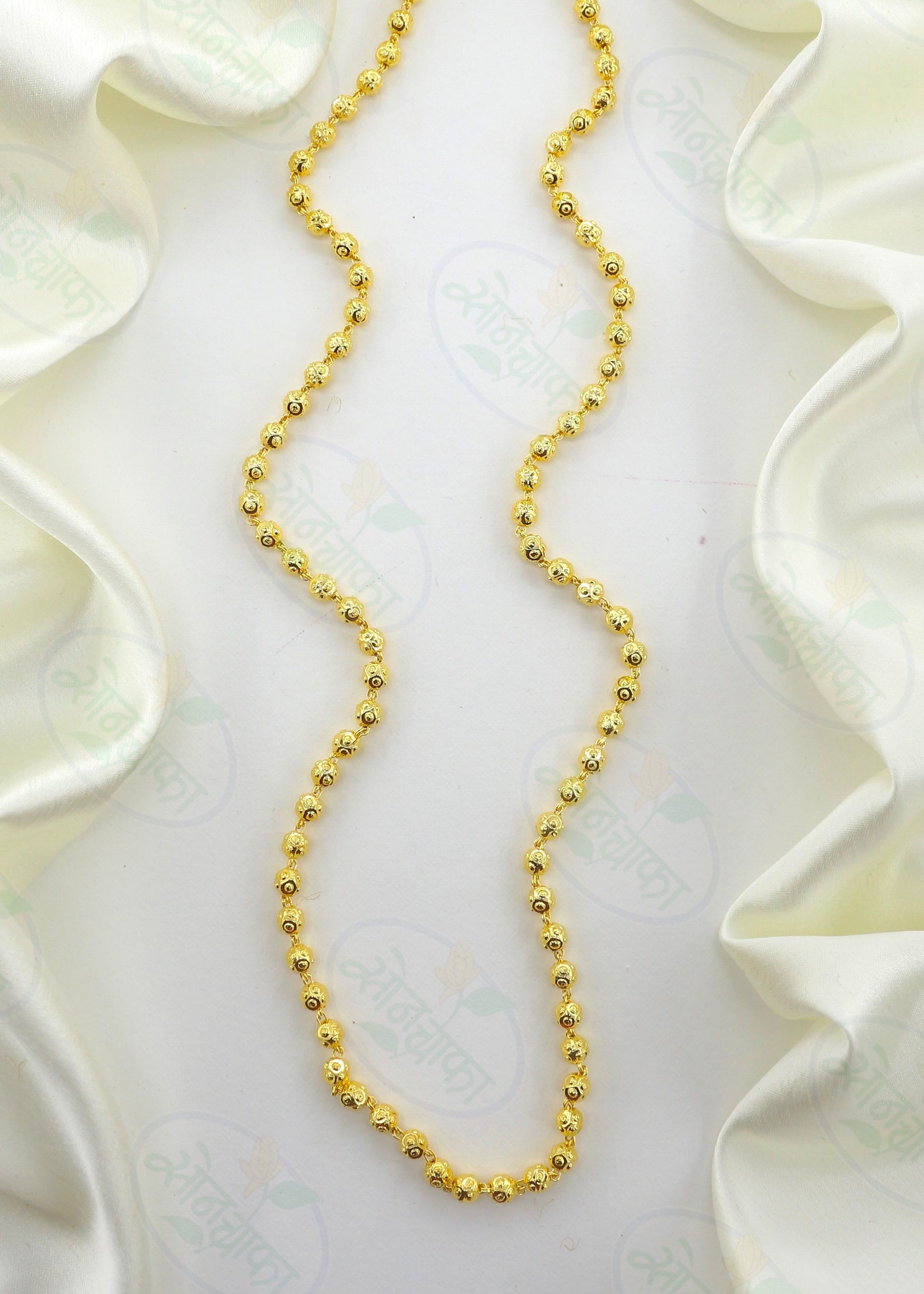 Simple yet very pretty, this Vertical Mohan mala from Sonchafa Jewellery is awesome piece to compliment your ethnic look. It is encrusted with golden beads made from 1 gram gold finish.