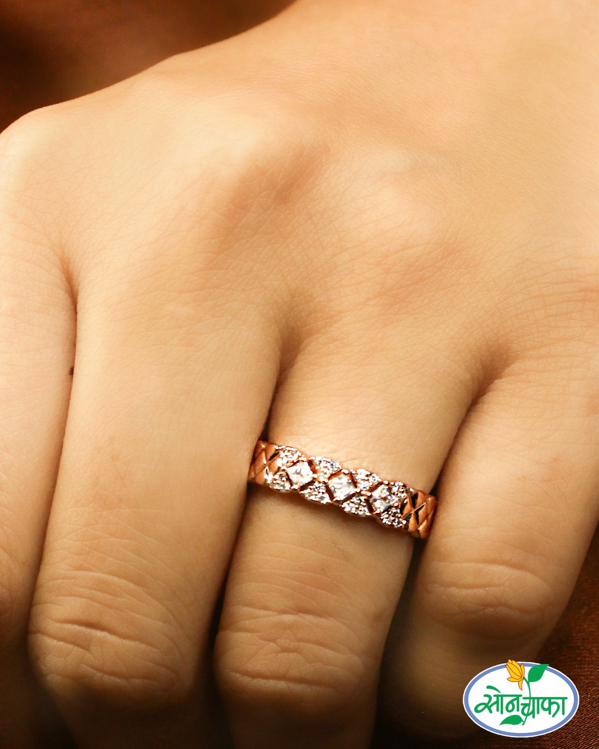 Modern women will surely fall in love with this freestyle finger ring from Sonchafa Jewellery. The design of this finger ring is highly noticeable. Made from rose gold