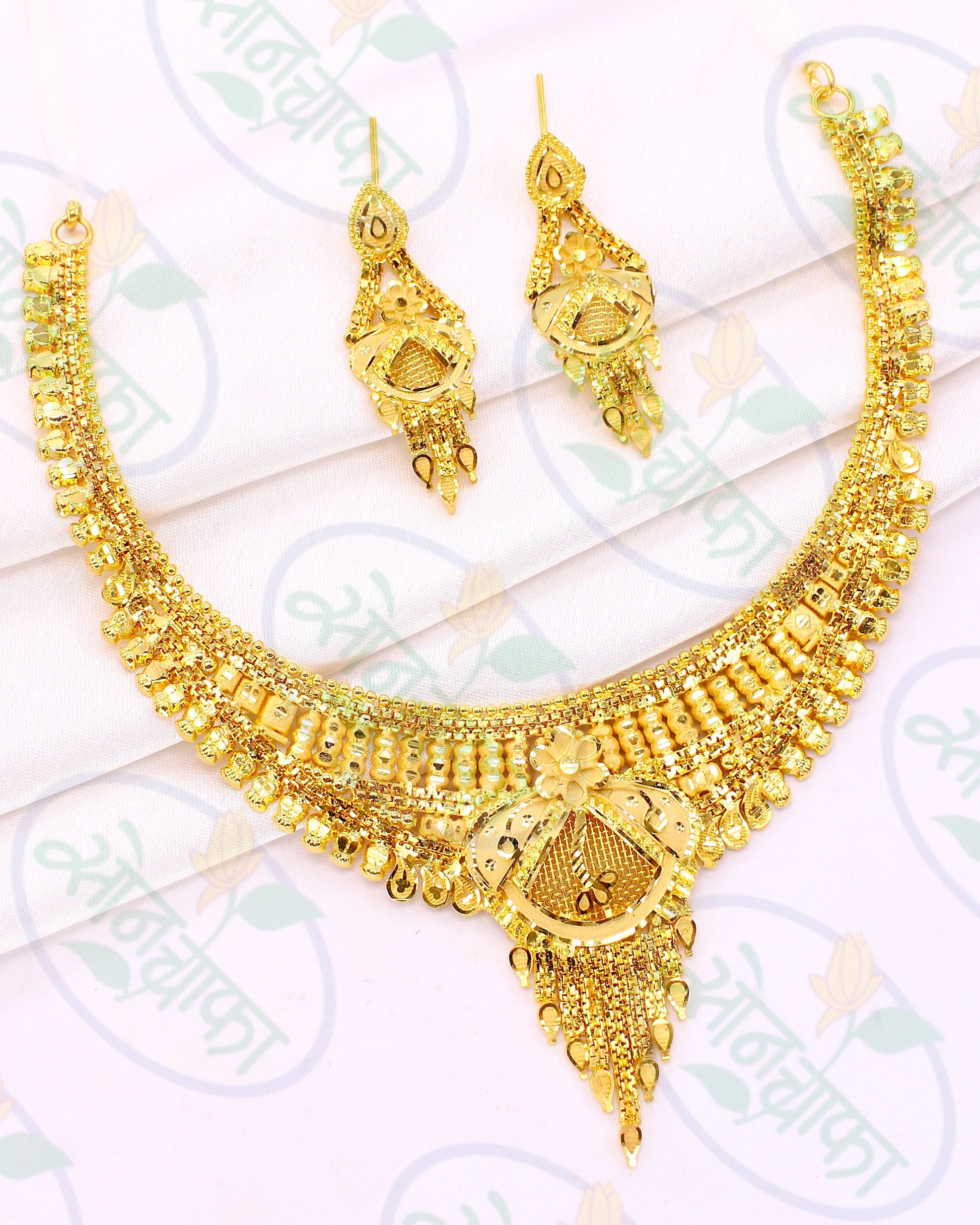 Delicate designer 1 gram gold plated necklace set form Sonchafa Jewellery for our stylish look.