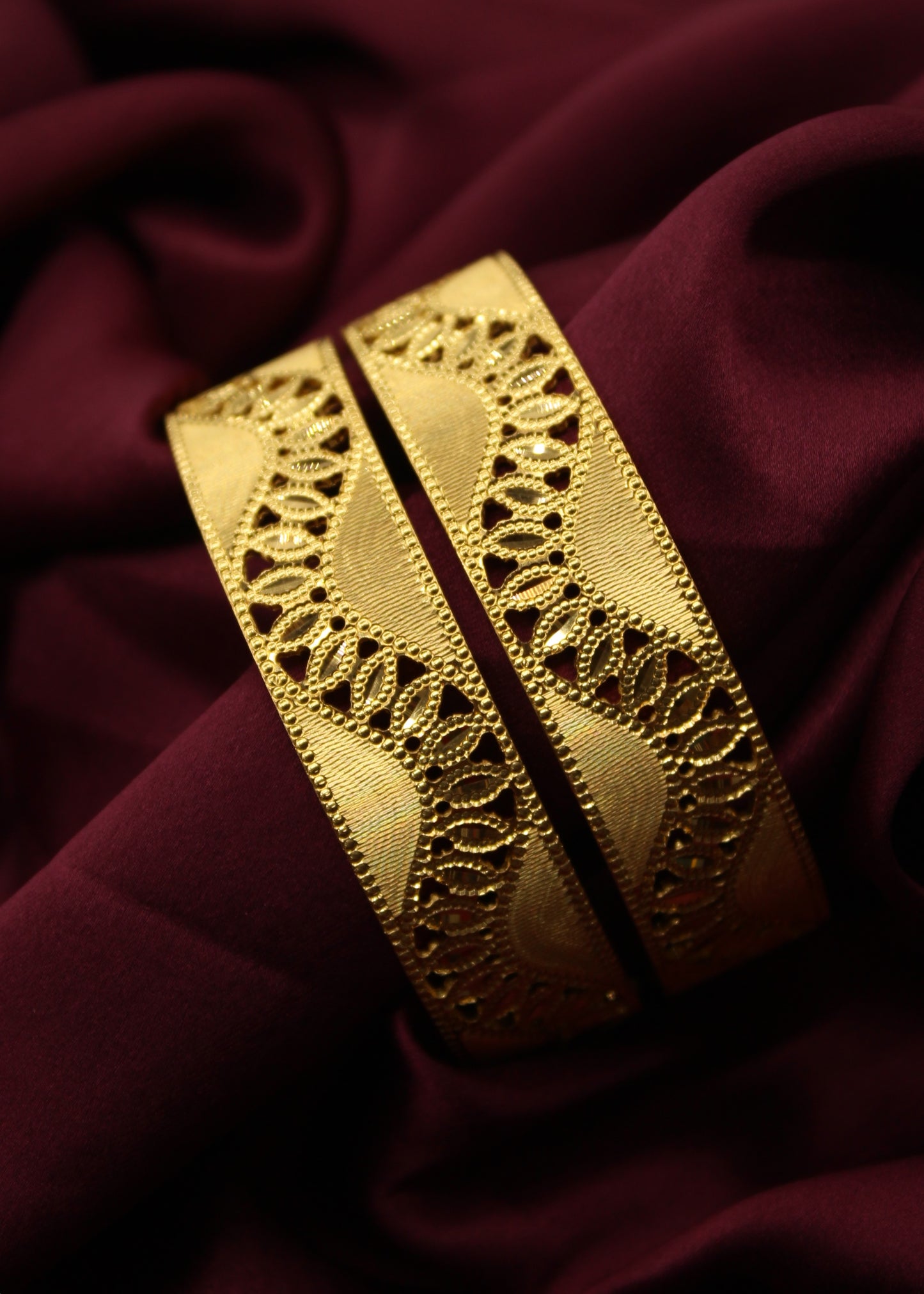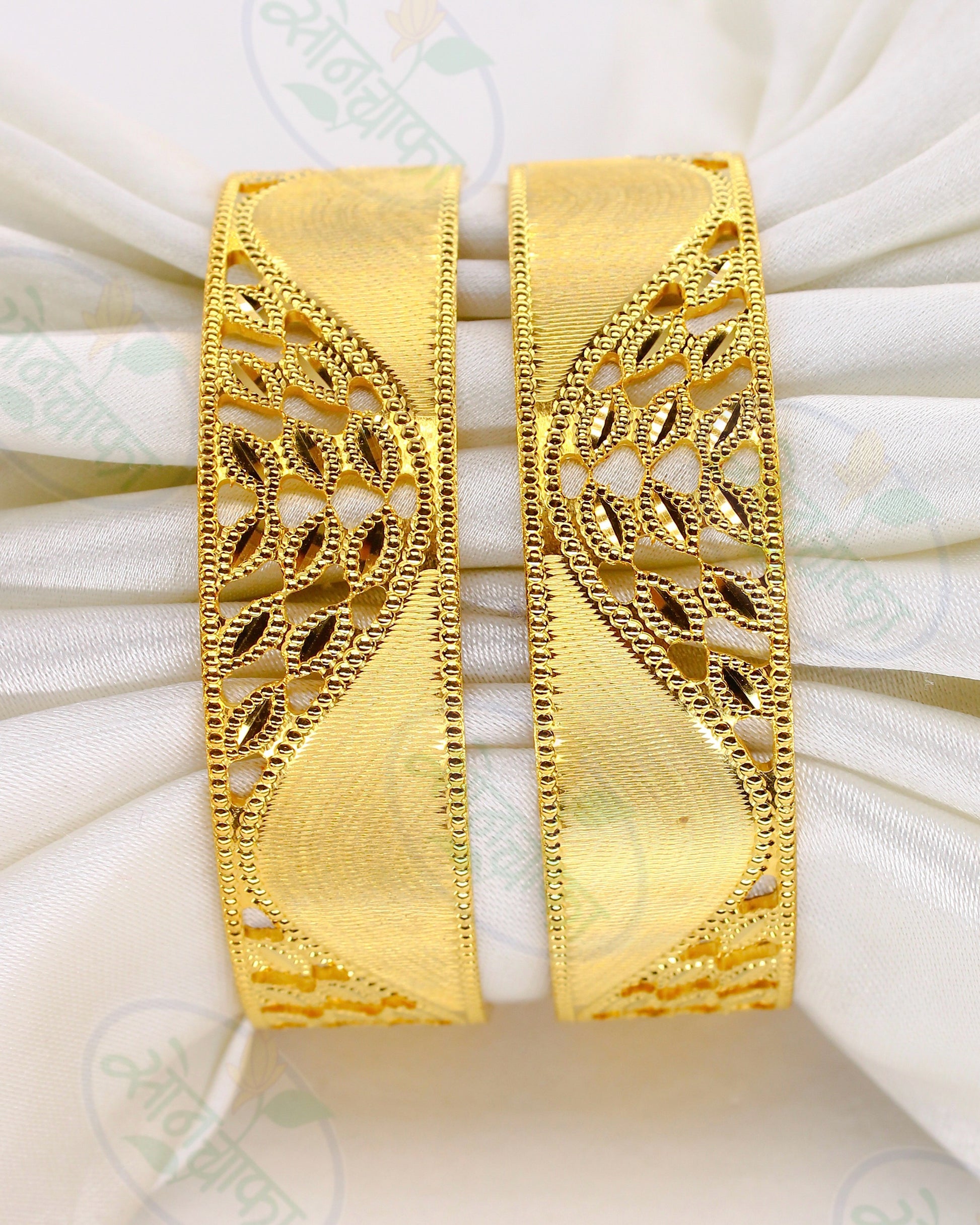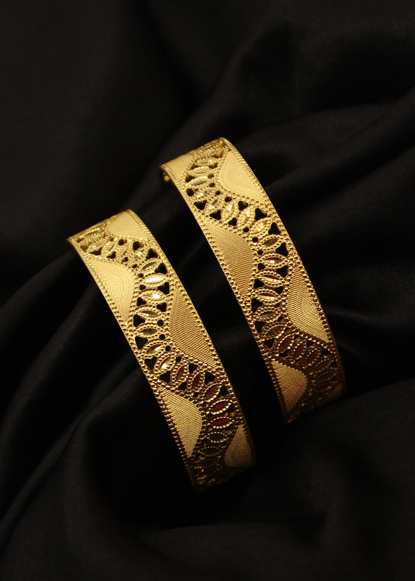 Beautiful and elegant, these 1 gram gold plated bangles from Sonchafa are one for the classy ladies. Crafted from alloy brass, these bangles are available in all size. . These stylish bangles will fetch you lots of compliments from onlookers for your amazing choice.