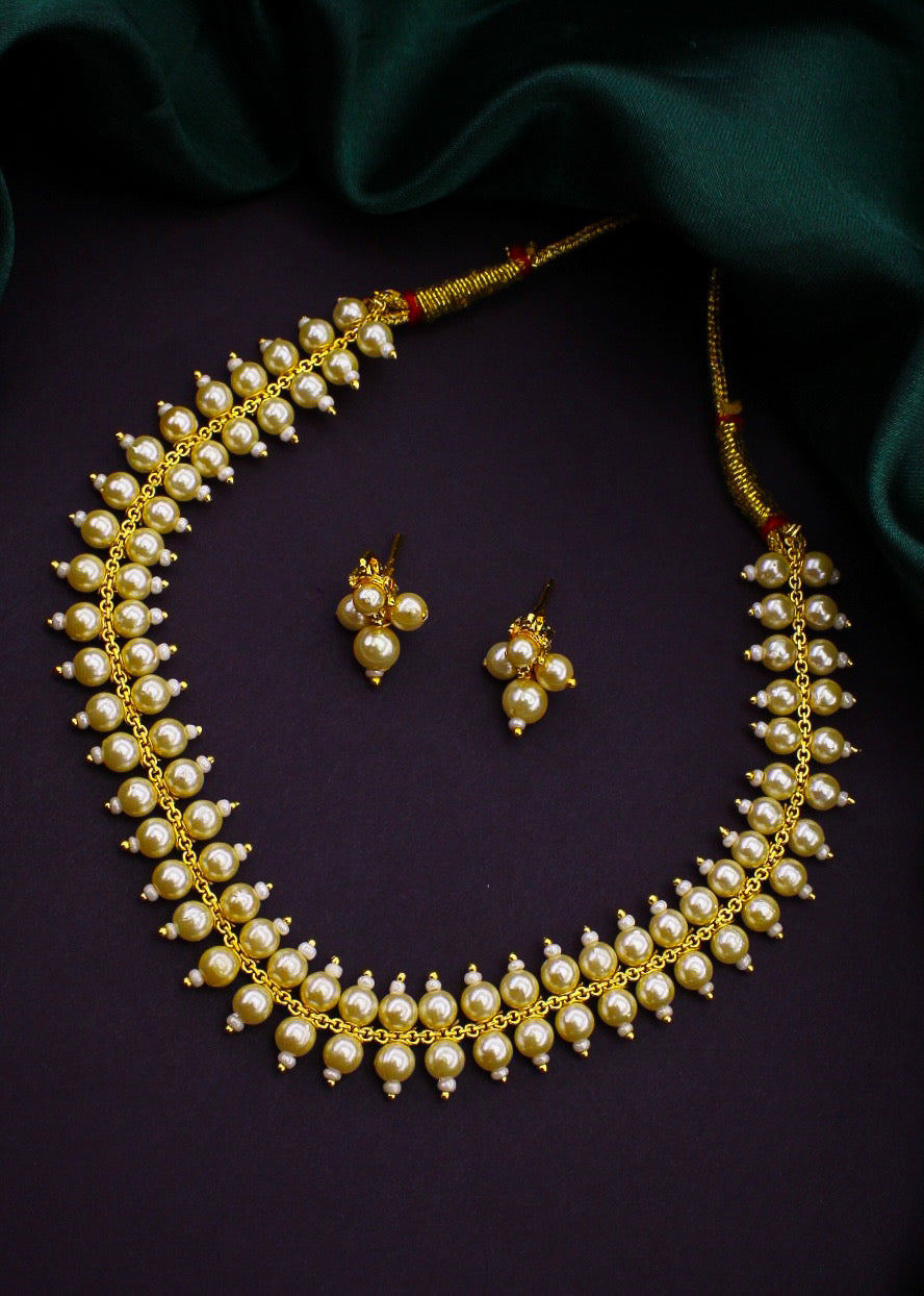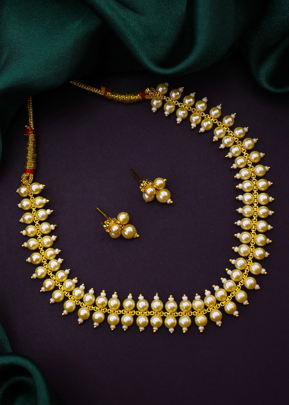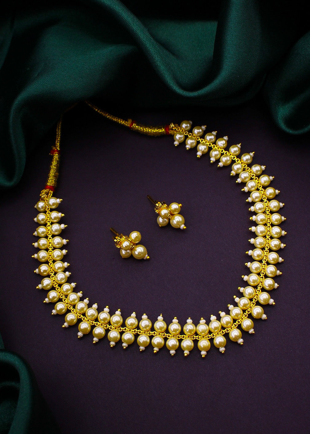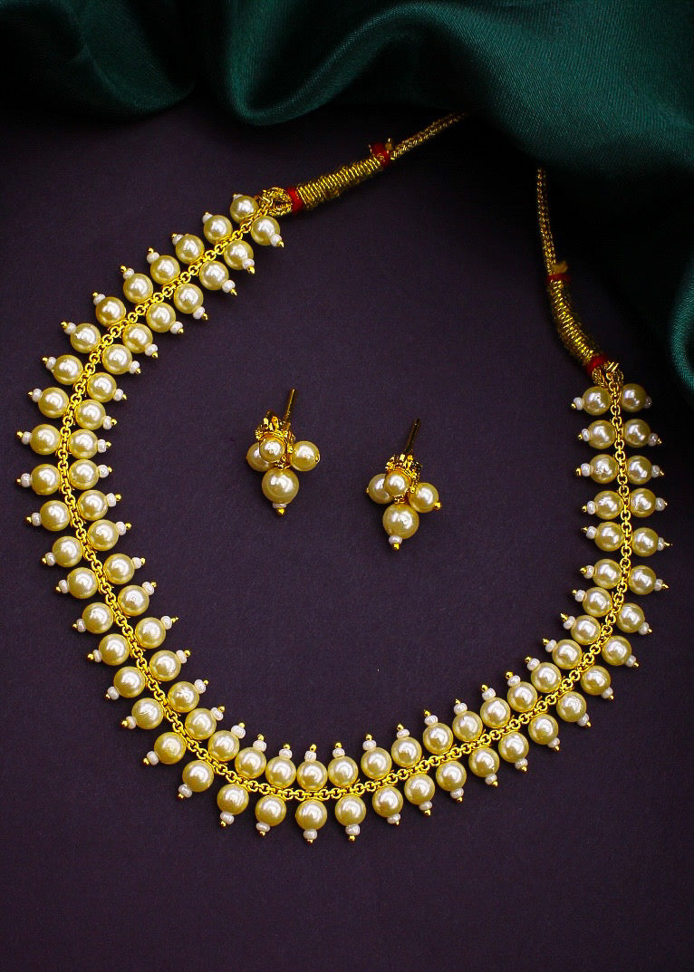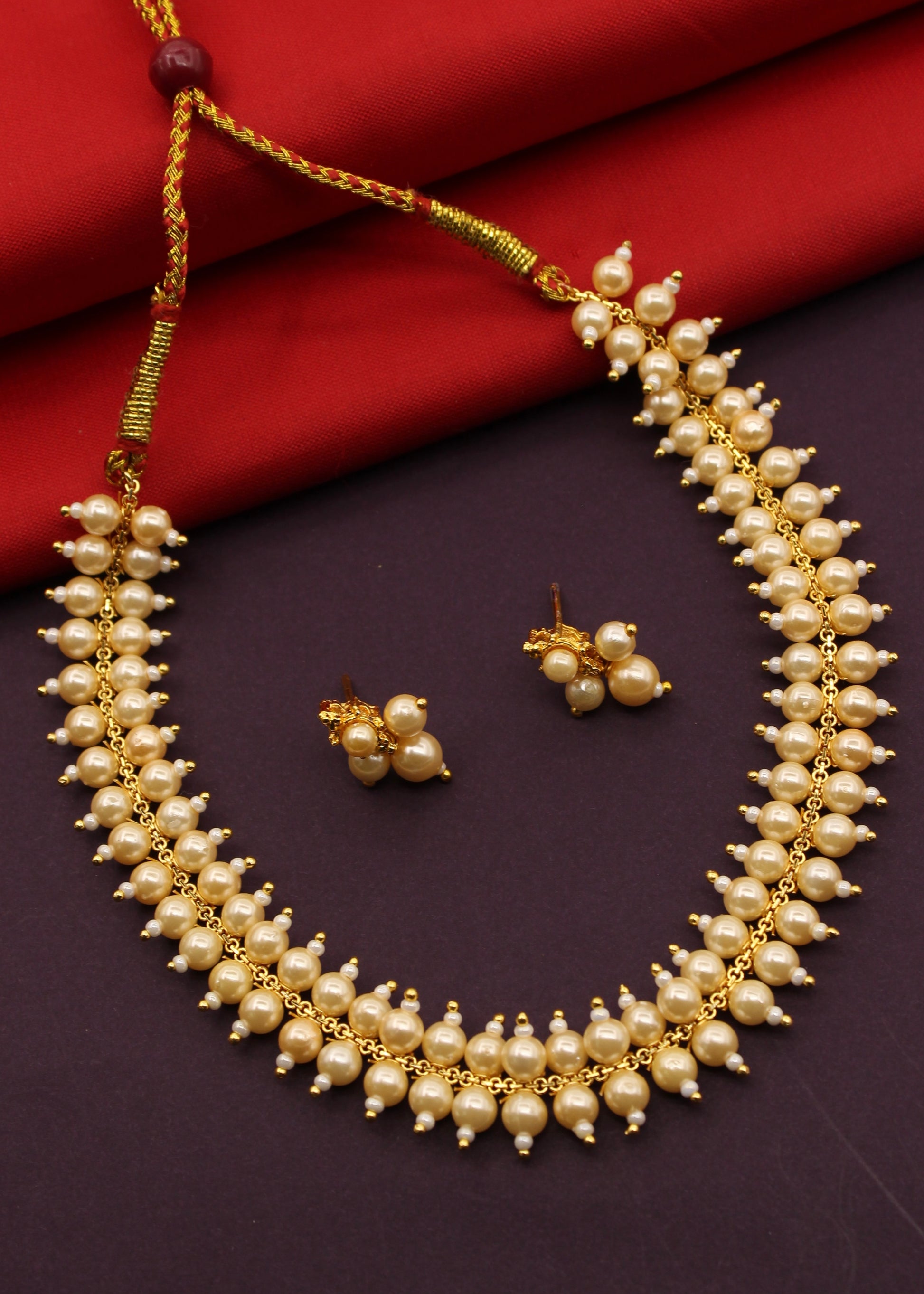 Sonchafa Jewellery offers this pearl beads designer necklace for fashionable girl who love to adorn stylish accessory. This necklace will look outstanding when team with western costume.