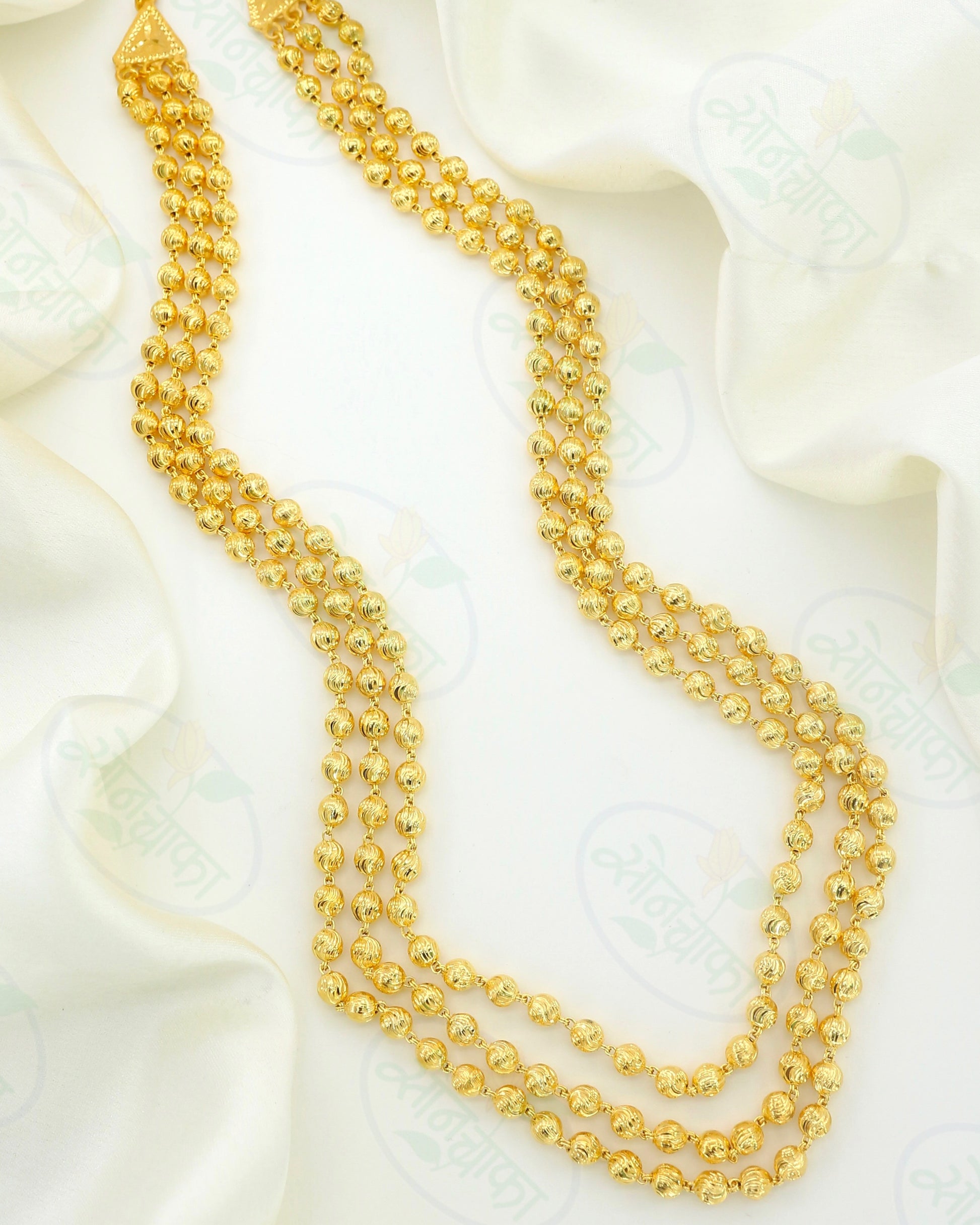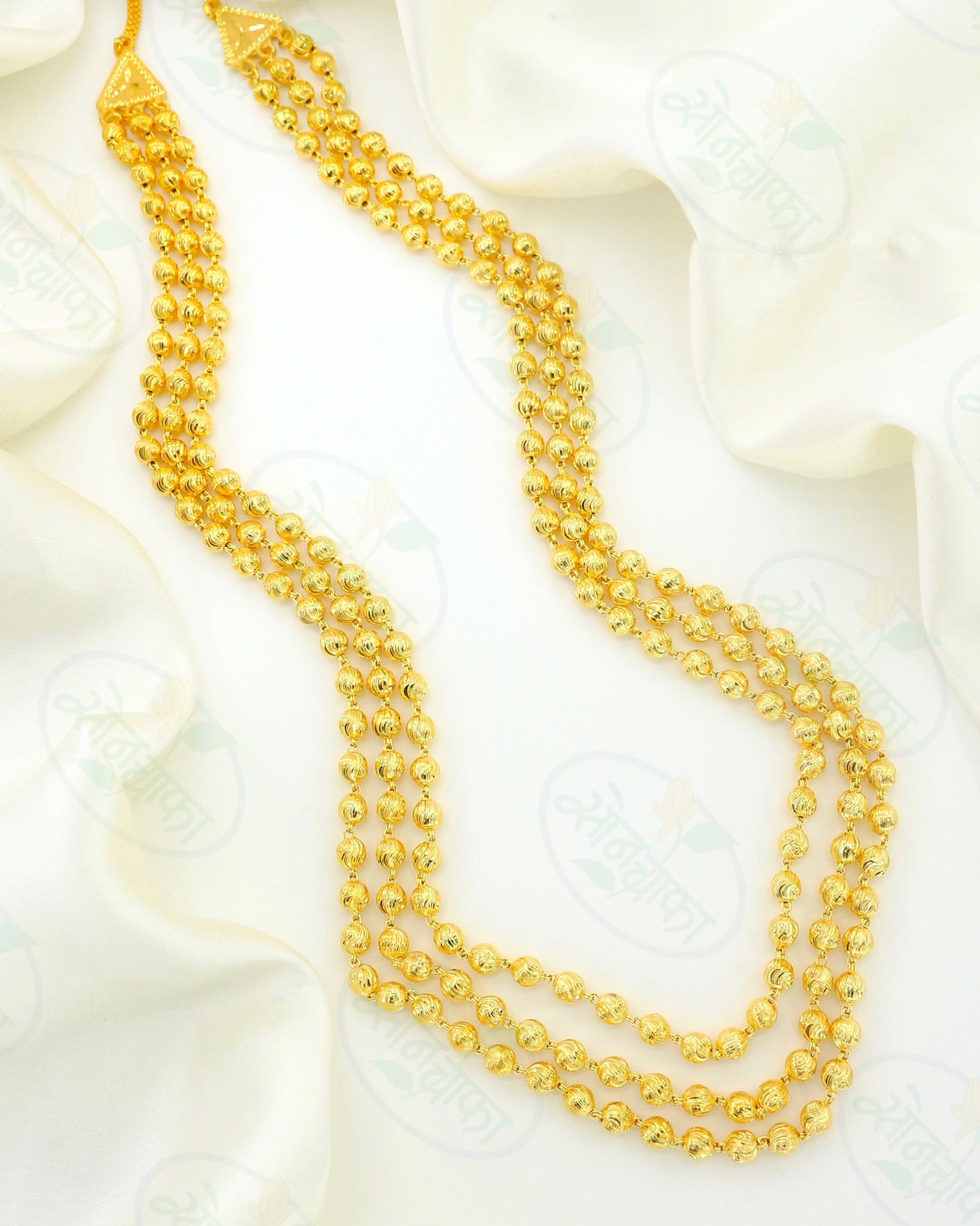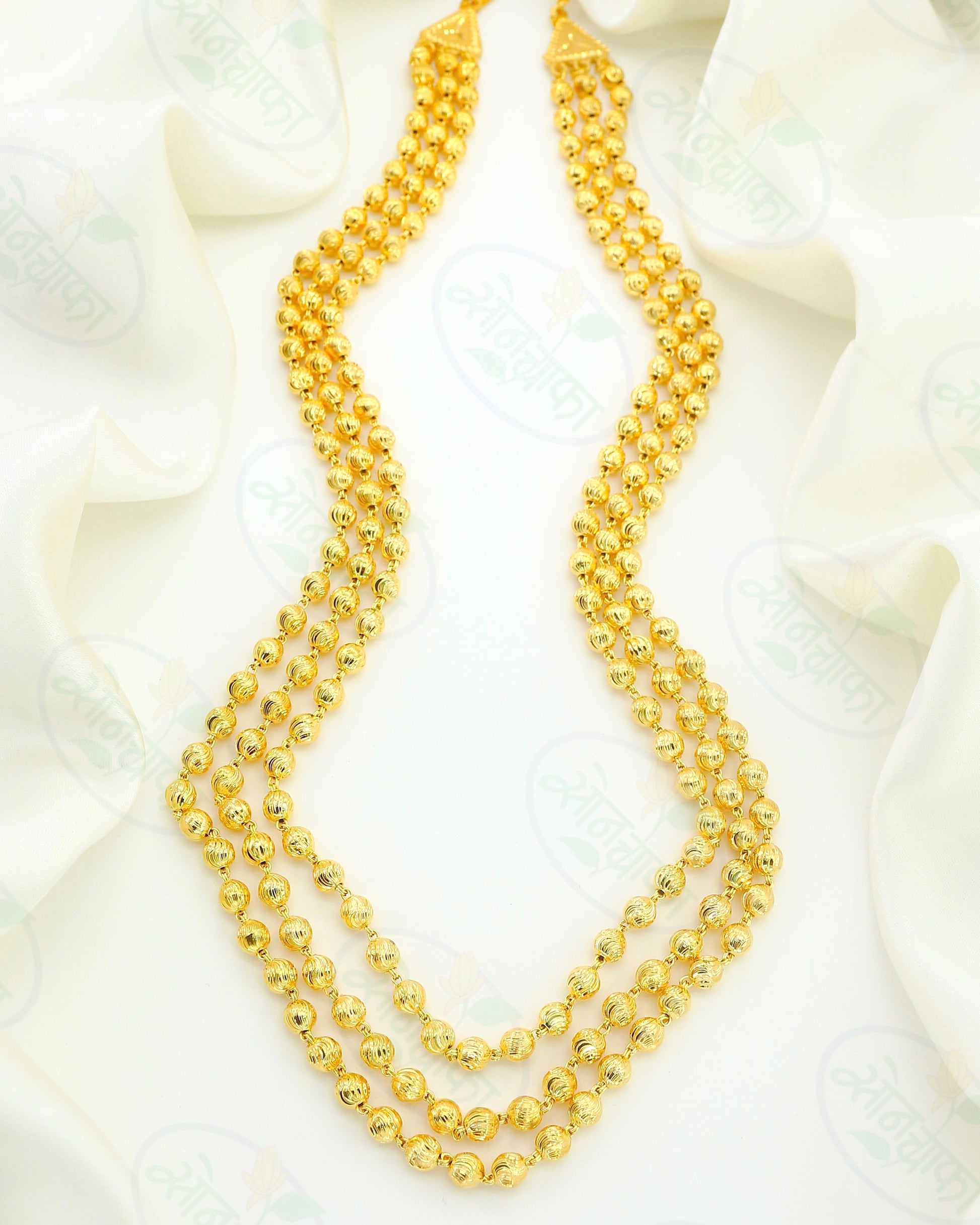Sonchafa Jewellery brings this gold plated monhanmala for stylish girls or women like you. It is styled with studded golden beads & made from 1 gram gold plated metal. This necklace set ensures high durability and long lasting.