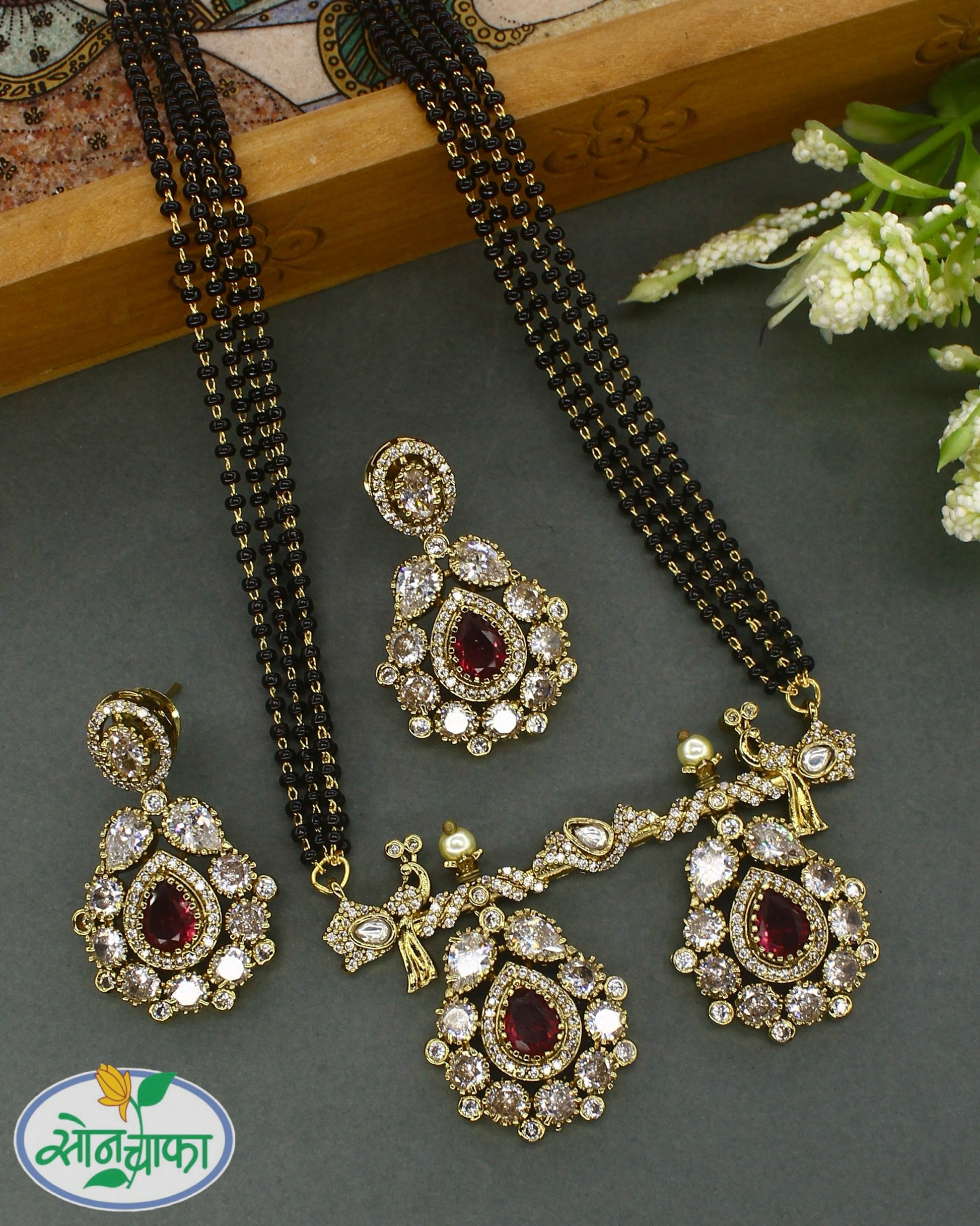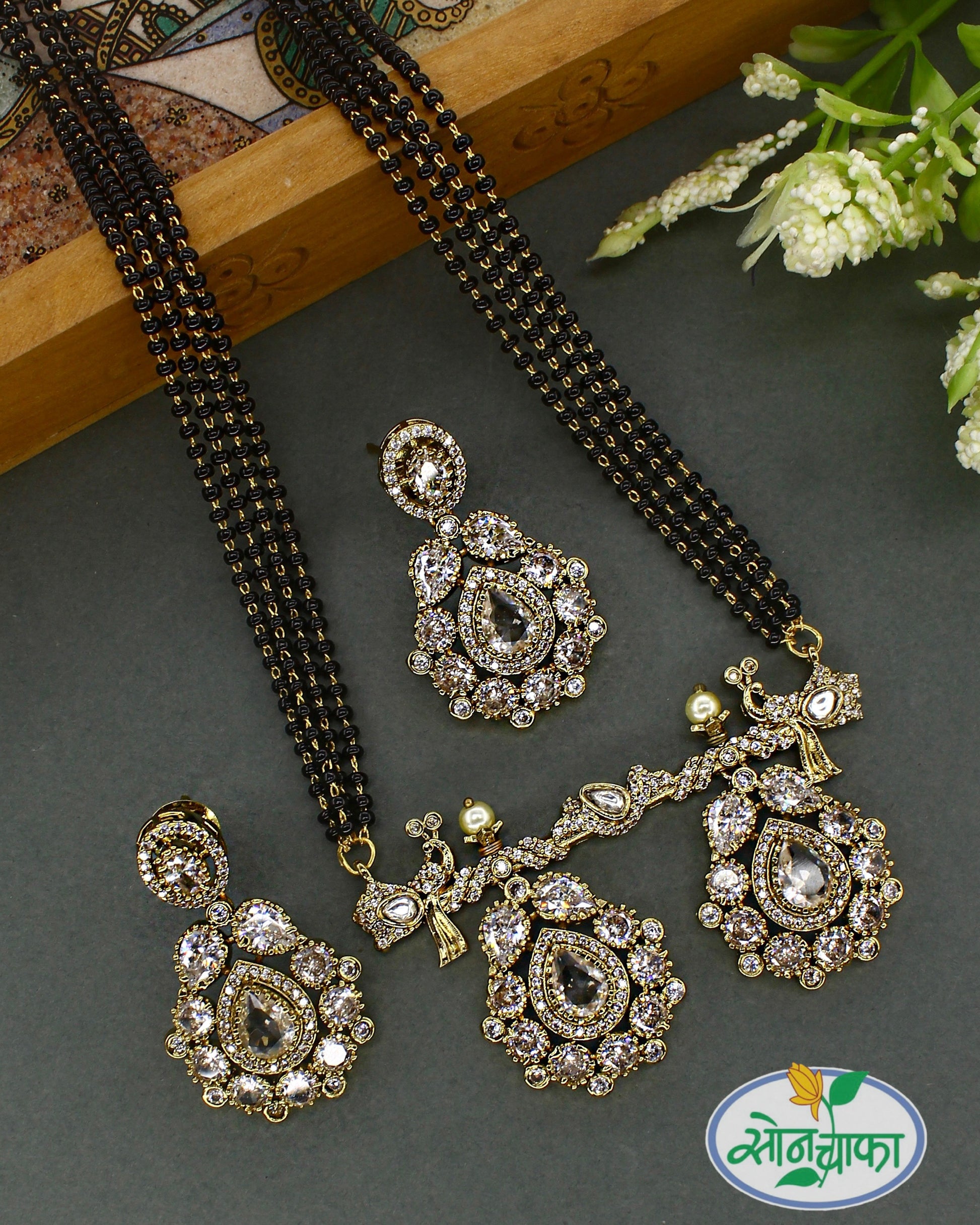 Sonchafa Jewellery presents this golden finish rajasi mangalsutra for stylish women lie you.