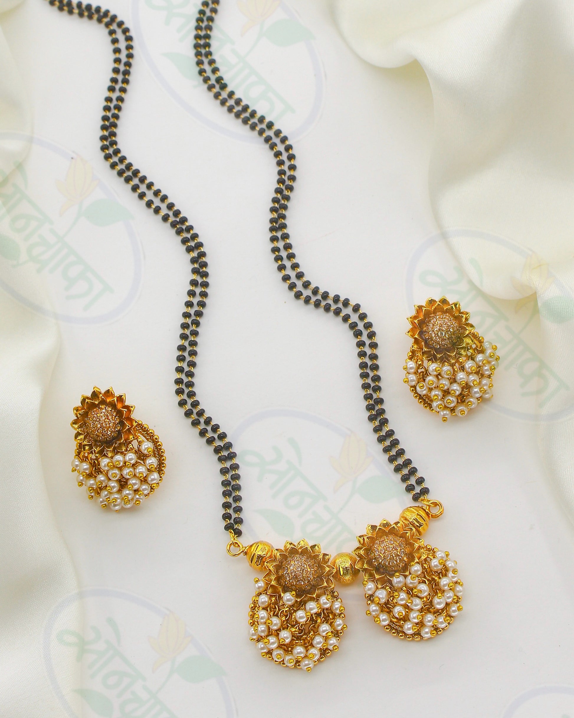 Sonchafa Jewellery presenting this antique finish appealing mangalsutra for women who love to wear traditional type mangalsutra. It is woven with pink-green stone