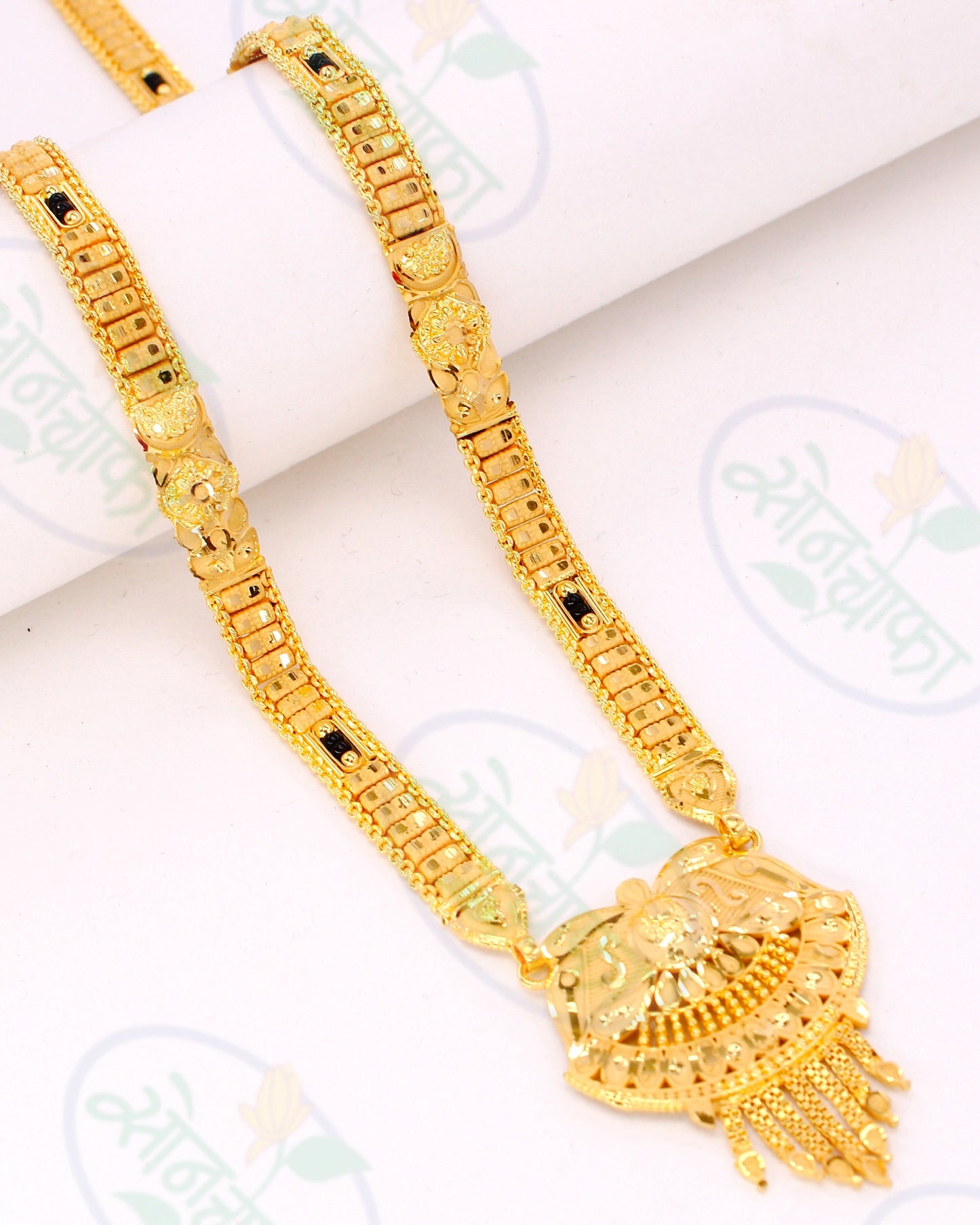 Floral designer pendant gold plated Mangalsutra from Sonchafa Jewellery will appeal to you at very first look.