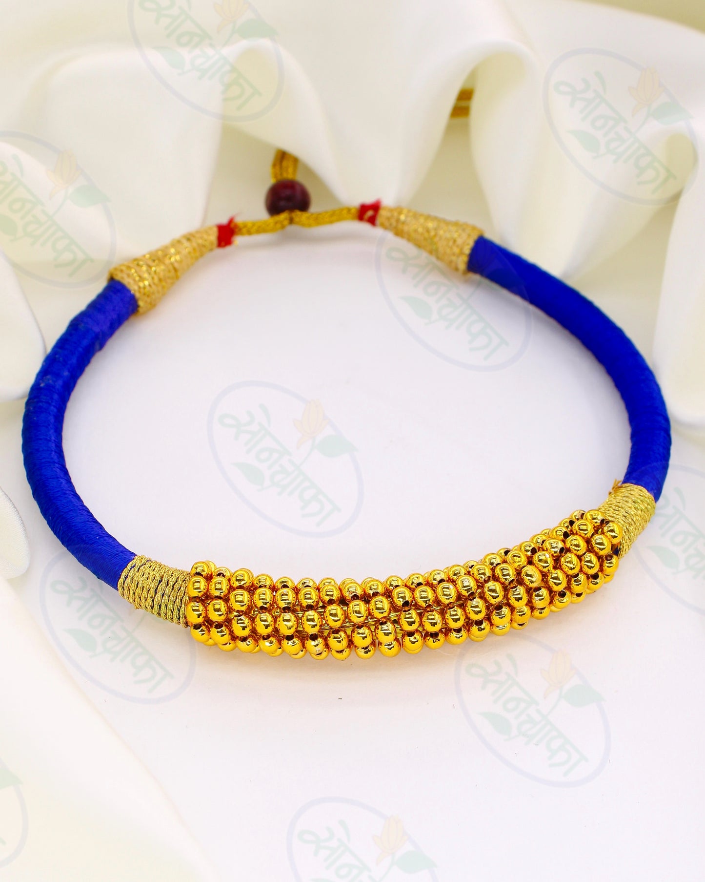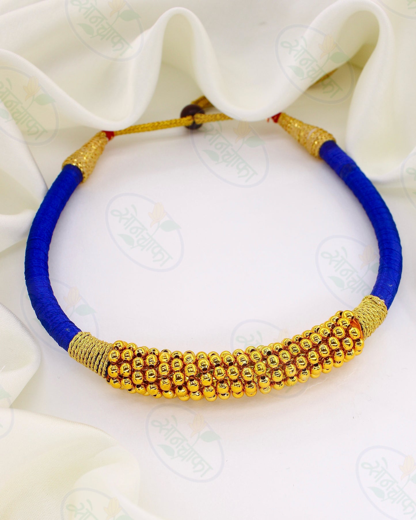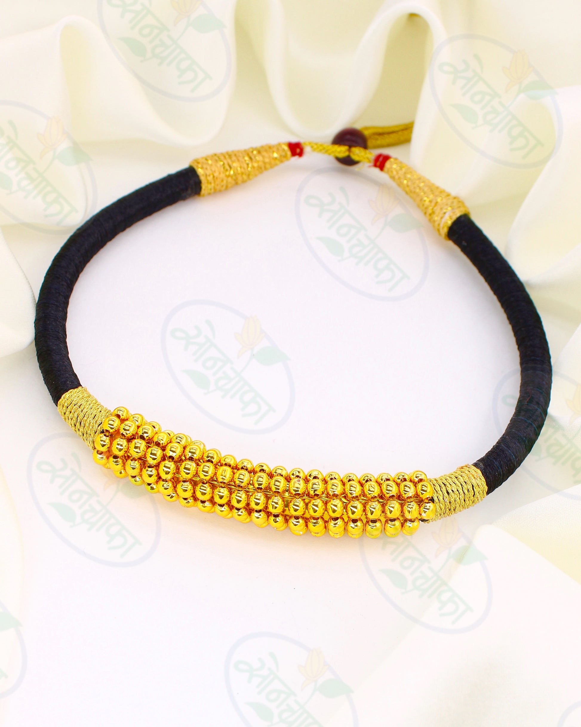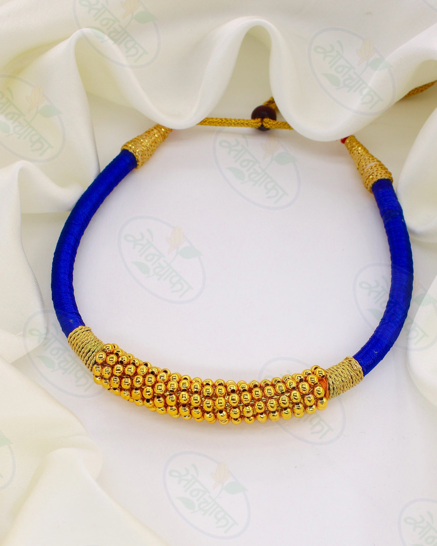 Adorn your neckline with this traditional look beautiful golden finish thushi which is perfect blend of class and elegance. Chandrakor pendant of this thushi is woven into pink, green stone along with golden beads. This designer golden finish necklace will fetch you lots of compliments from onlookers for your amazing choice