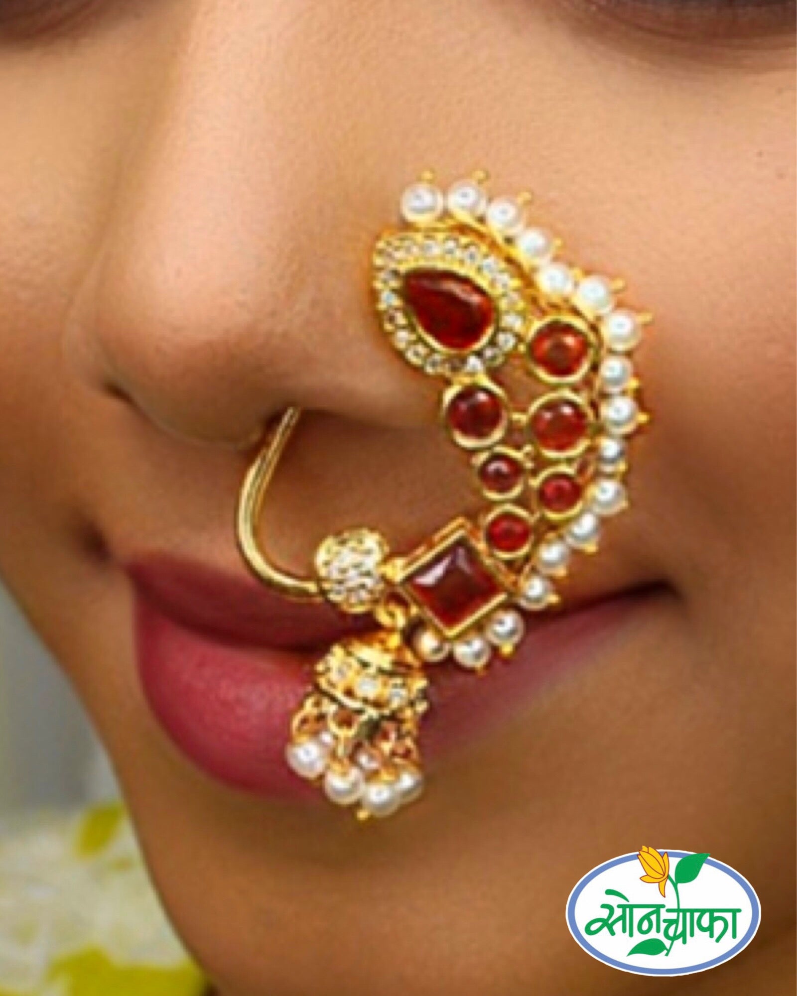 Adorn your nose with this pretty pearl nath which perfect to team with Maharashtrian outfits.