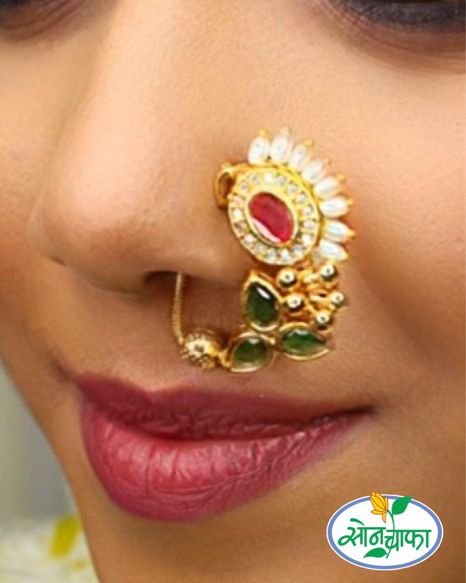 Adorn your nose with this pretty pearl nath which perfect to team with Maharashtrian outfits.