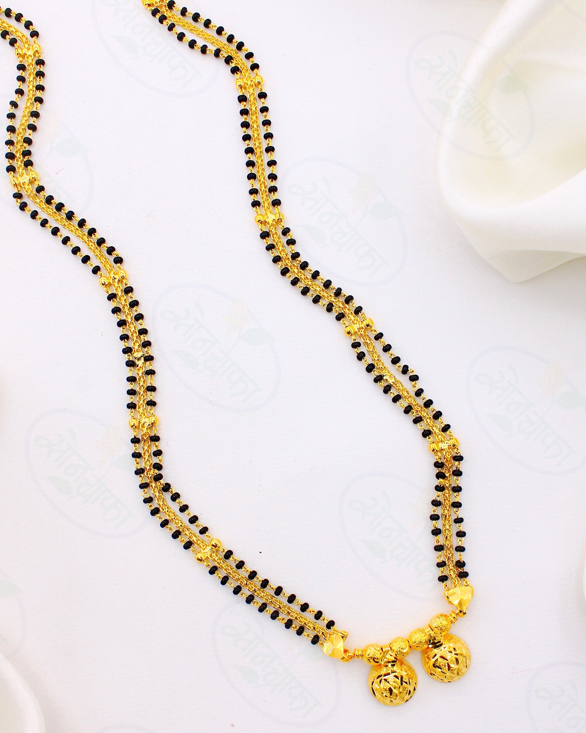 Mangalsutra defines the marital status of women and it is must have ornament for women. This 1 gram gold plated Wati Pendant Mangalsutra will be perfect pick for you. The pendant is attached to double layer golden-black beads chain and is crafted from metal.
