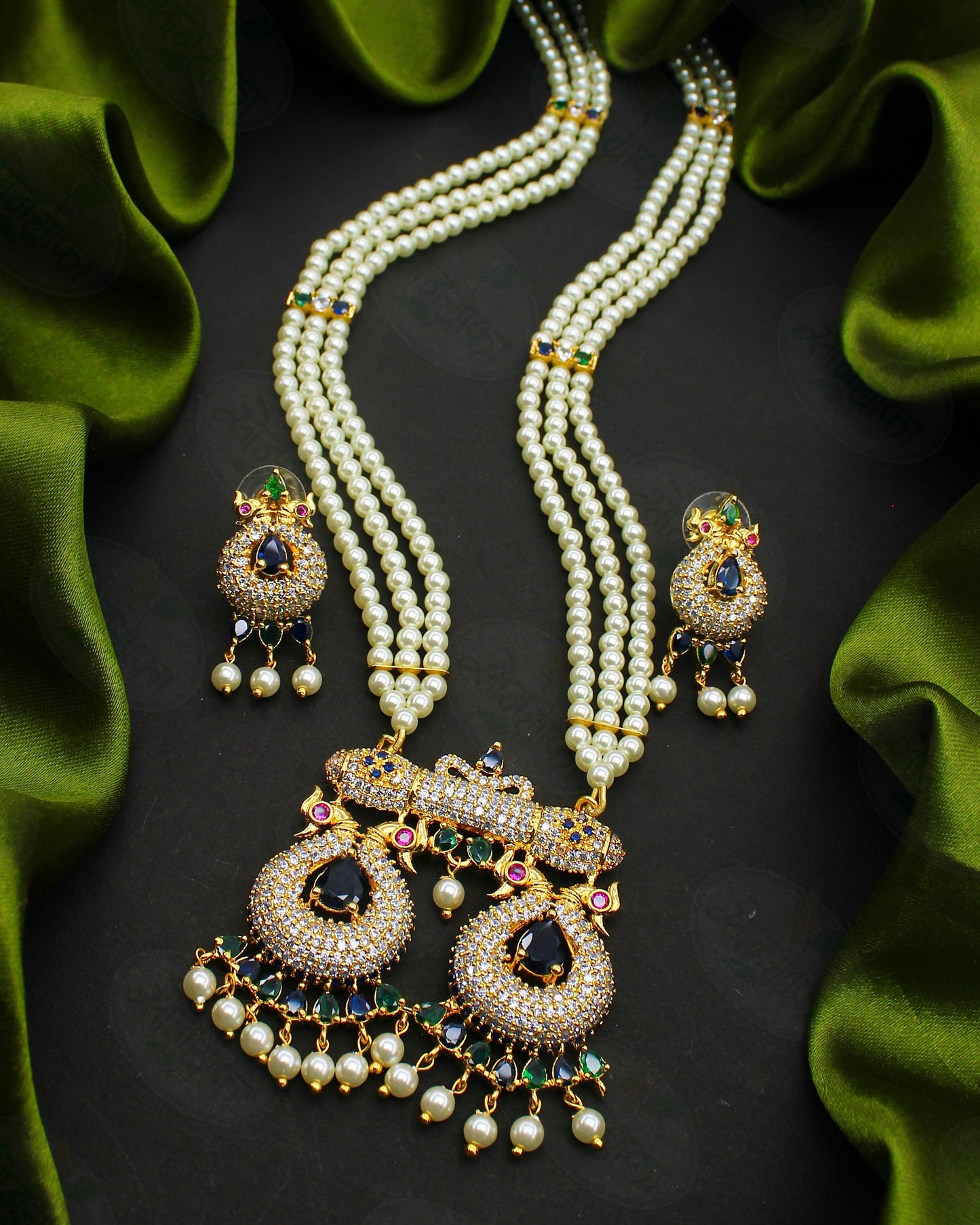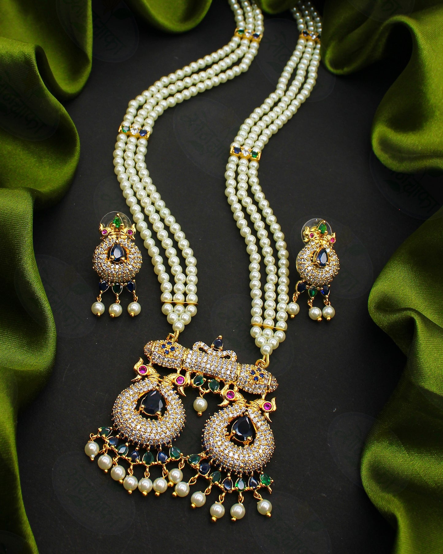 Make a beautiful addition to your jewellery collection by adding this pretty Puneri moti necklace set from Sonchafa. This set features is pink-white colour stones and white Pearl beads for your traditional outfits.