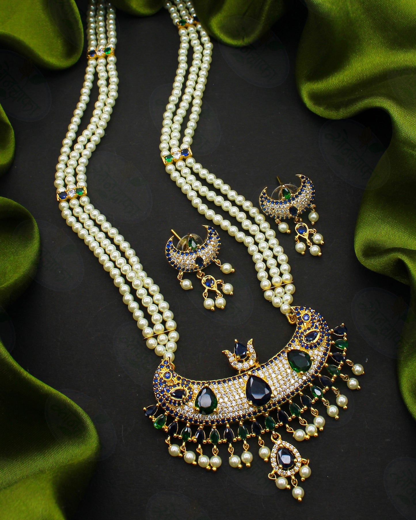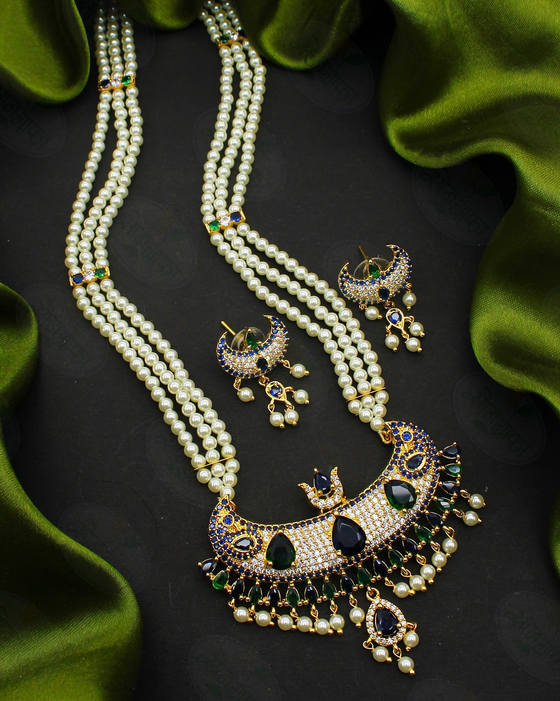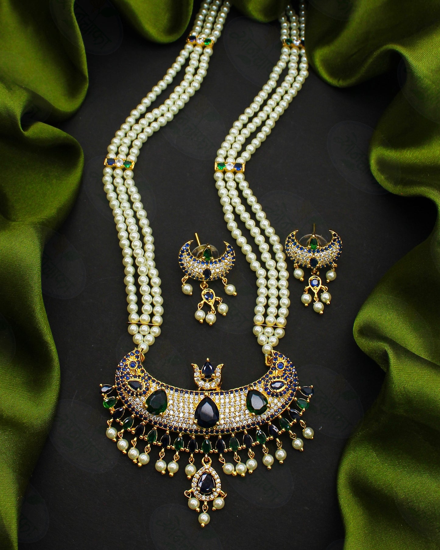 Make a beautiful addition to your jewellery collection by adding this pretty Puneri moti necklace set from Sonchafa. This set features is pink-white colour stones and white Pearl beads for your traditional outfits.
