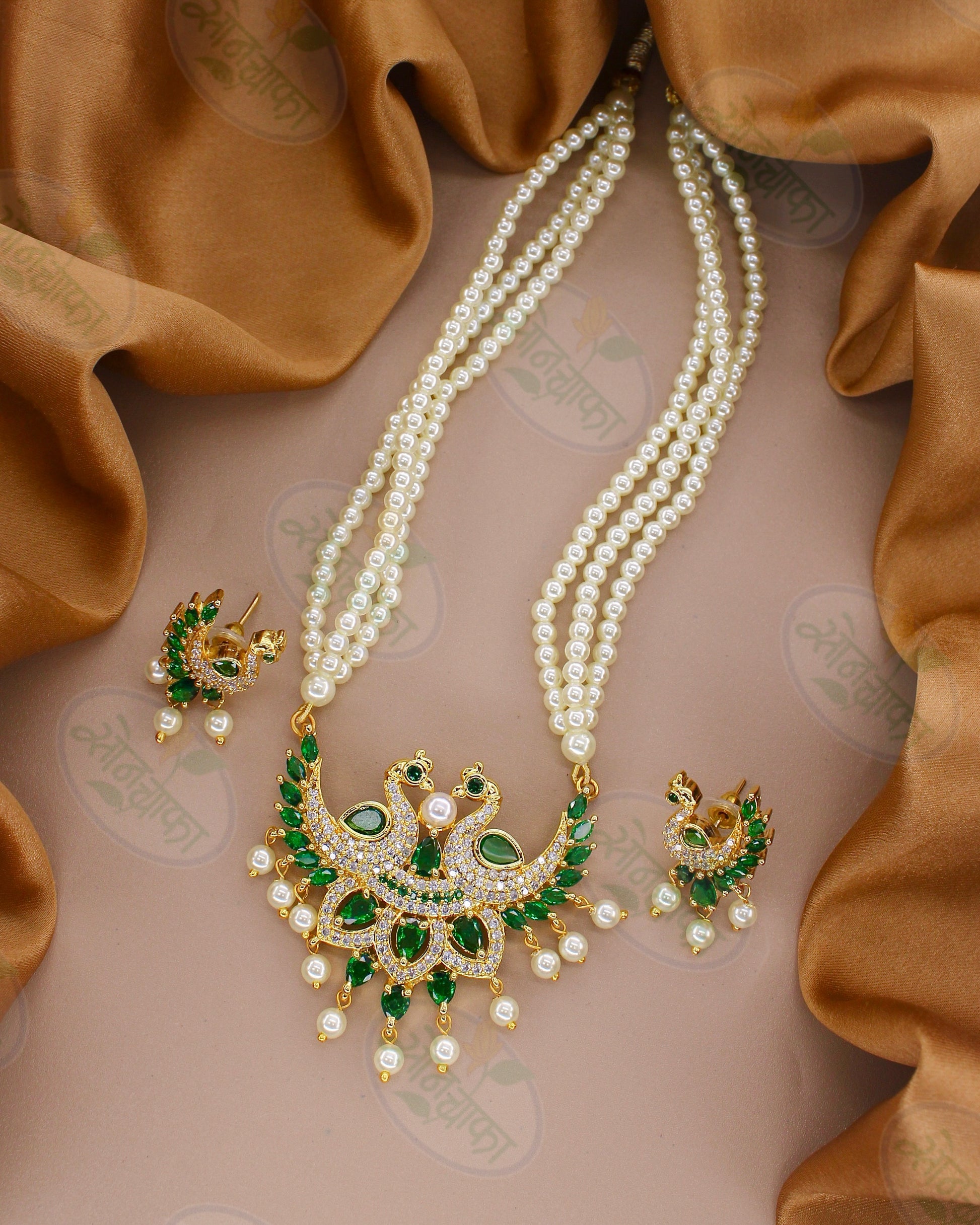Buy now Wonderful adorable floral necklace set form Sonchafa Jewellery for your trendy look. It is studded with Pink -White stone crafted with golden finish This necklace set has wonderful pearl beads droplets for more stylish look.