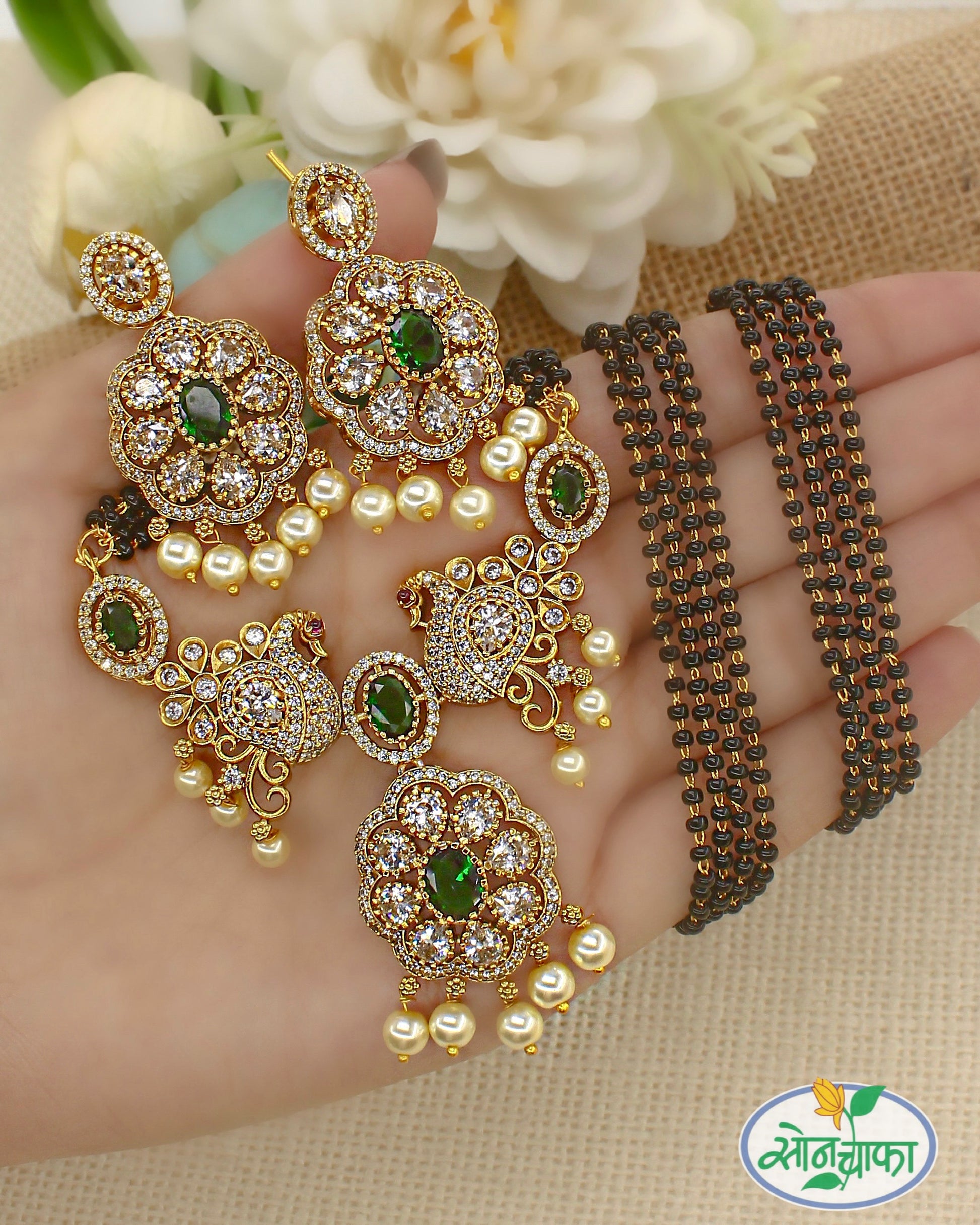 Sonchafa Jewellery presents this golden finish rajasi mangalsutra for stylish women lie you.