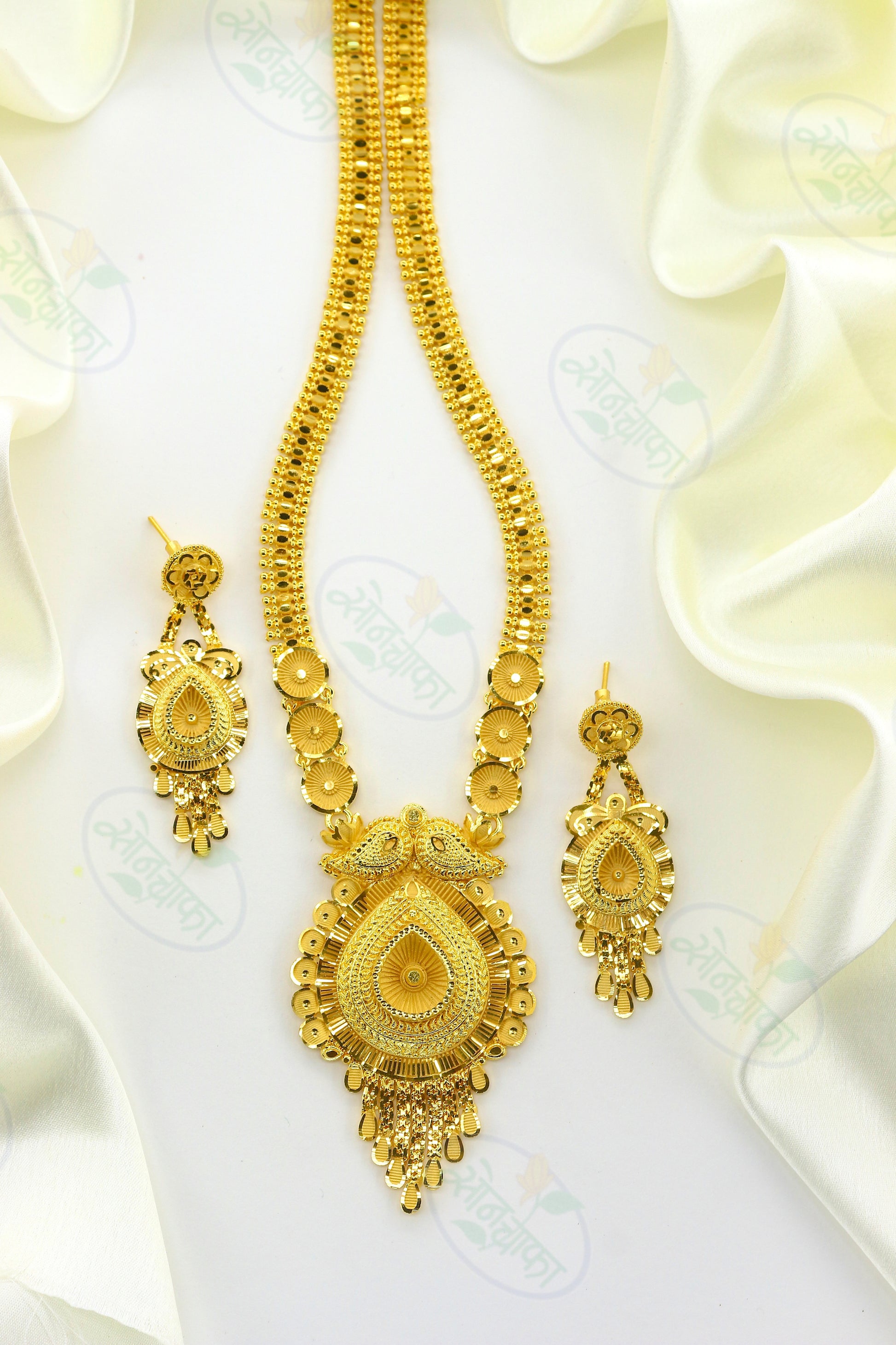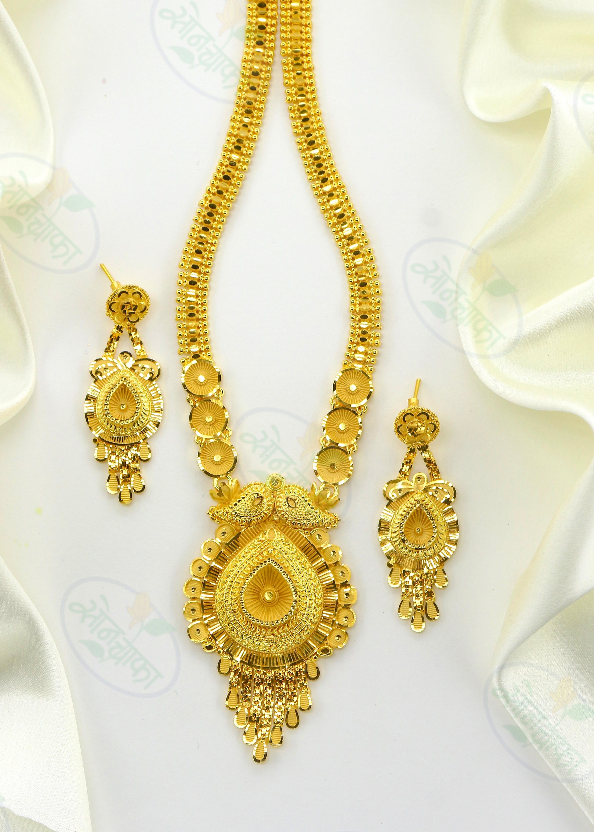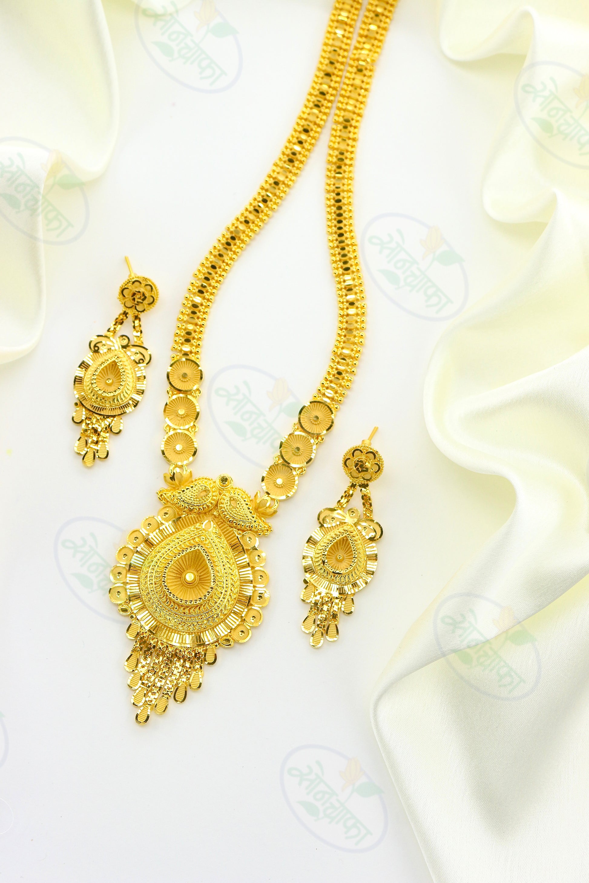 Wonderful flower inspired necklace set from Sonchafa Jewellery is something which will make you look outstanding. It is embedded with golden beads and made from 1 gram gold plated metal. This wonderful necklace has golden beads droplets for added attraction. It is superior in quality and will be your fashion companion for many years.