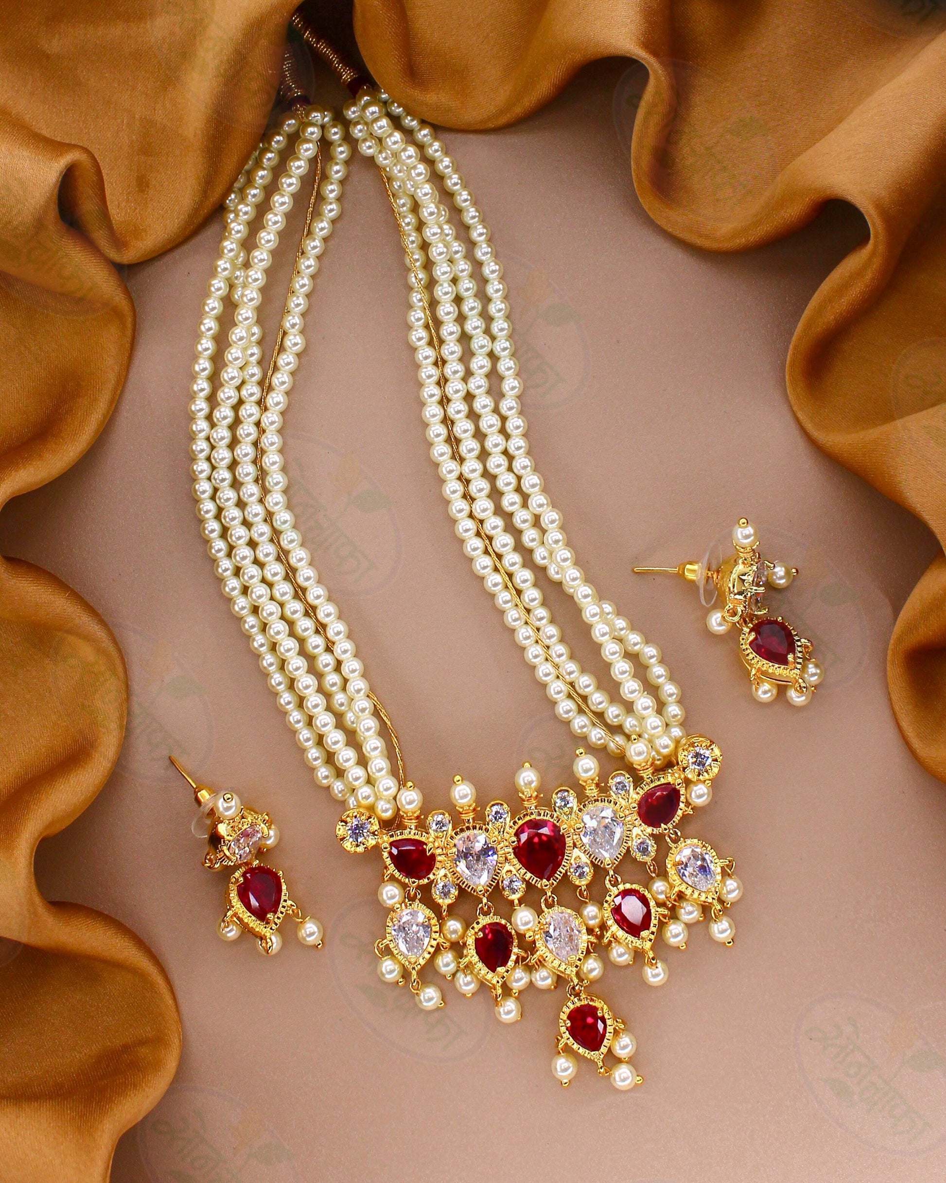Have a look at this beautiful pearl beads necklace set from Sonchafa Jewellery which is perfect combination of class and elegance. It is studded and feature flawless work on metal surface. This necklace is woven with decorative beads along with pearl beads.