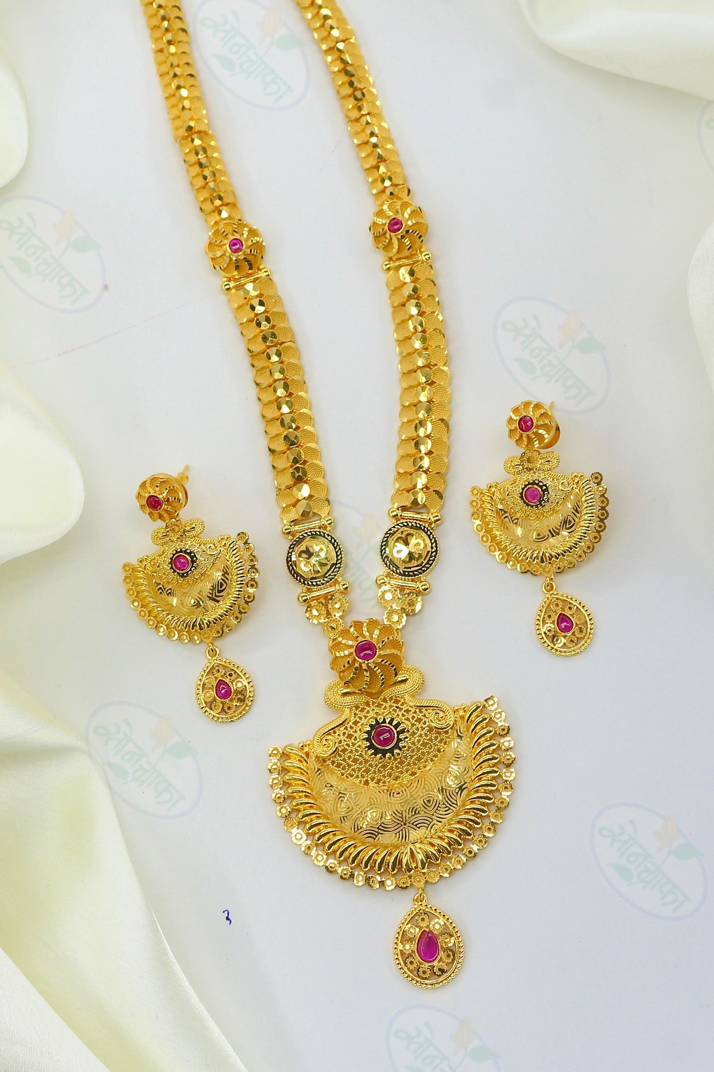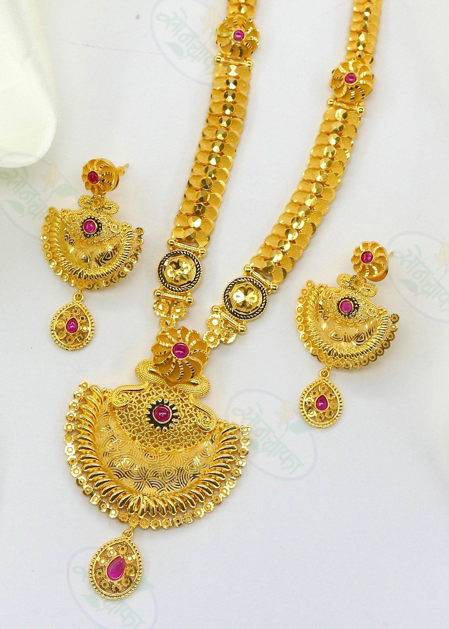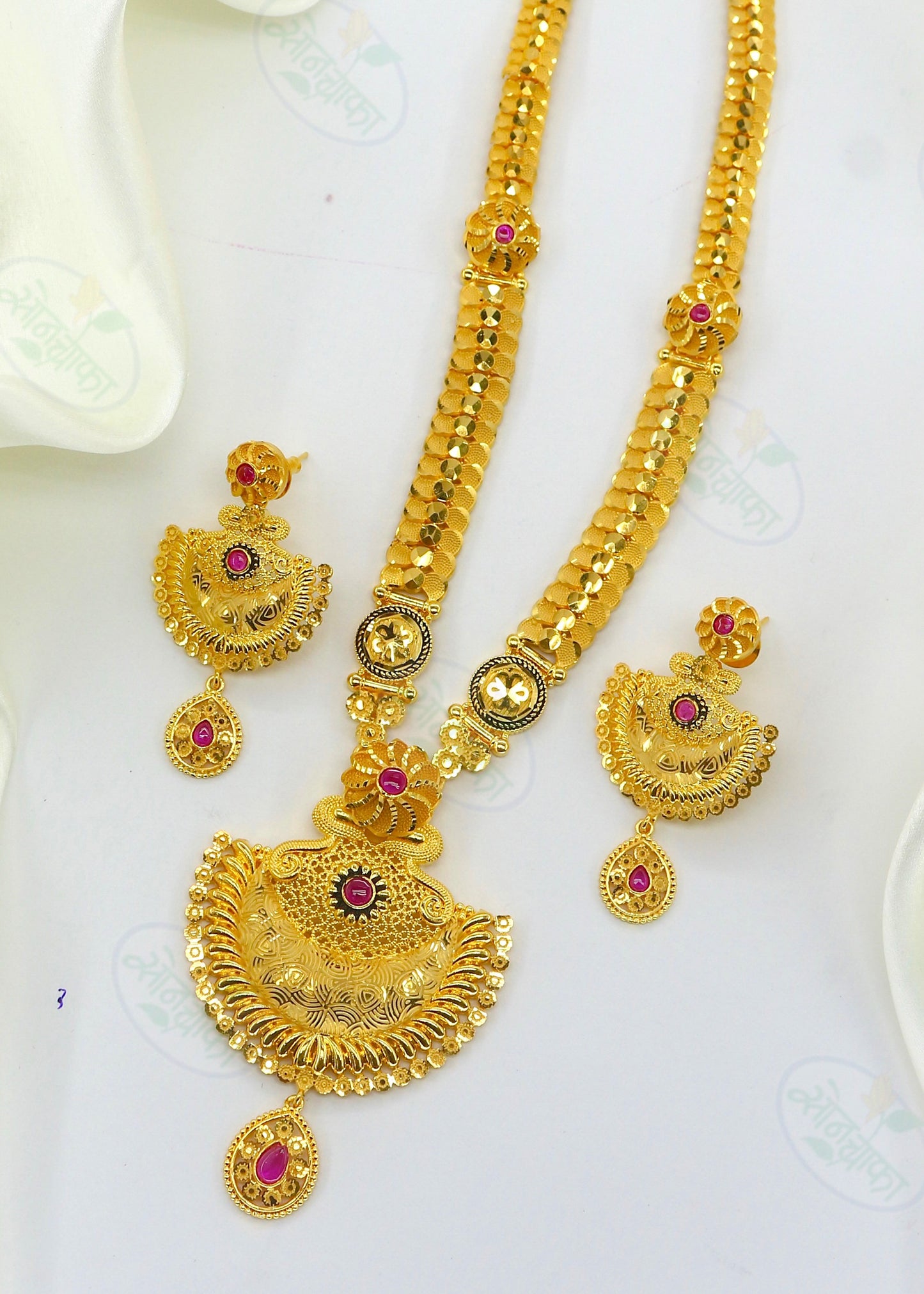 Sonchafa Jewellery offers this Splendid necklace set for stylish women like you. This necklace will surely give you attractive look. In addition it has beautiful earrings. It is long lasting and good in quality.