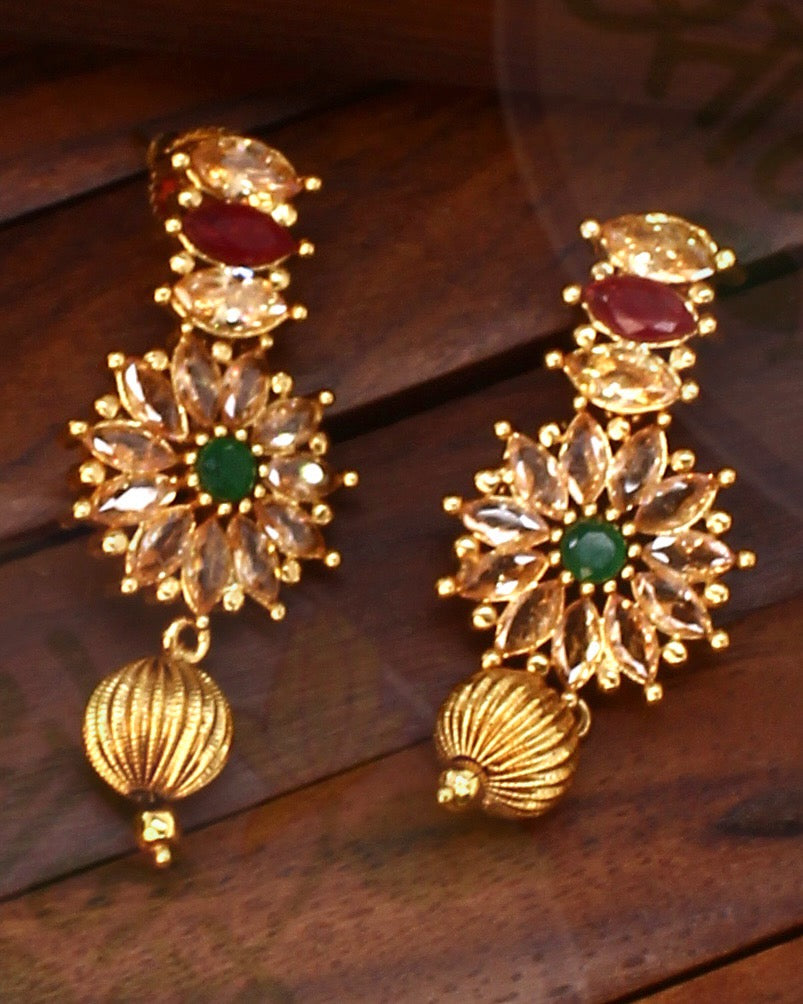 Sonchafa Jewellery offer this pink-green combination designer royal look necklace set. It is encrusted with pink, green stone along with pista beads. It has pearl beaded strings. This necklace set is superior in quality and will be your fashion companion for many years.