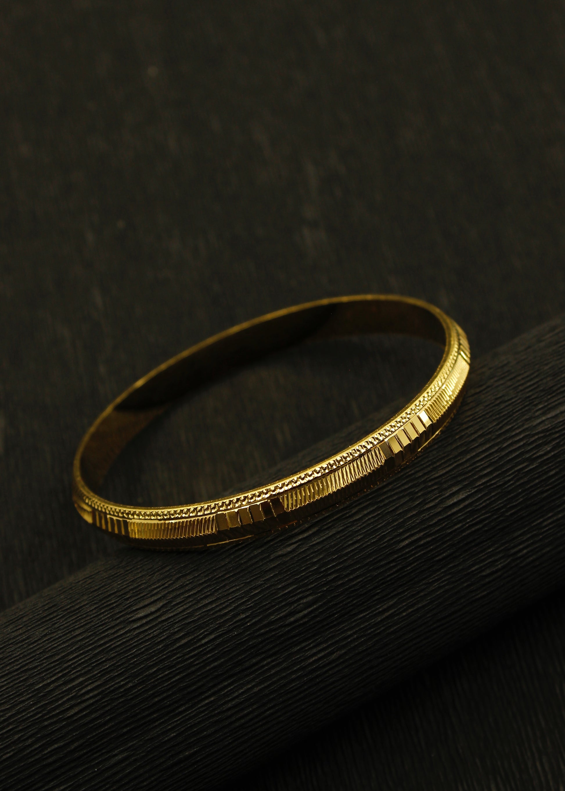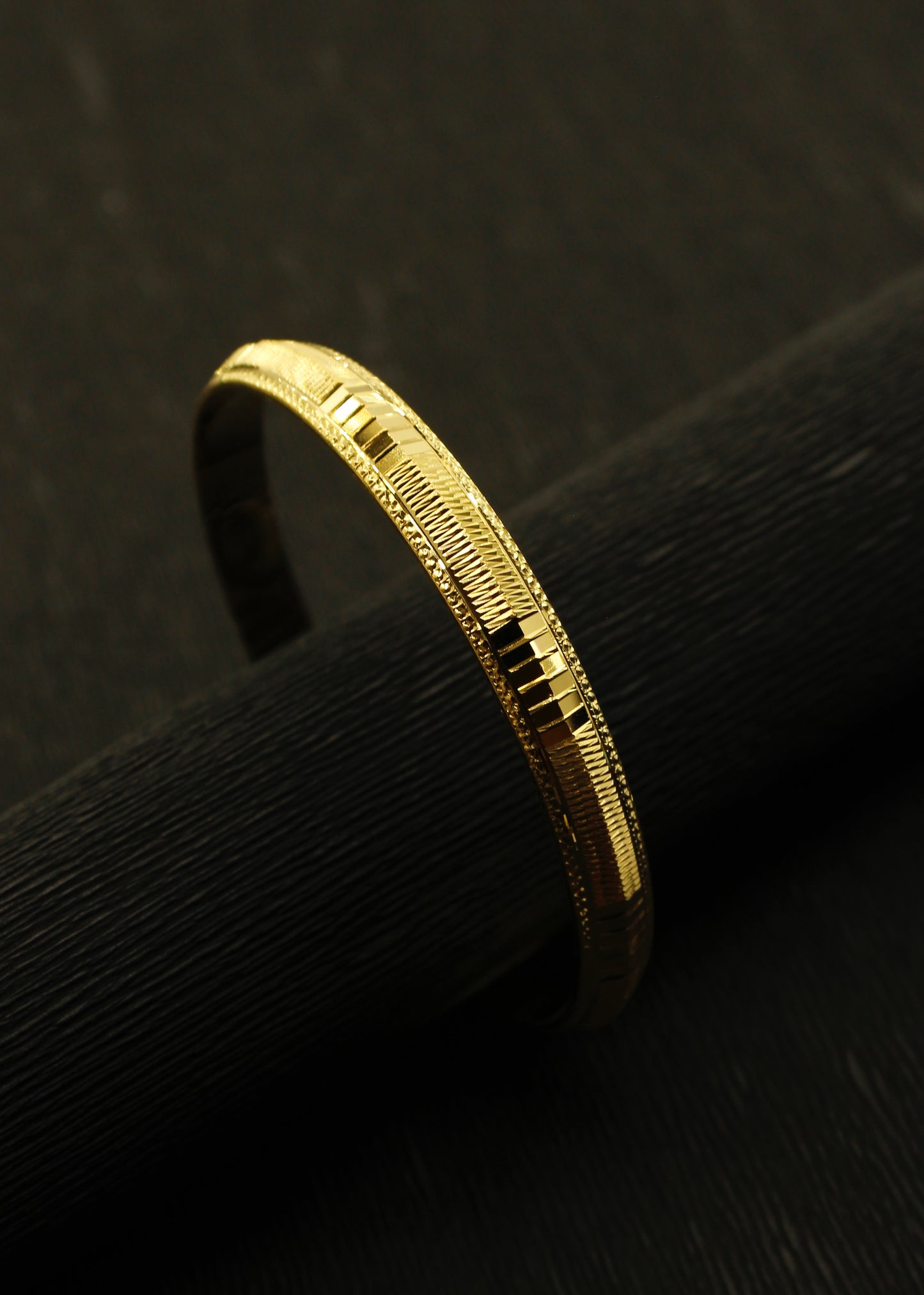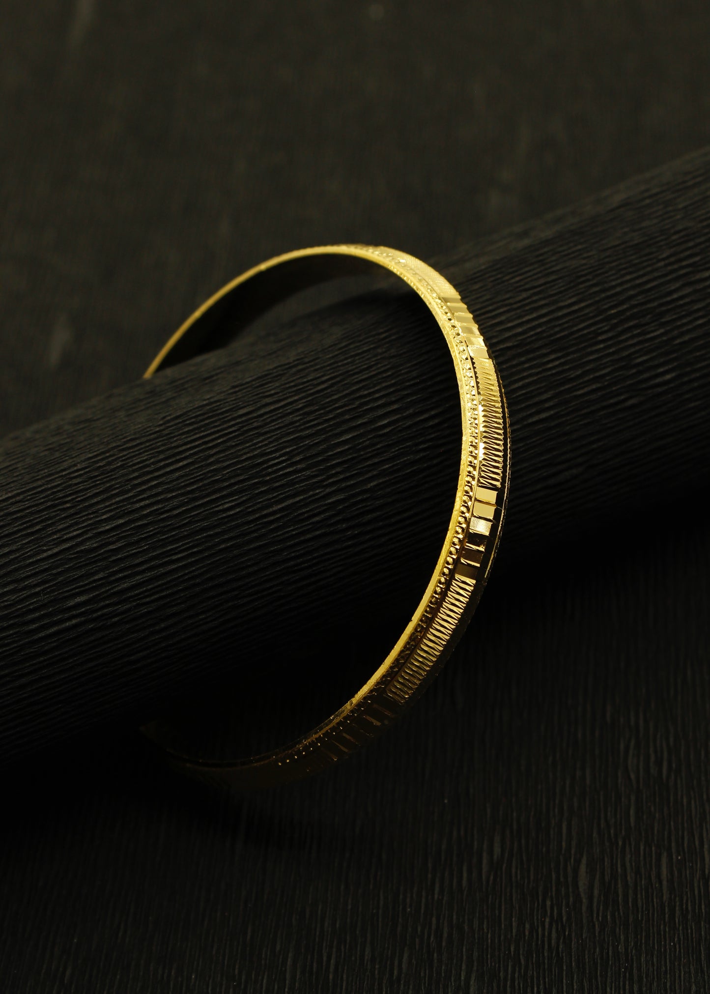 Beautifully designed gold plated Punjabi kada from Sonchafa Jewellery will blow your heart at very first look. This kada shows attractive design on golden metal surface. It is superior in quality and will retain its shine for years to come.