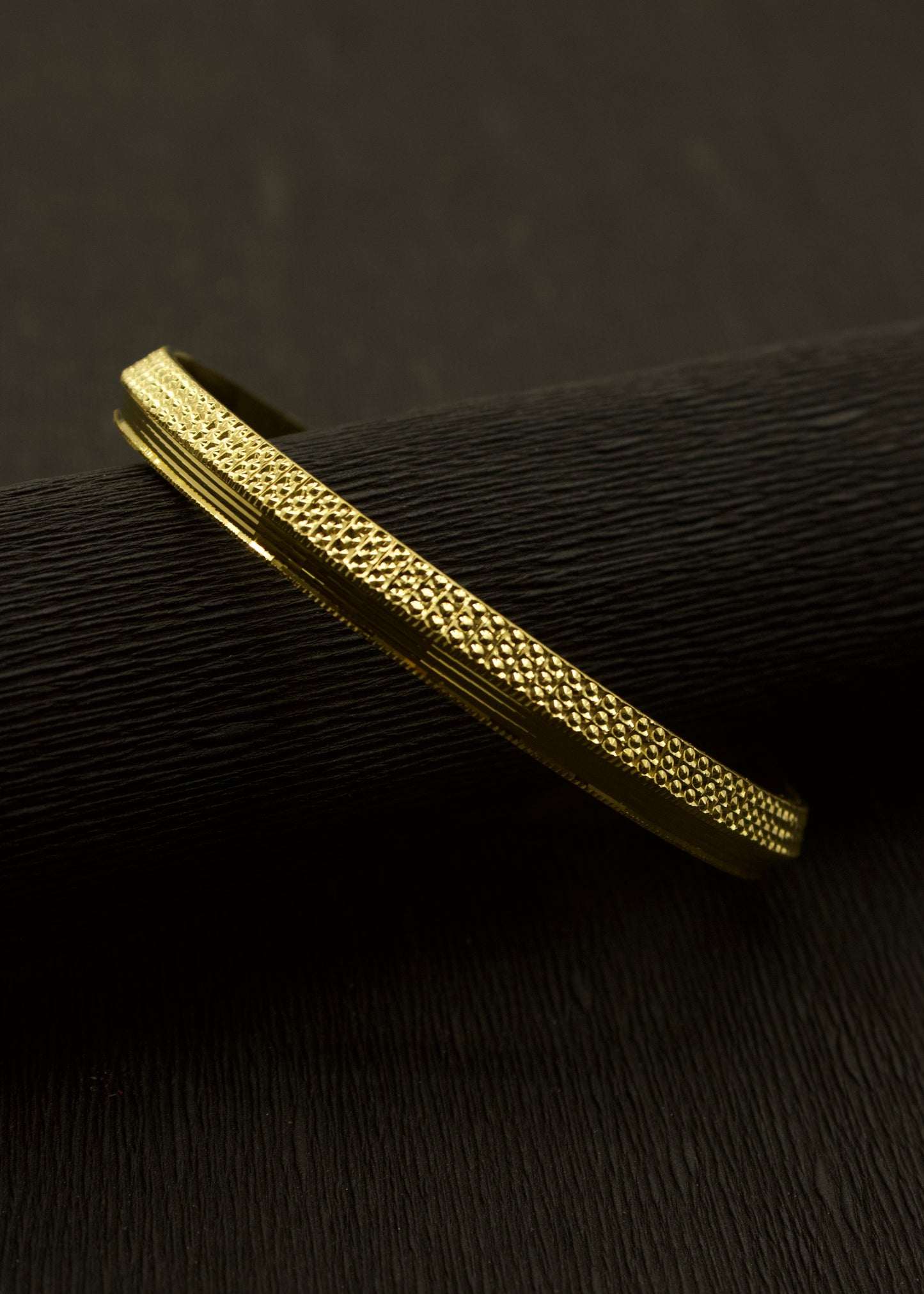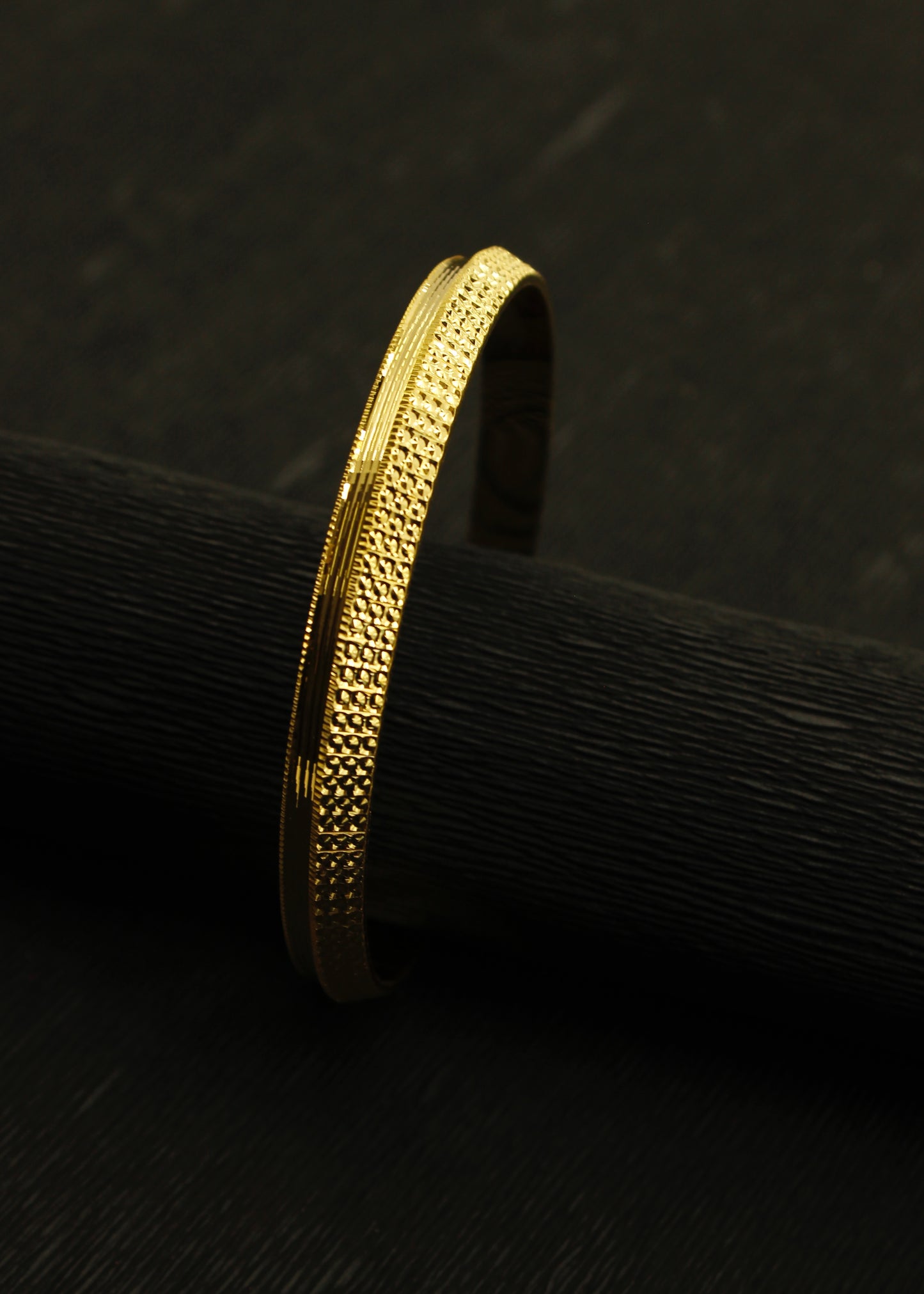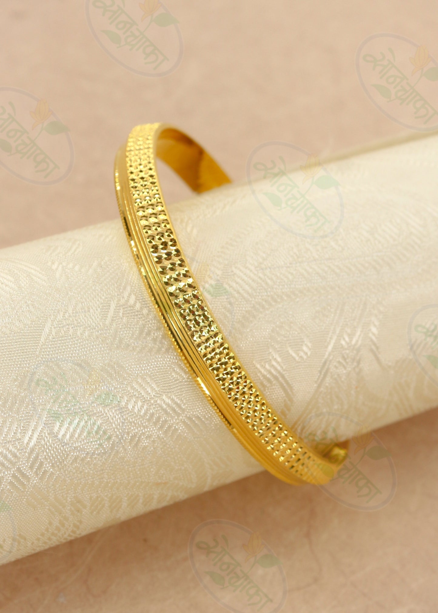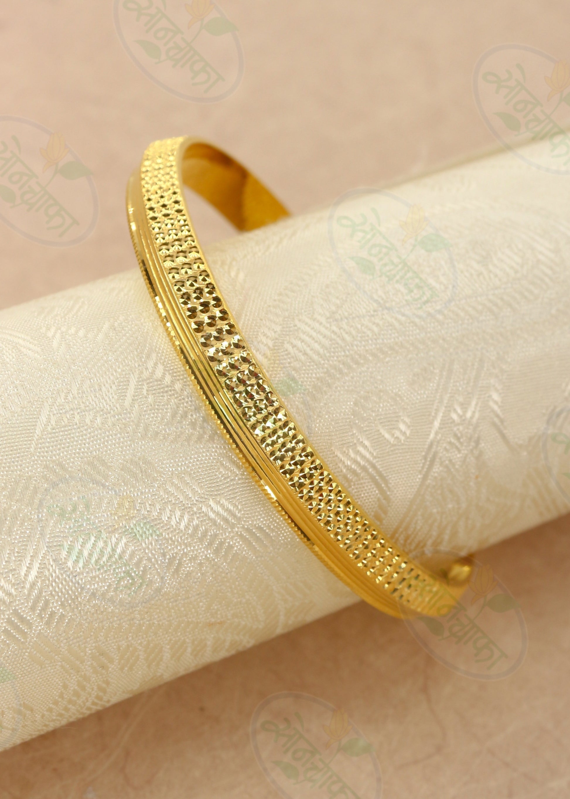 Adorn this attractive designer 1 Gram Gold plated Punjabi kada for men's with your casual outfits for a truly classic look. This beautiful kada from Sonchafa Jewellery is crafted from highly durable 1 gram gold plated metal. It is skin-friendly and long lasting.