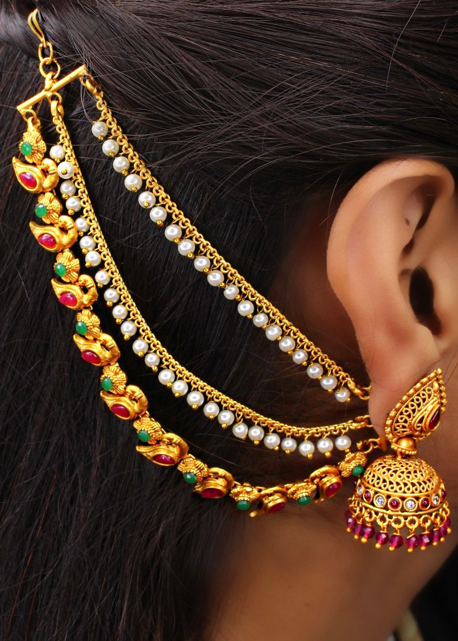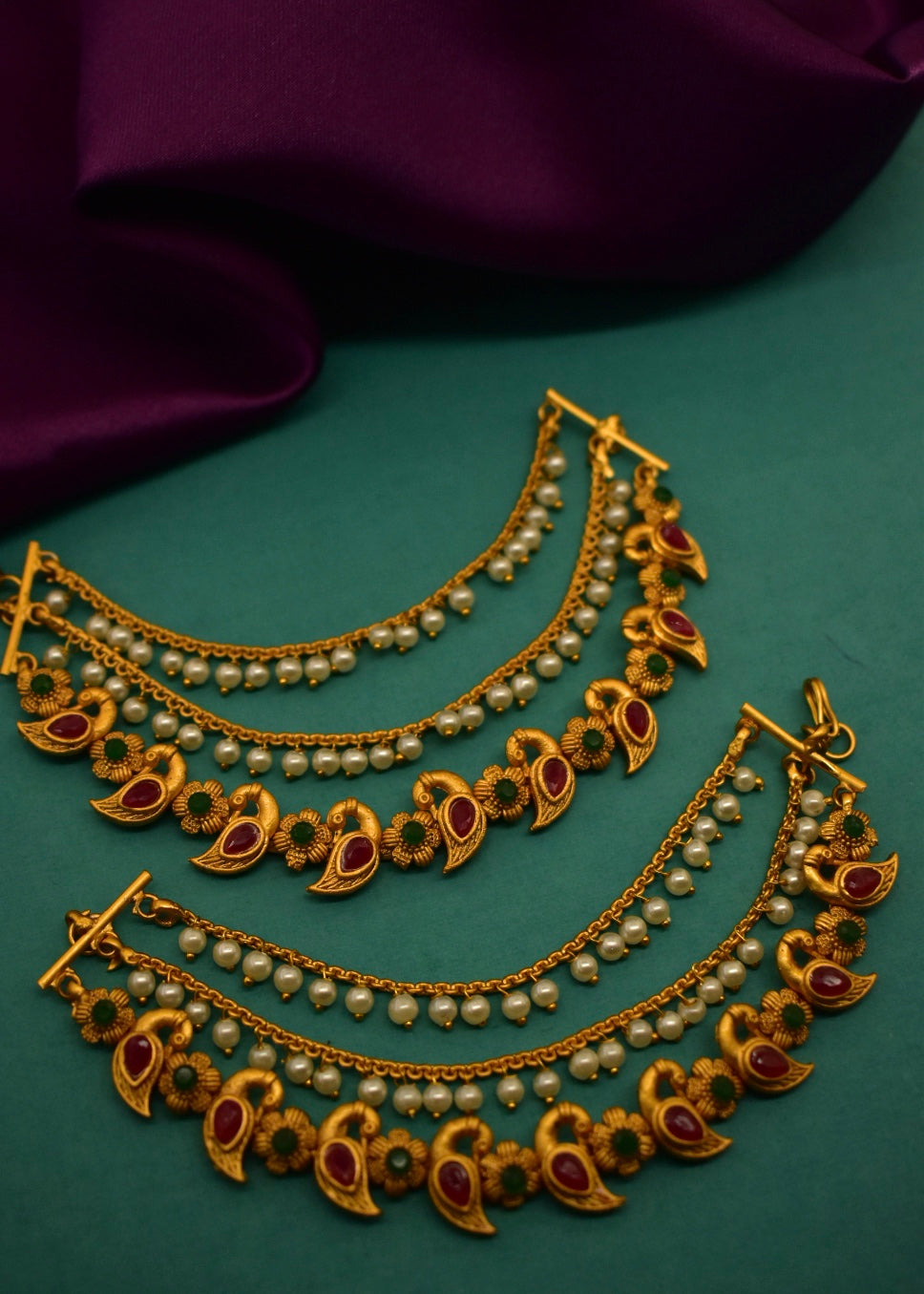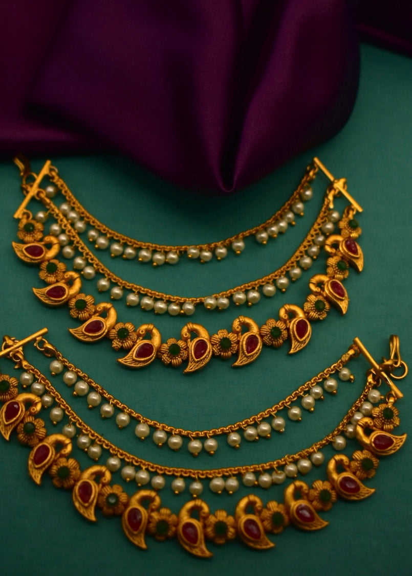 This Festival occasion Sonchafa Jewellery brings to you this pair of three layers of adorable kanchain in stylish look for pretty woman. They have pearl bead droplets for added attraction. These kanchain are superior in quality and will be your fashion companion for many years.