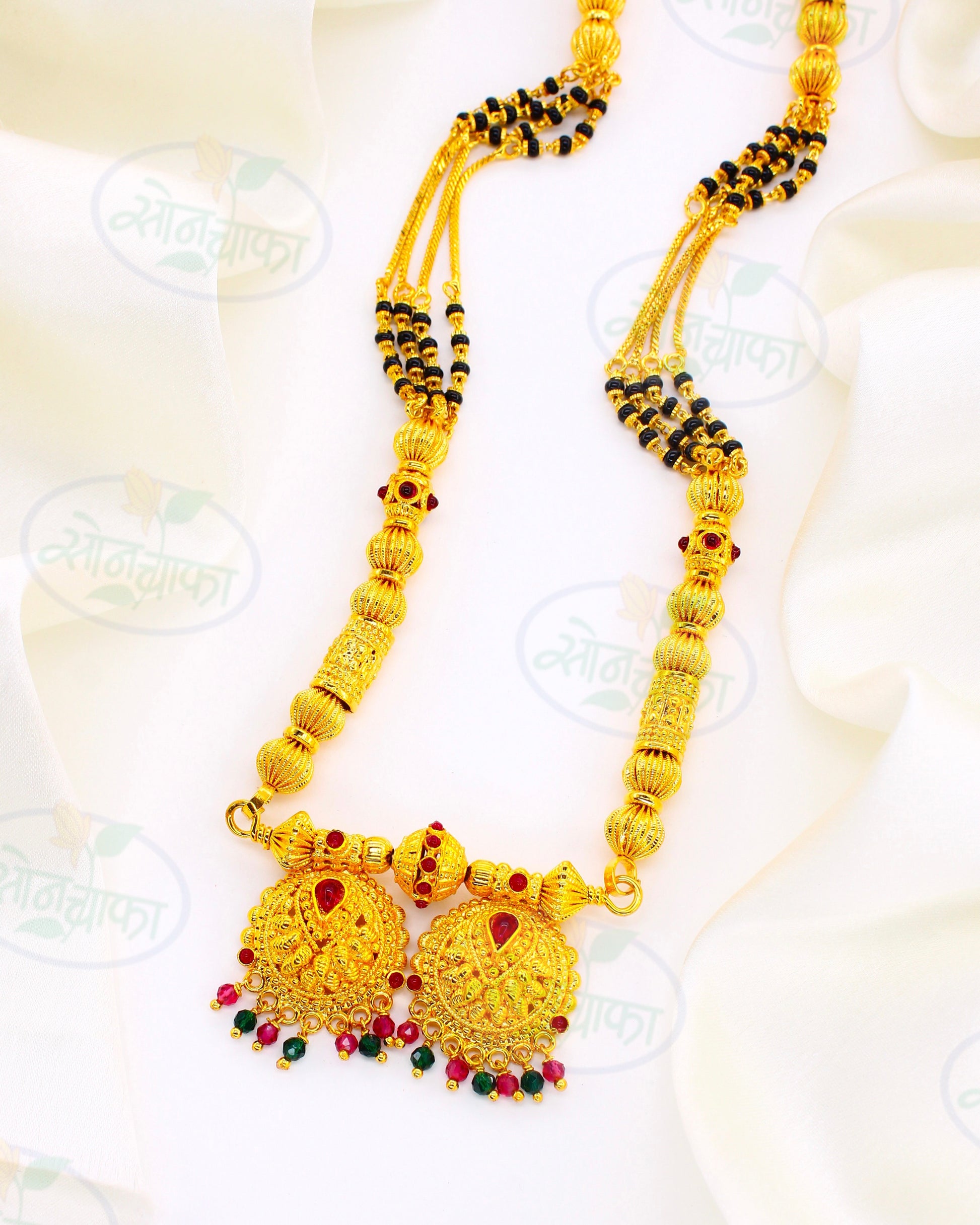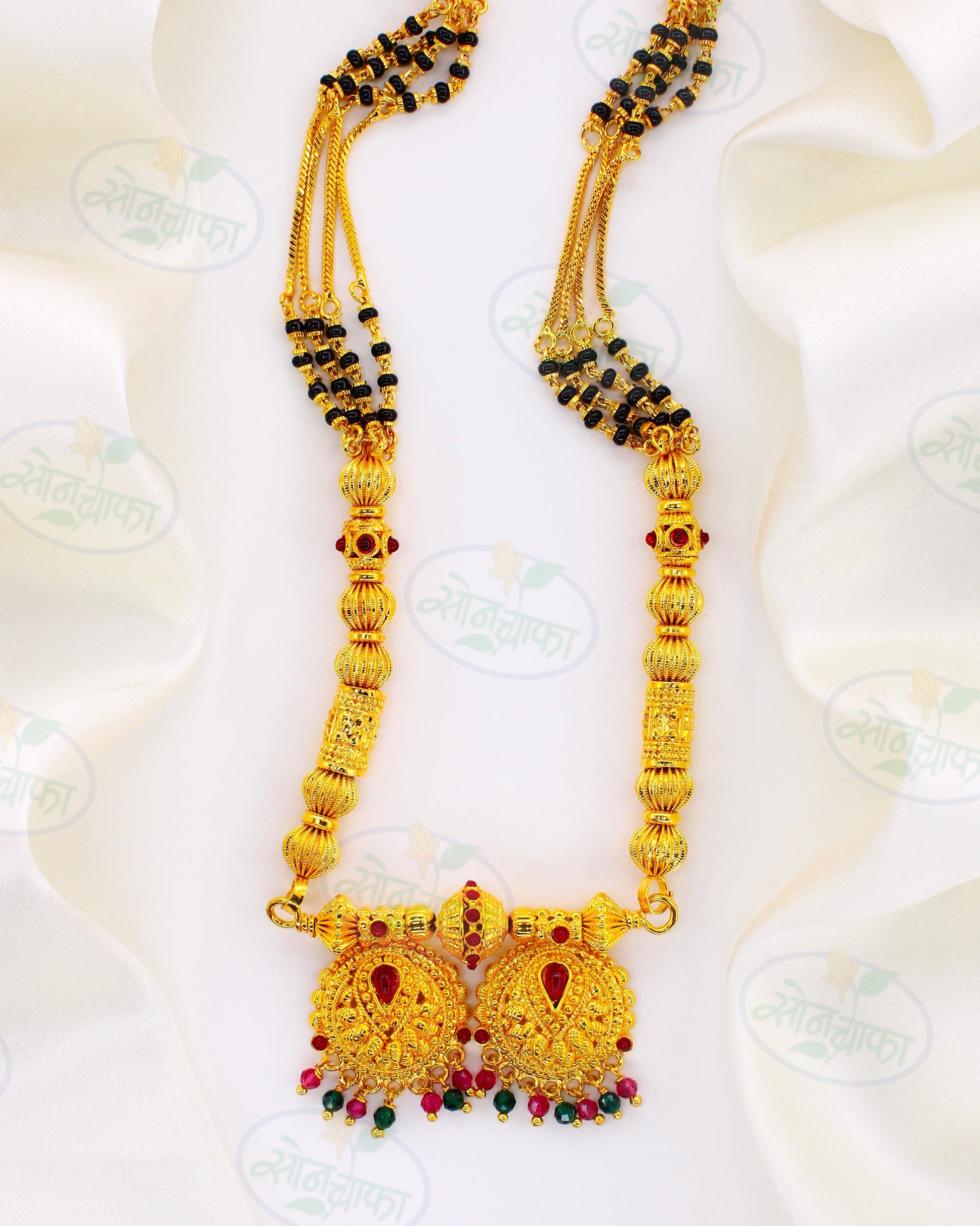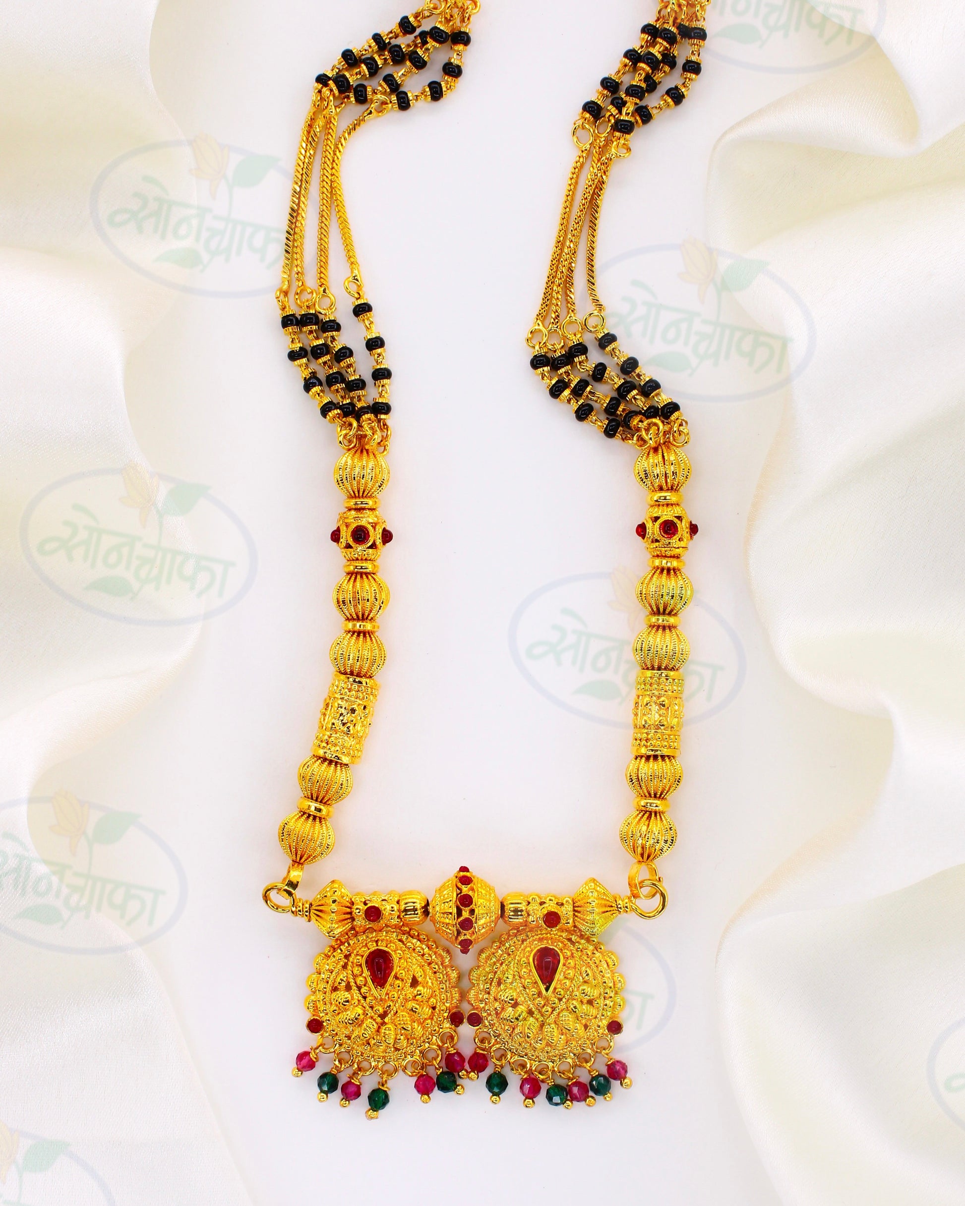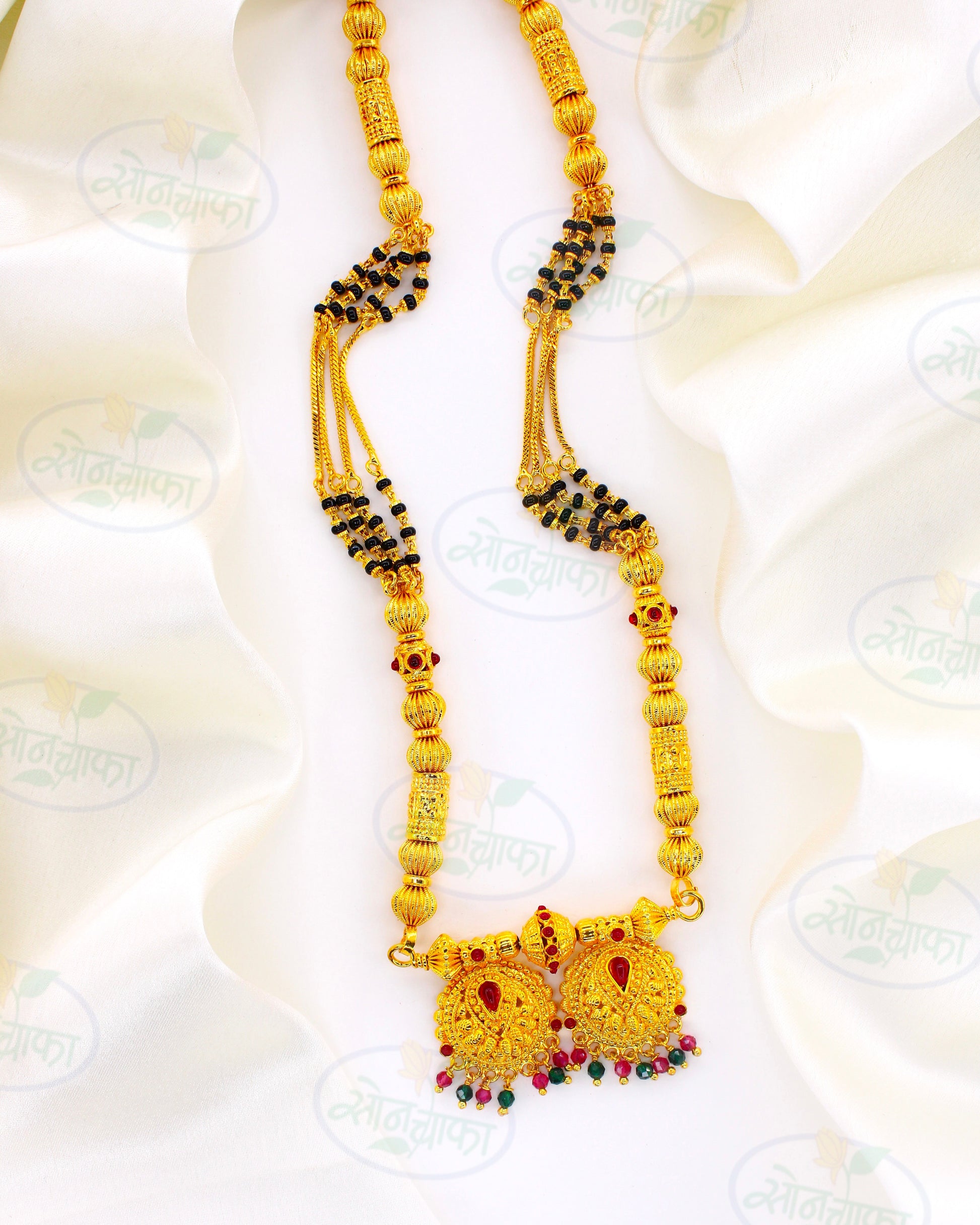 Fancy Matte gold finish mangalsutra online for women by Sonchafa Jewellery. This mangalsutra made up of superior quality of metal which ensures durability.