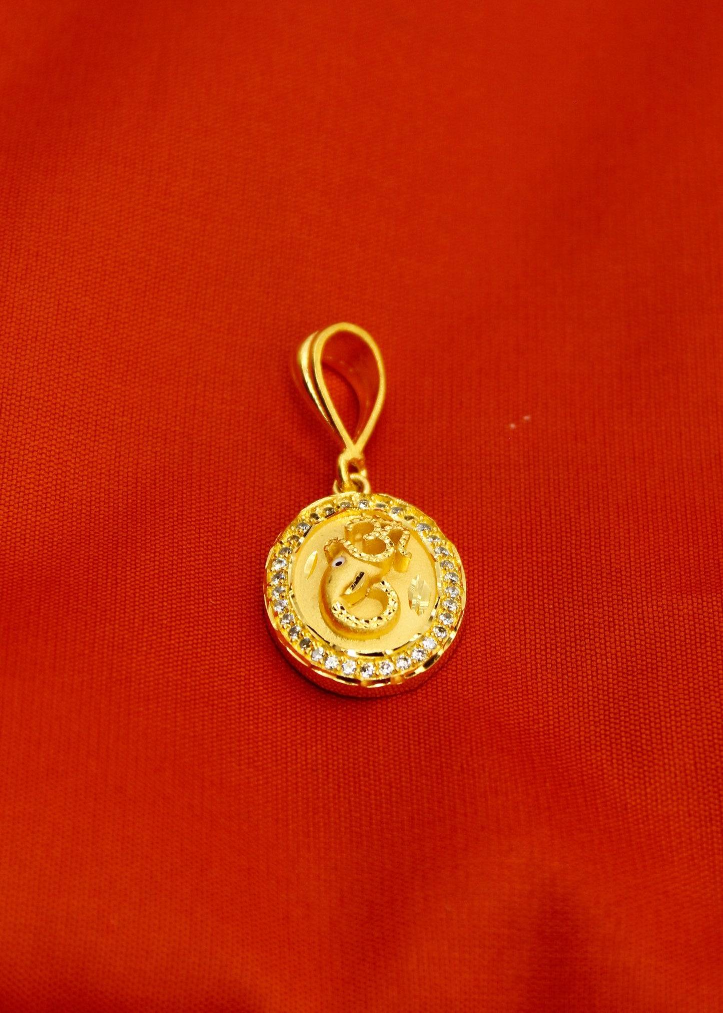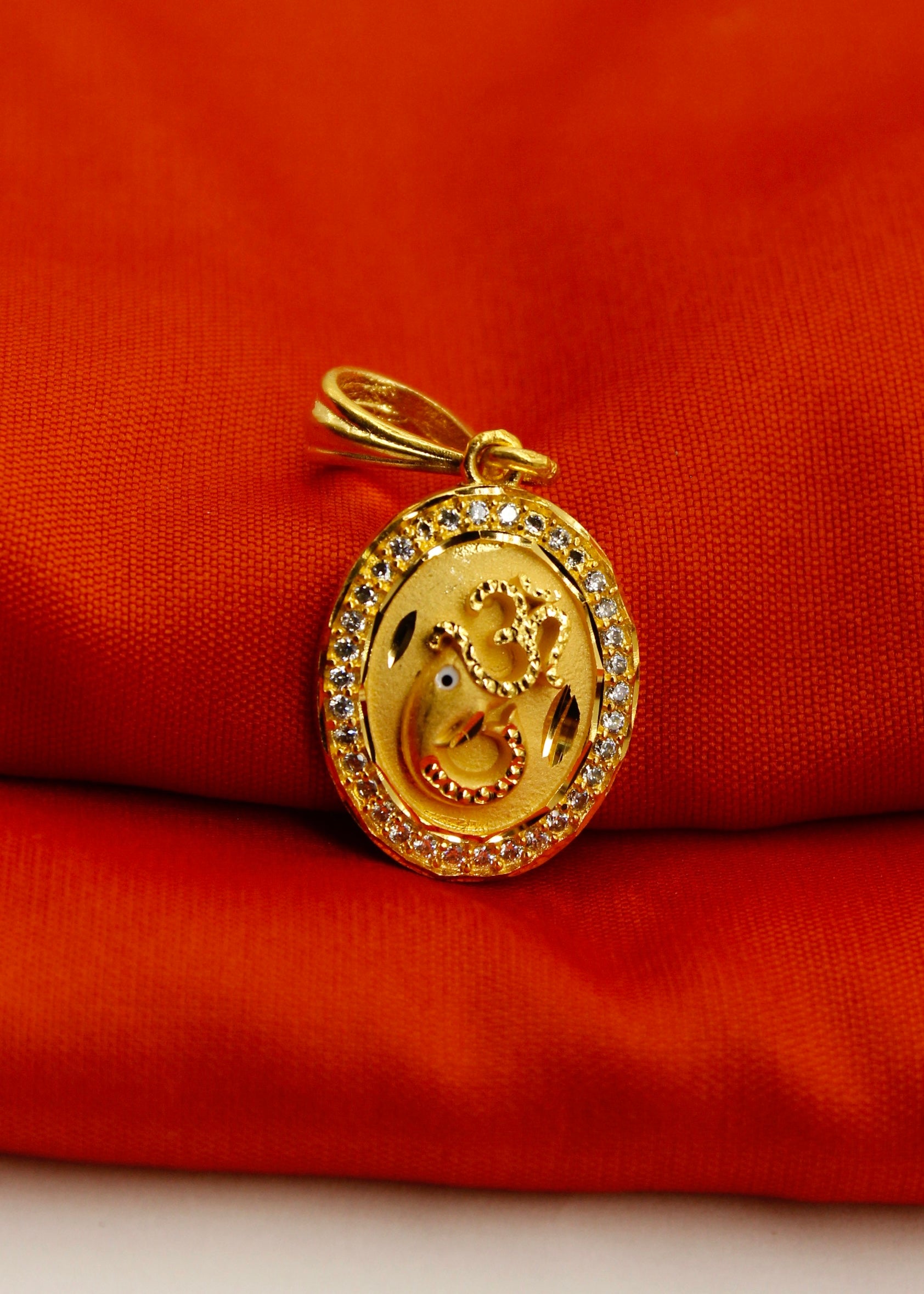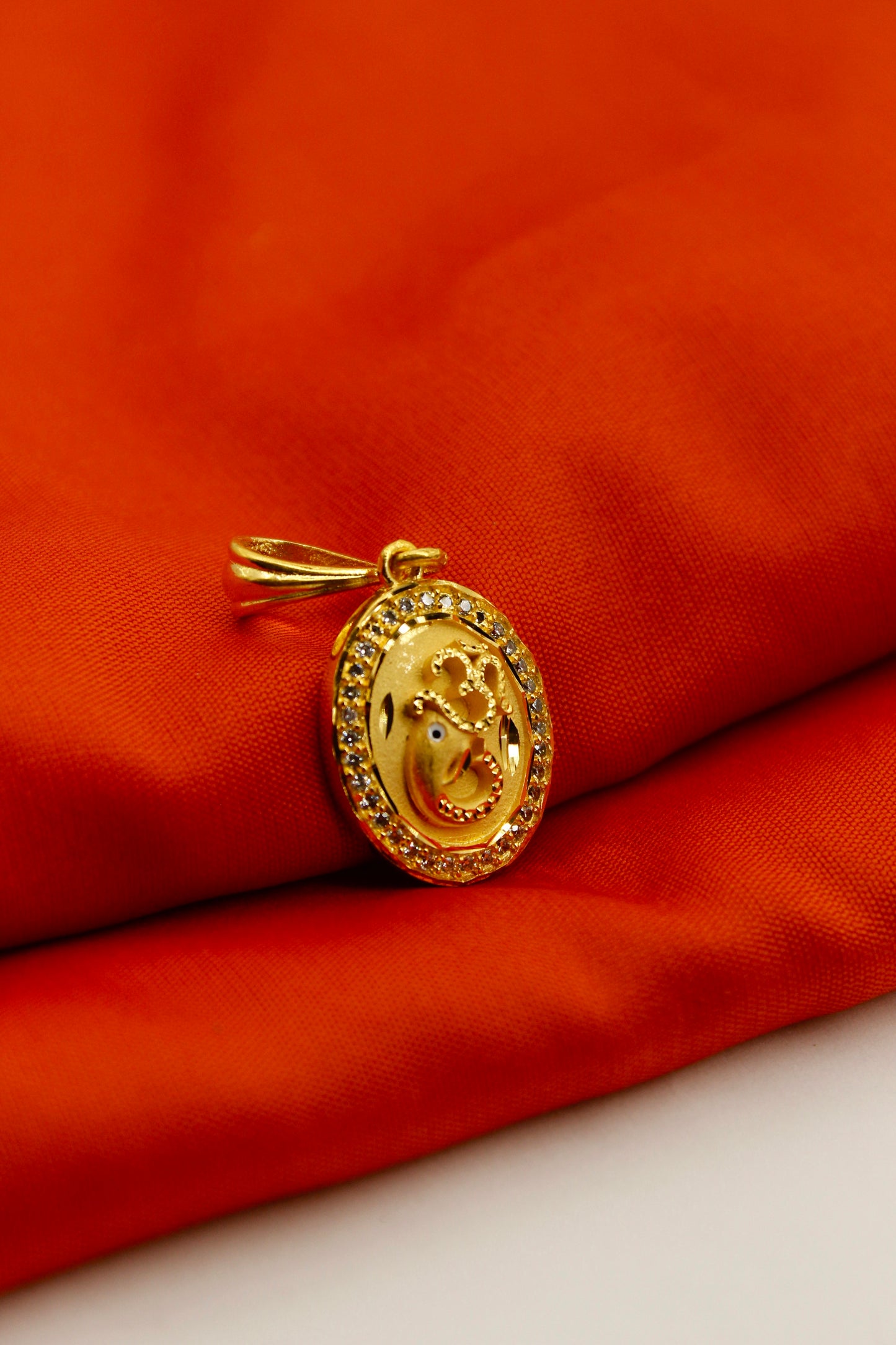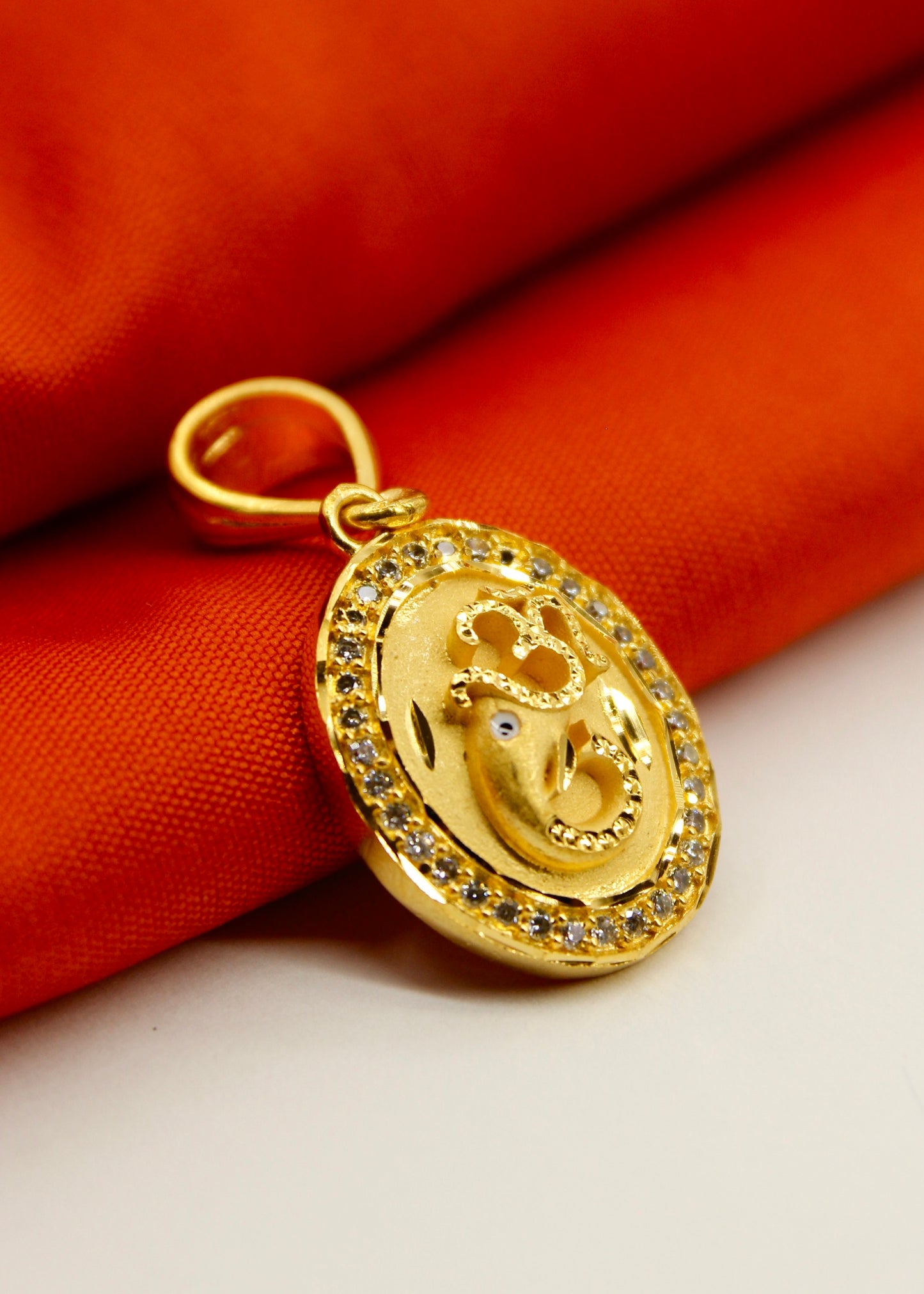 Perfectly crafted this oval shape Om designer pendant for stylish men like you from Sonchafa Jewellers. This dazzling pendant is embedded with white stone and made from 1 gram gold plated highly durable metal. This pendant is good in quality and skin-friendly.