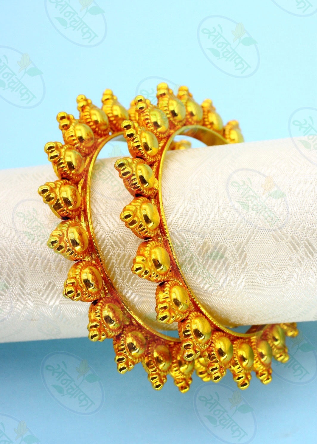 Dazzle everyone around you by clubbing this pair of matte gold finish beautiful bangles with your festive costume. These classy bangles are good in quality and skin-friendly as well.
