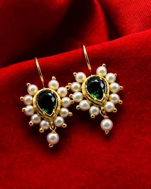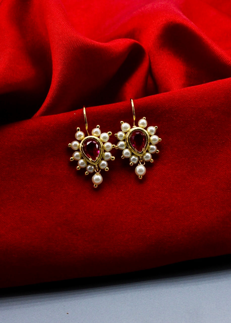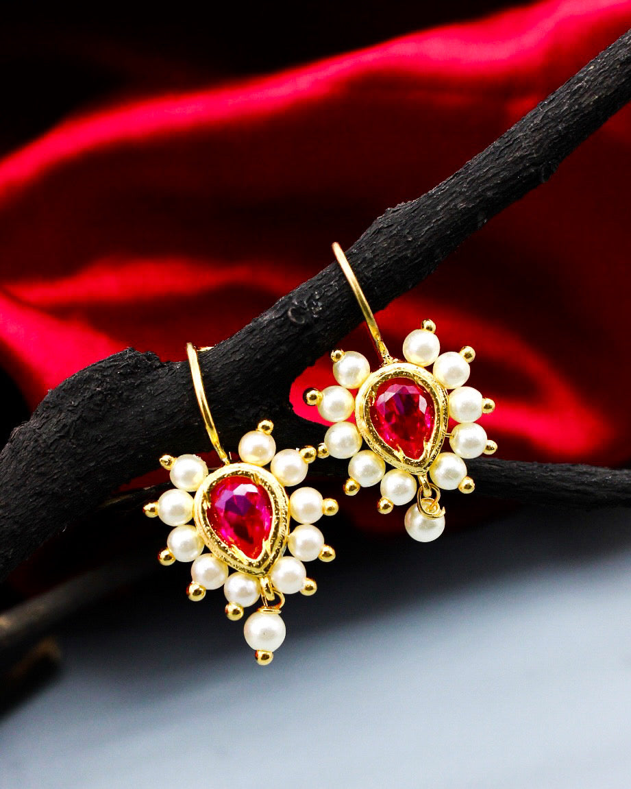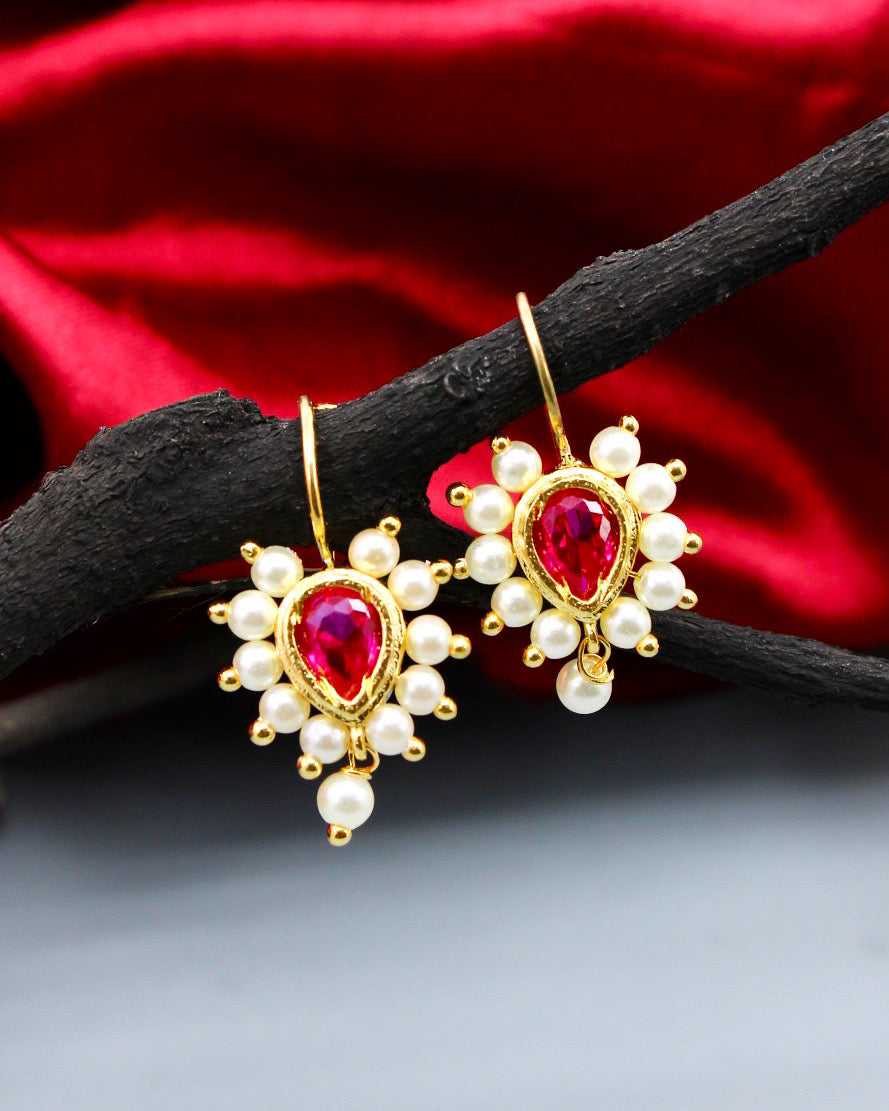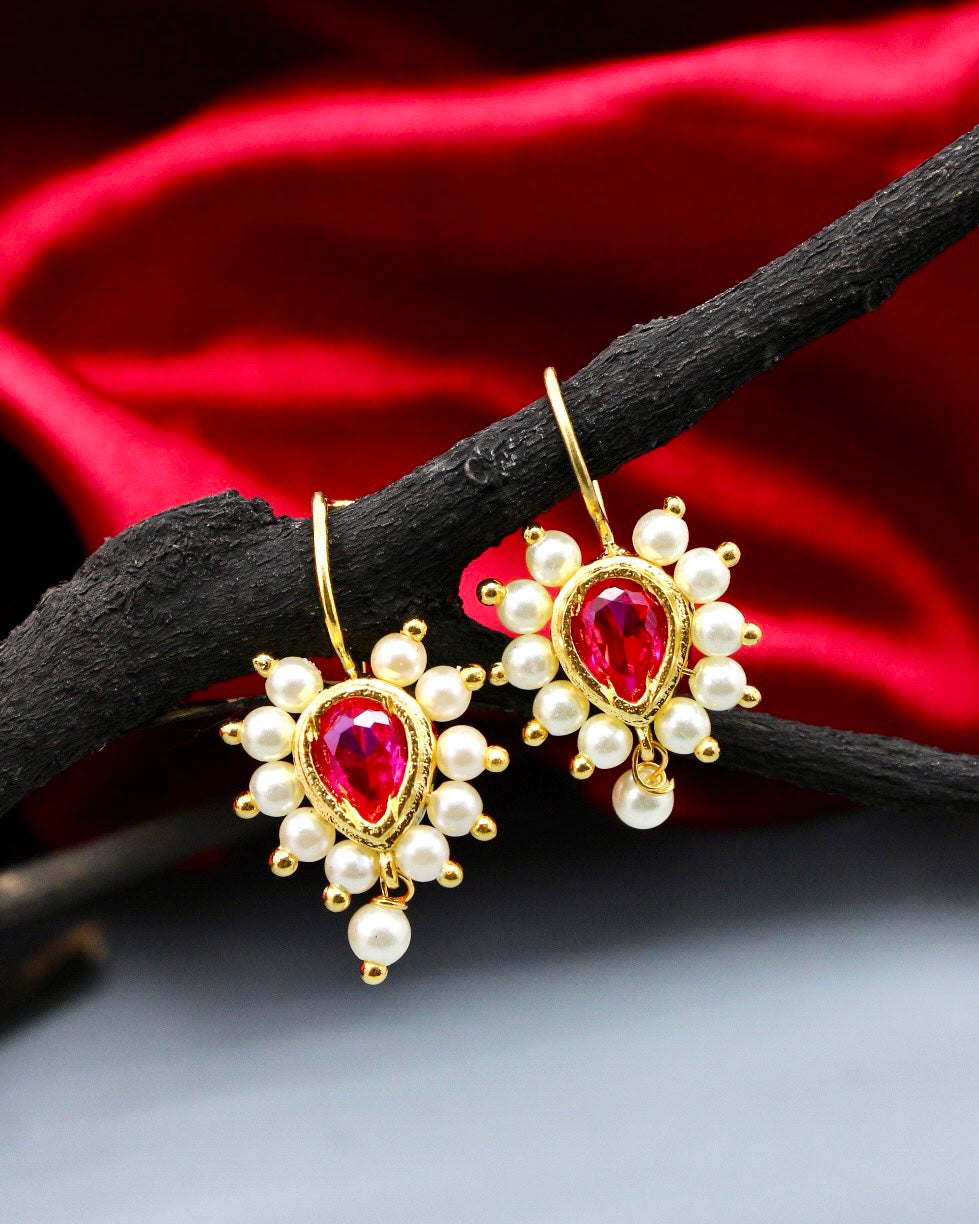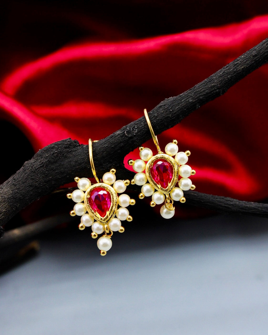 Sonchafa Jewellery offers this Dazzling pair of bugadi earrings at low price. These bugadi earrings are embedded with pink colour stones and styled with pearl beads. They are crafted from superior quality metal and ensure high durability.