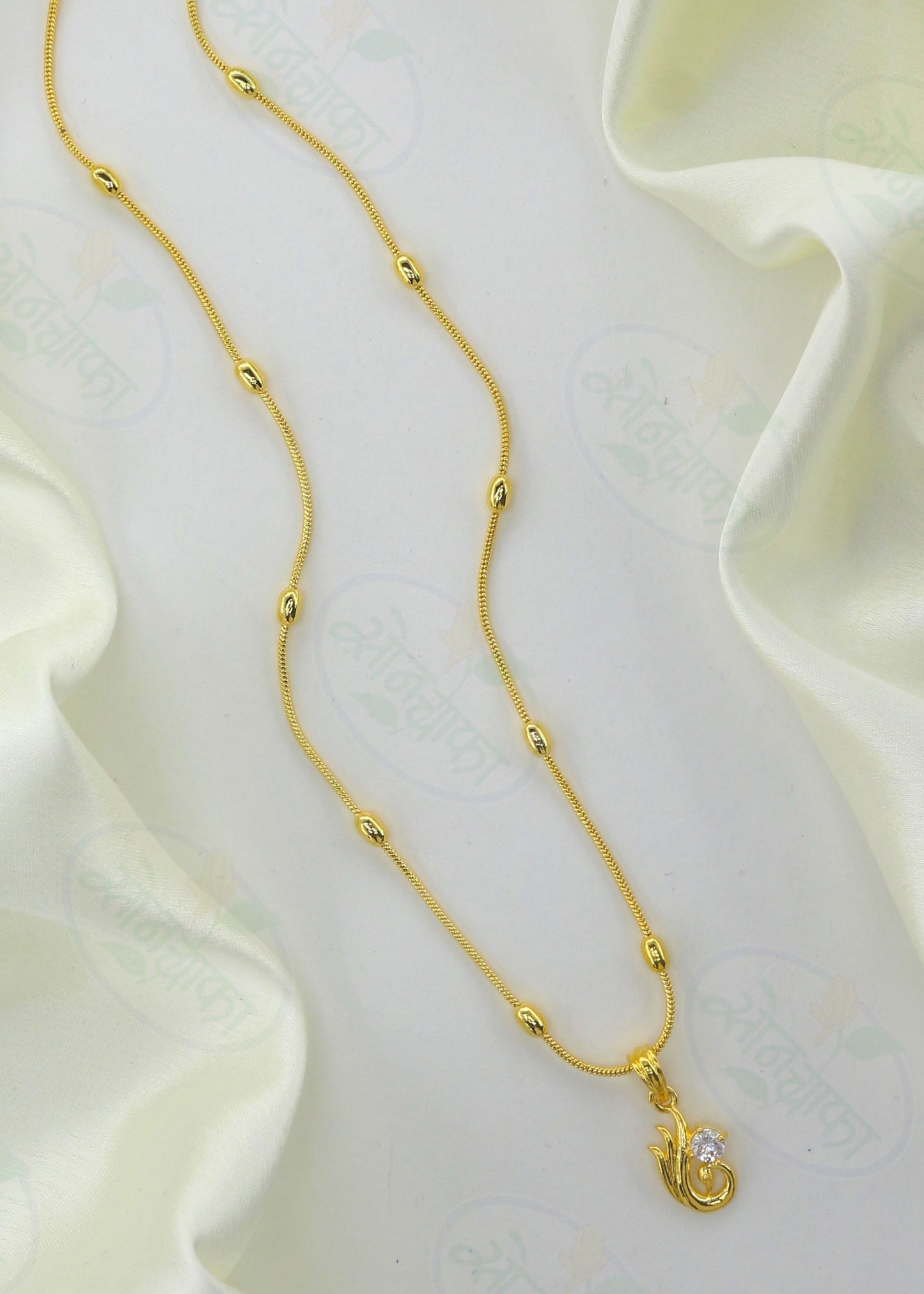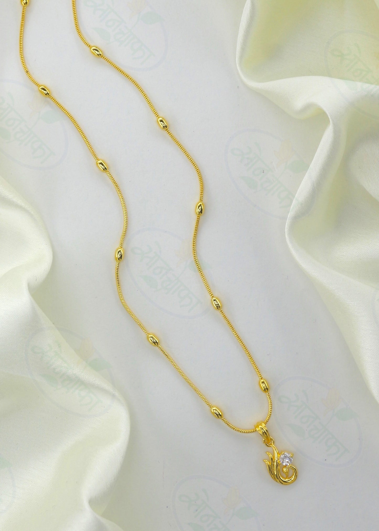 Have a look at this adorable golden chain pendant set from Sonchafa Jewellery. It is crafted from golden finish. This pendant set is encrusted with white stone. It is long lasting and highly durable.