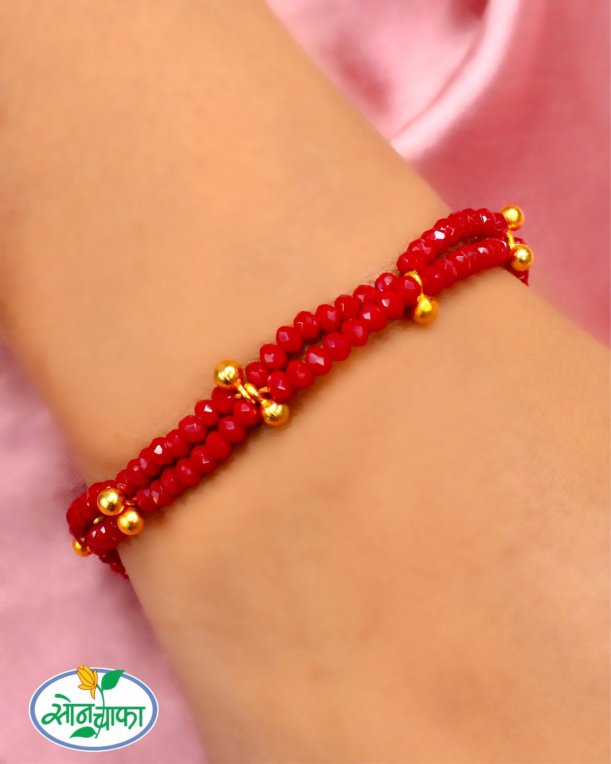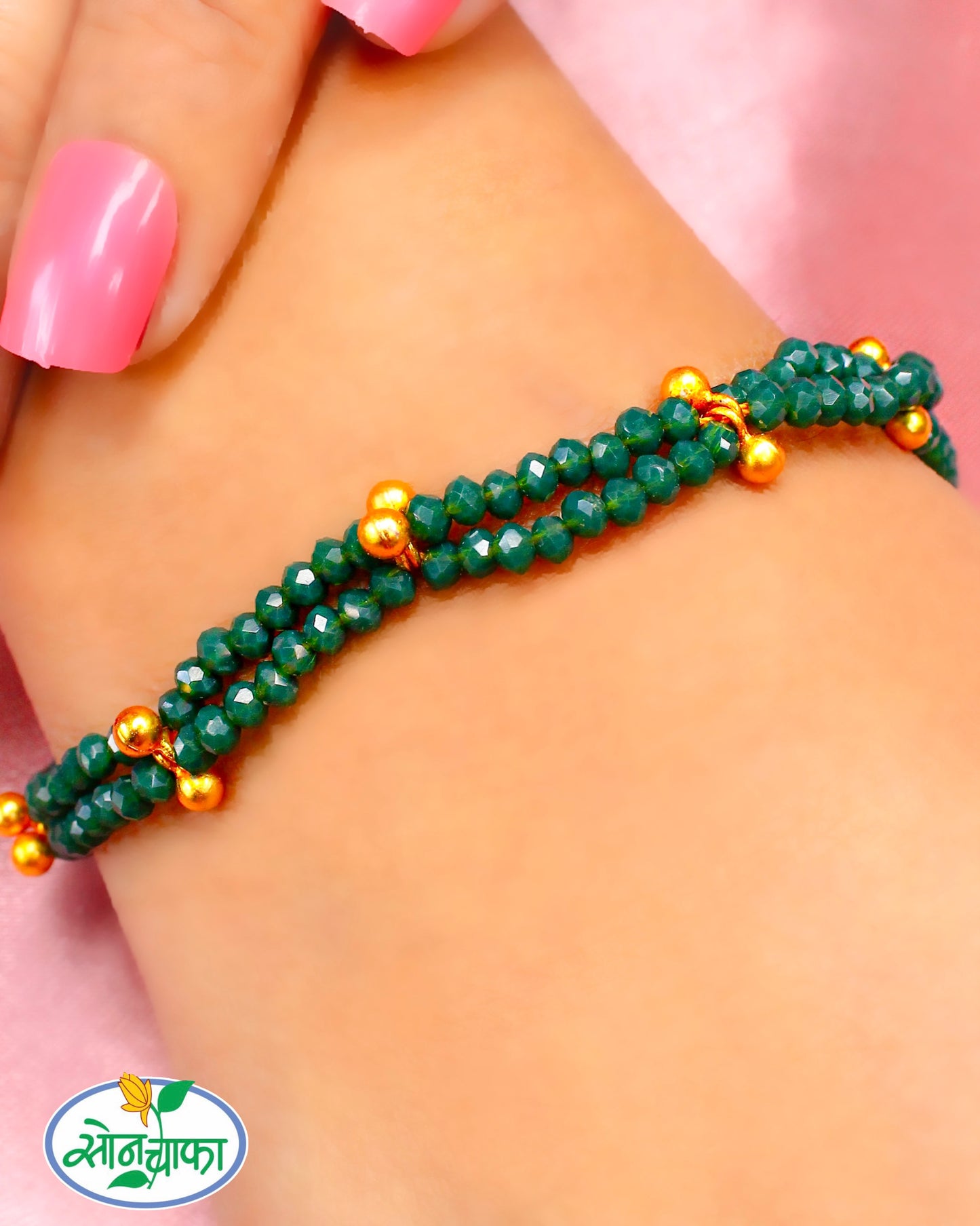 Elegant designed this adorable bracelet from Sonchafa Jewellery will catch your attention at very first look. It is embedded with white stone and made from antique golden finish metal. This bracelet is easy to wear as it is adjustable in size.