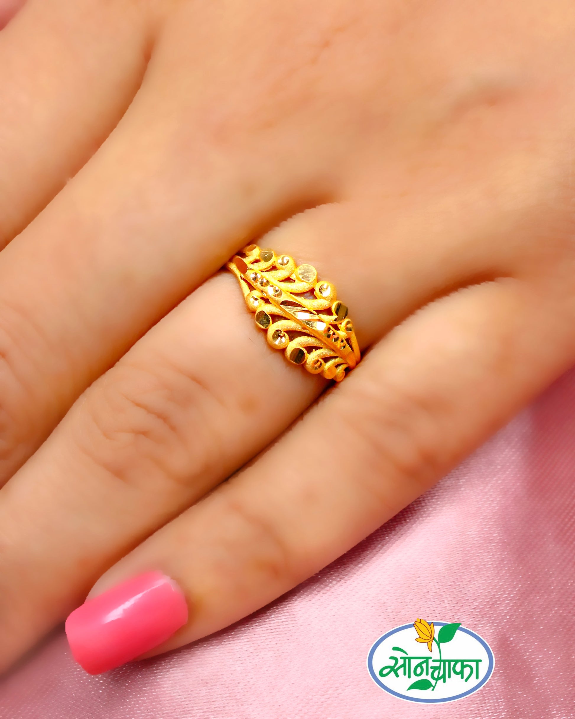 Creatively designed this golden dazzling finger ring from Sonchafa Jewellery will strike you at very first look. This finger ring is good in quality and rust-resistance as well.