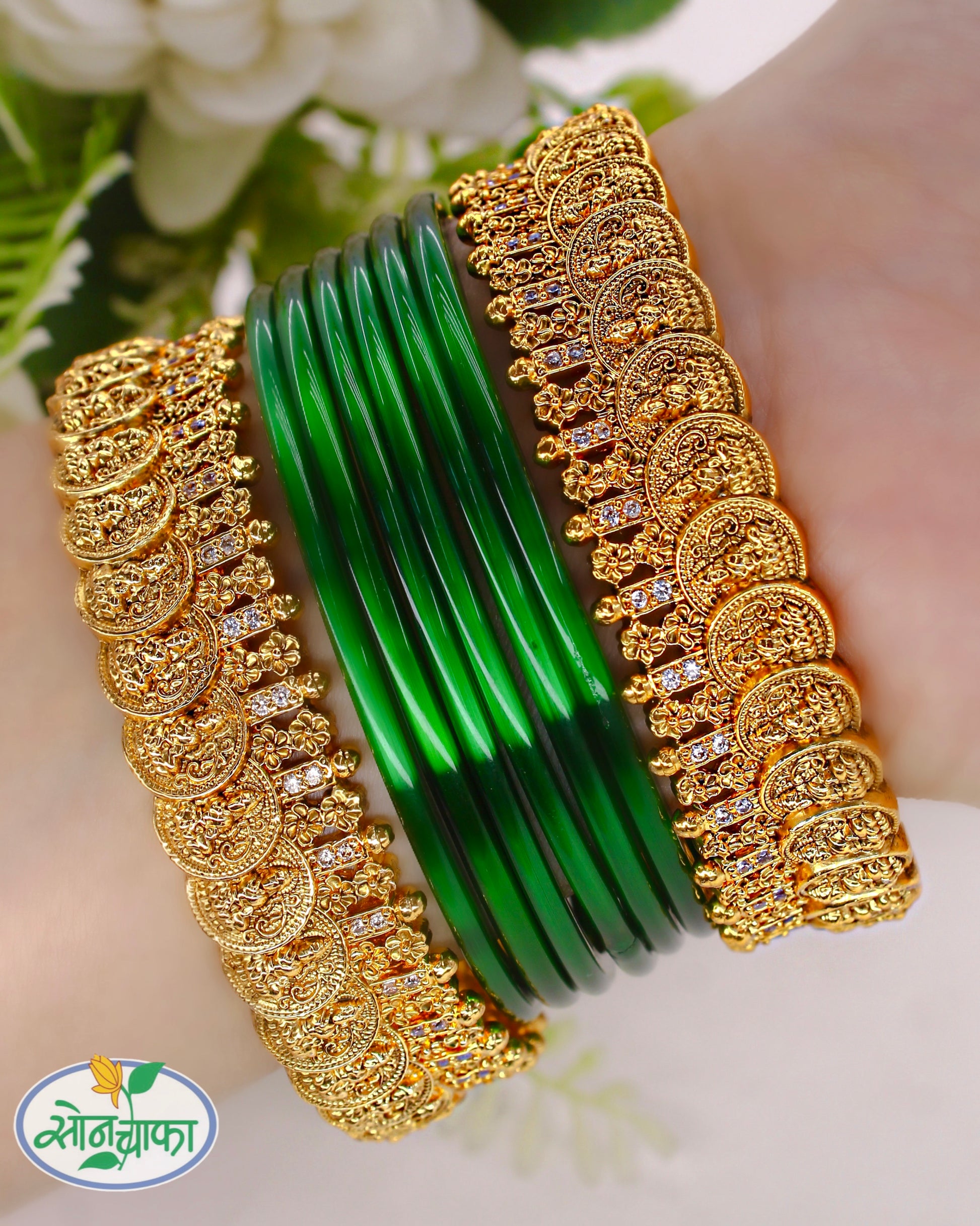 Have a look at this traditional pair of designer bangles from Sonchafa Jewellery will sure to grab your attention instantly.